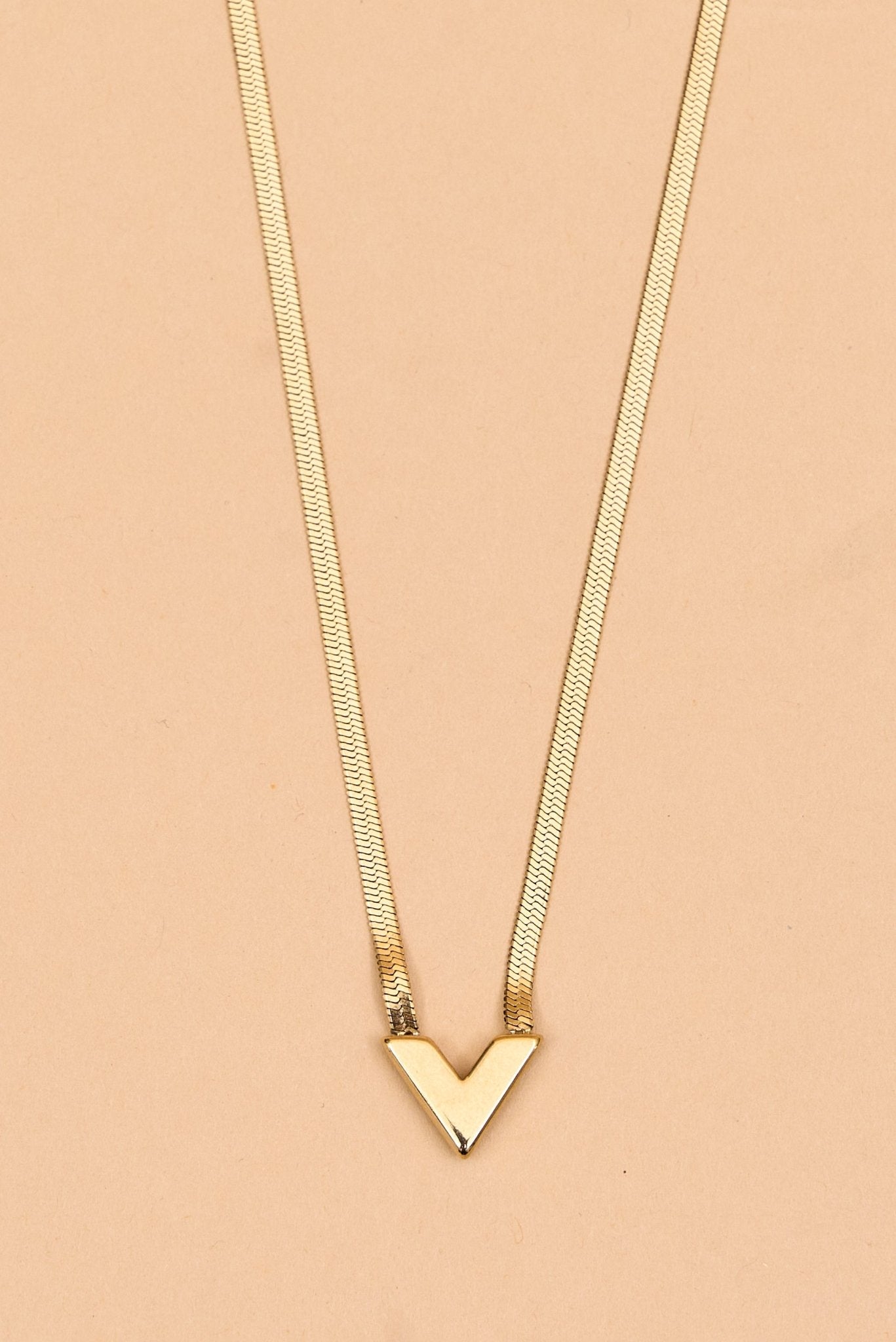 Regular price Rs. 480Modern and minimalist, this sleek gold-tone necklace showcases a bold V-shaped pendant on a delicate chain, perfect for adding a subtle edge to any outfit