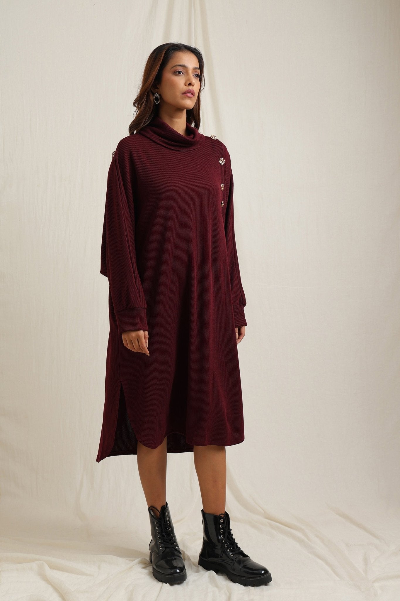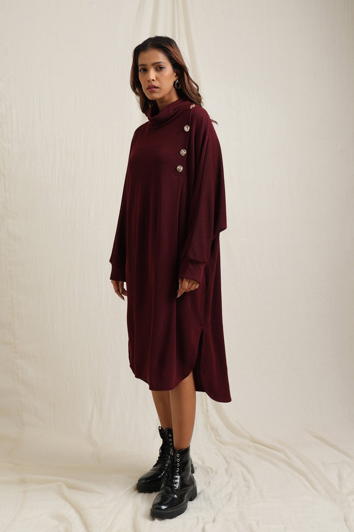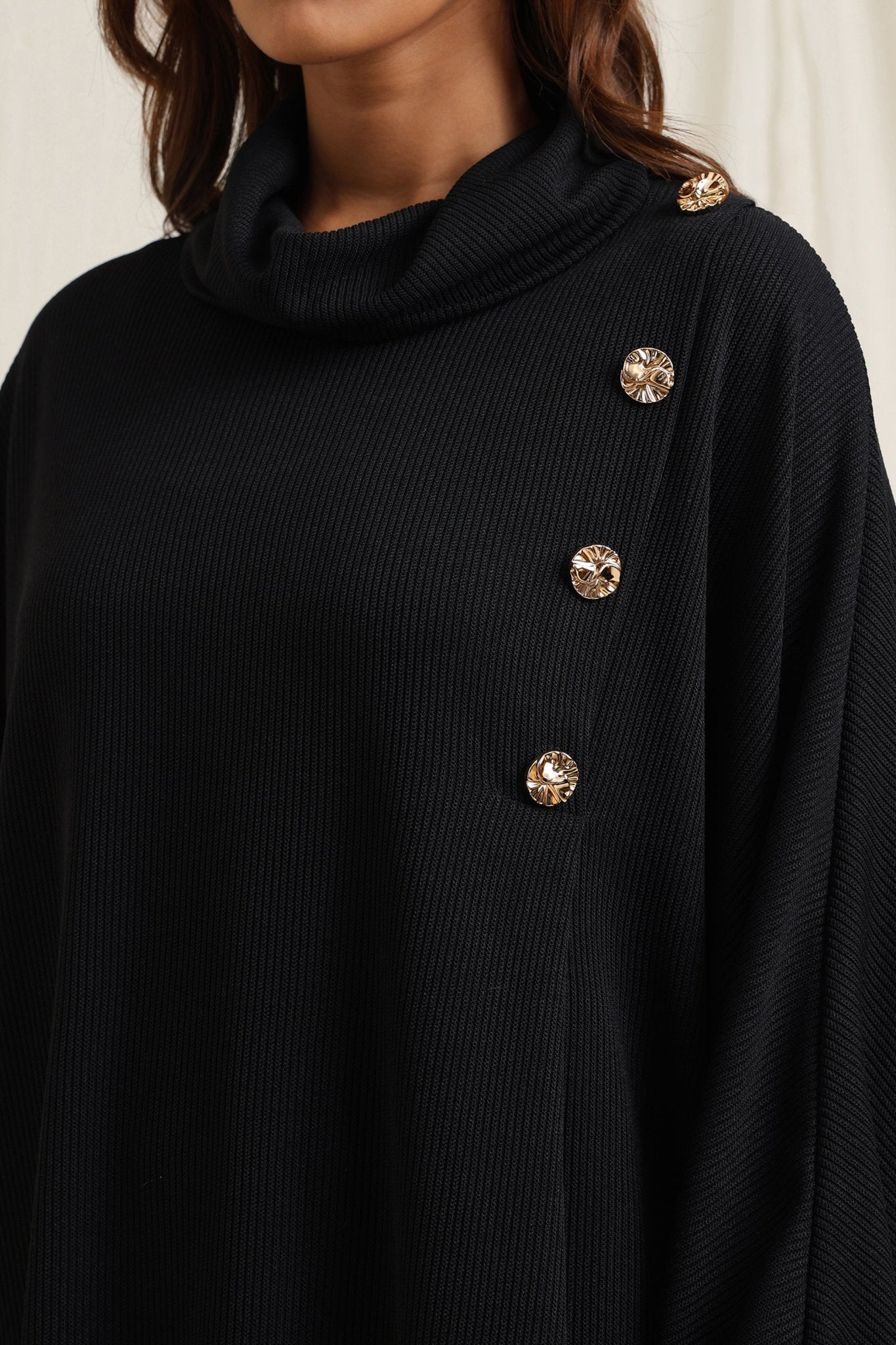 High-collar tunic with refined pleat detailing for an elevated silhouette.
