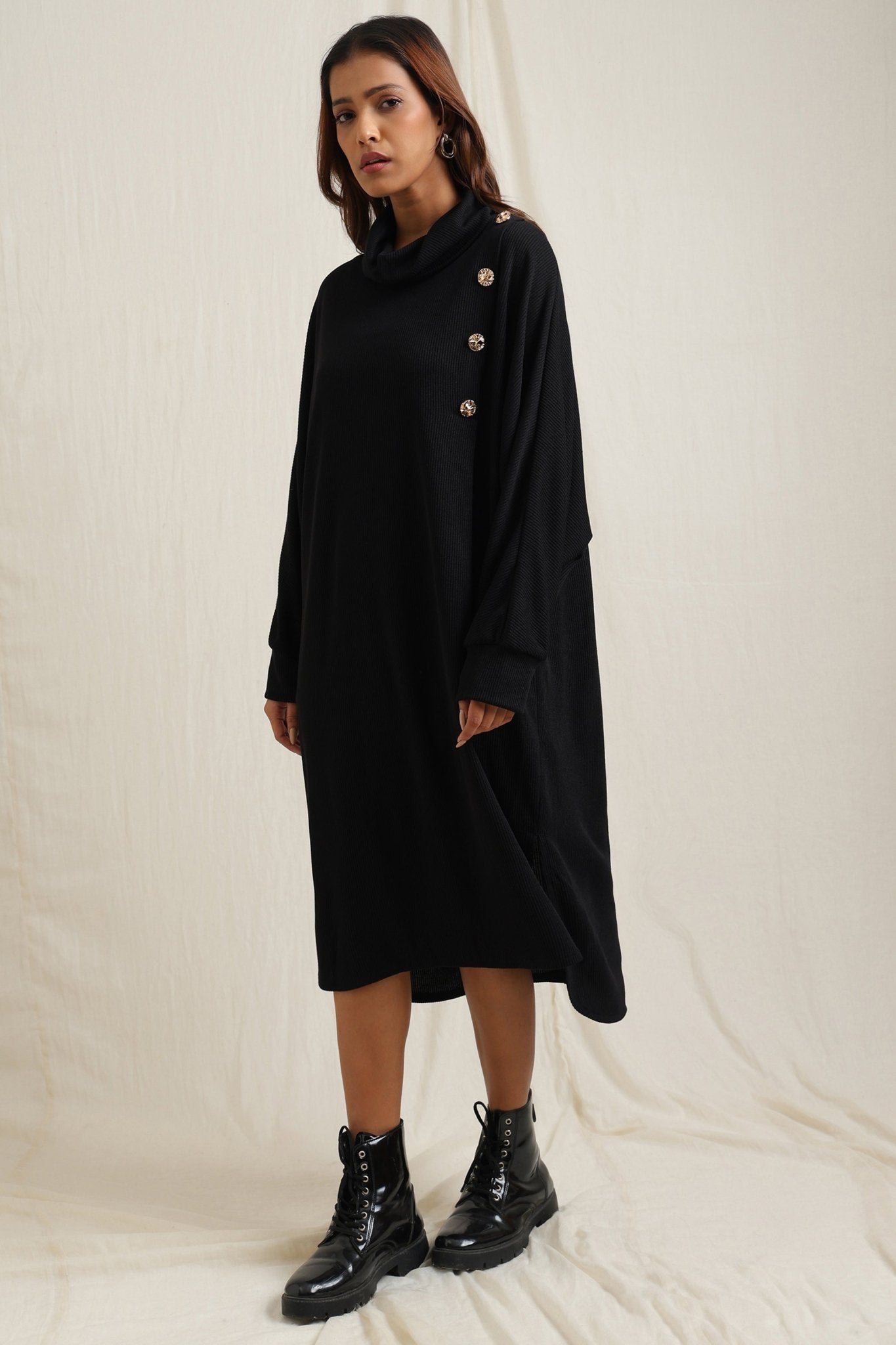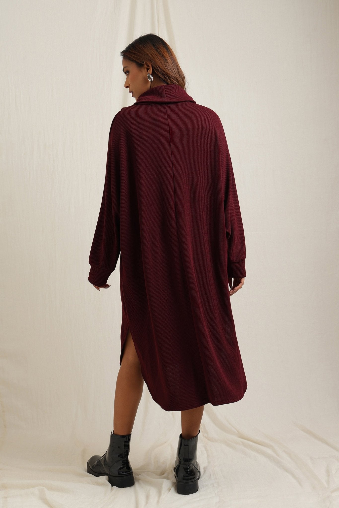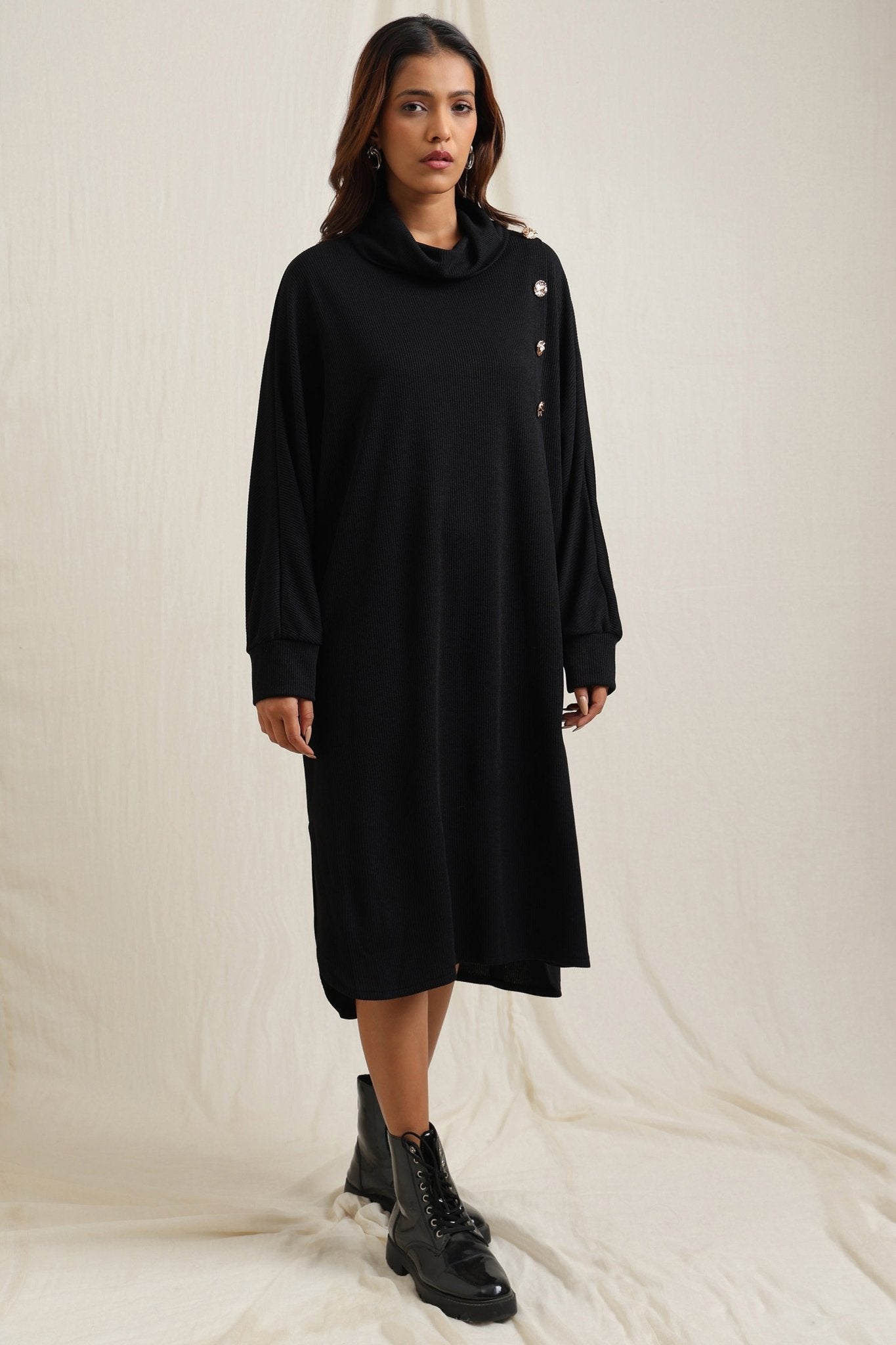 High-collar tunic with refined pleat detailing for an elevated silhouette.