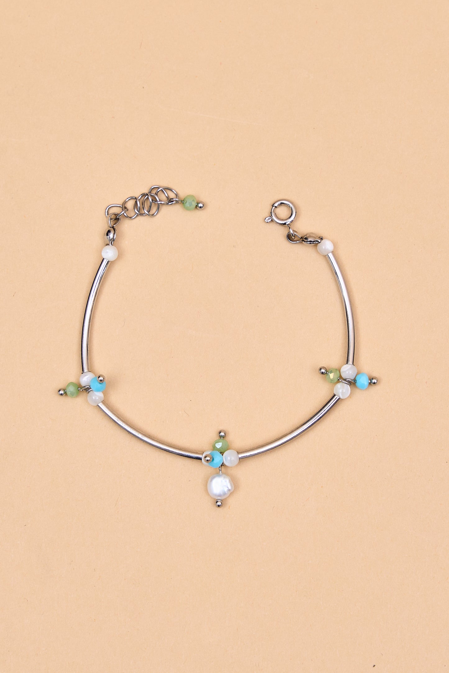 Silver tube bracelet with pastel beads