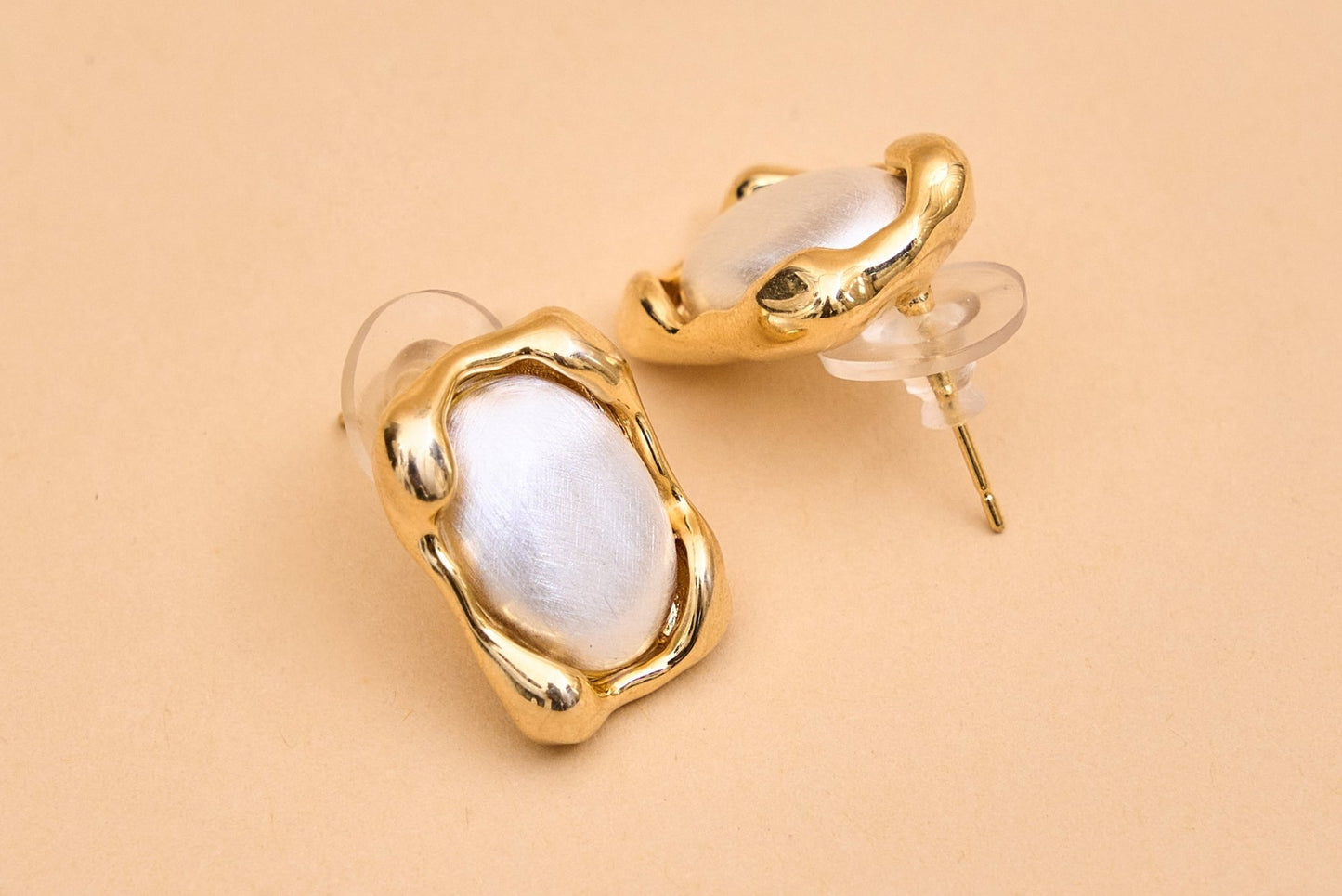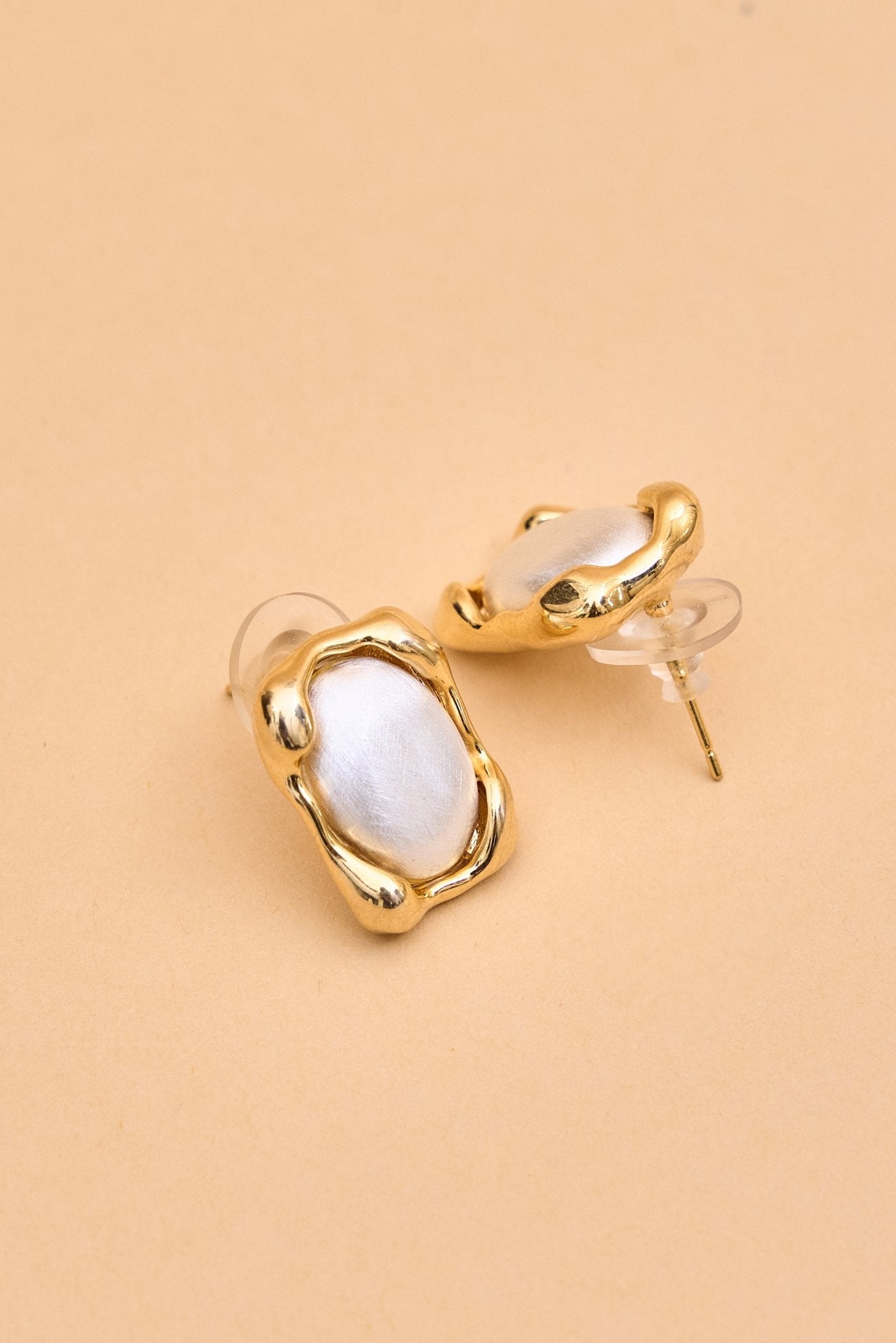 Regular price Rs. 480Elegant rectangular stud earrings featuring a smooth, pearly white center framed by a wavy, gold-toned border. Sophisticated and timeless, perfect for adding a refined touch to any outfit