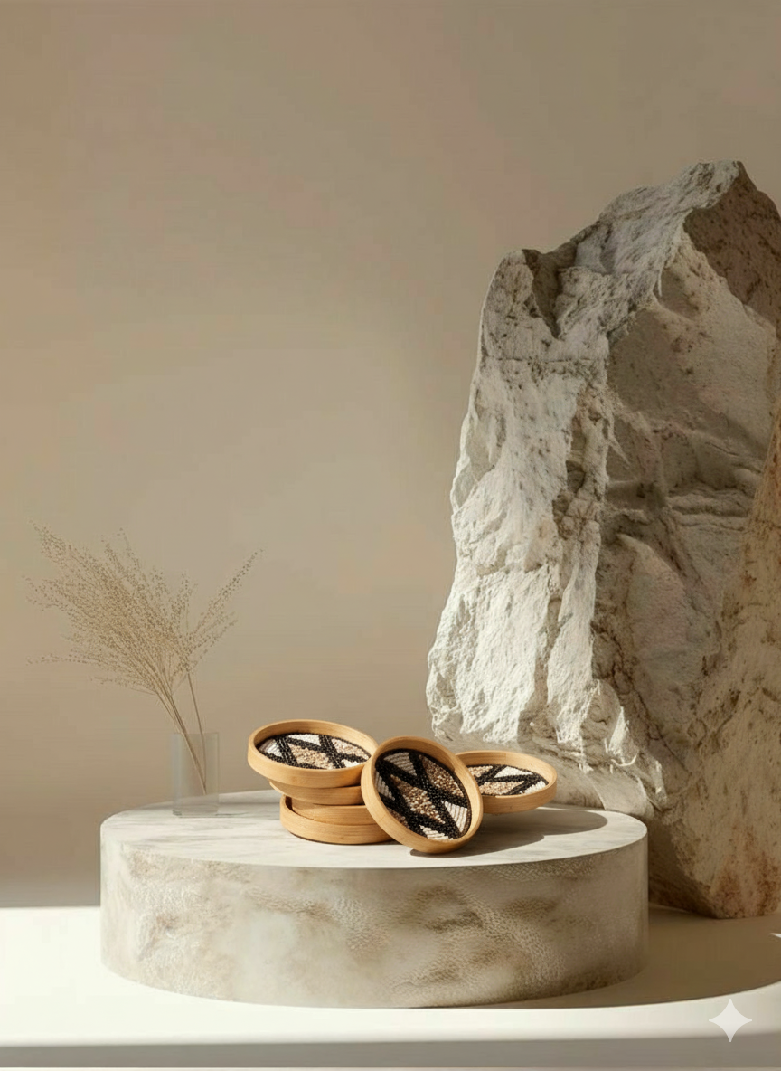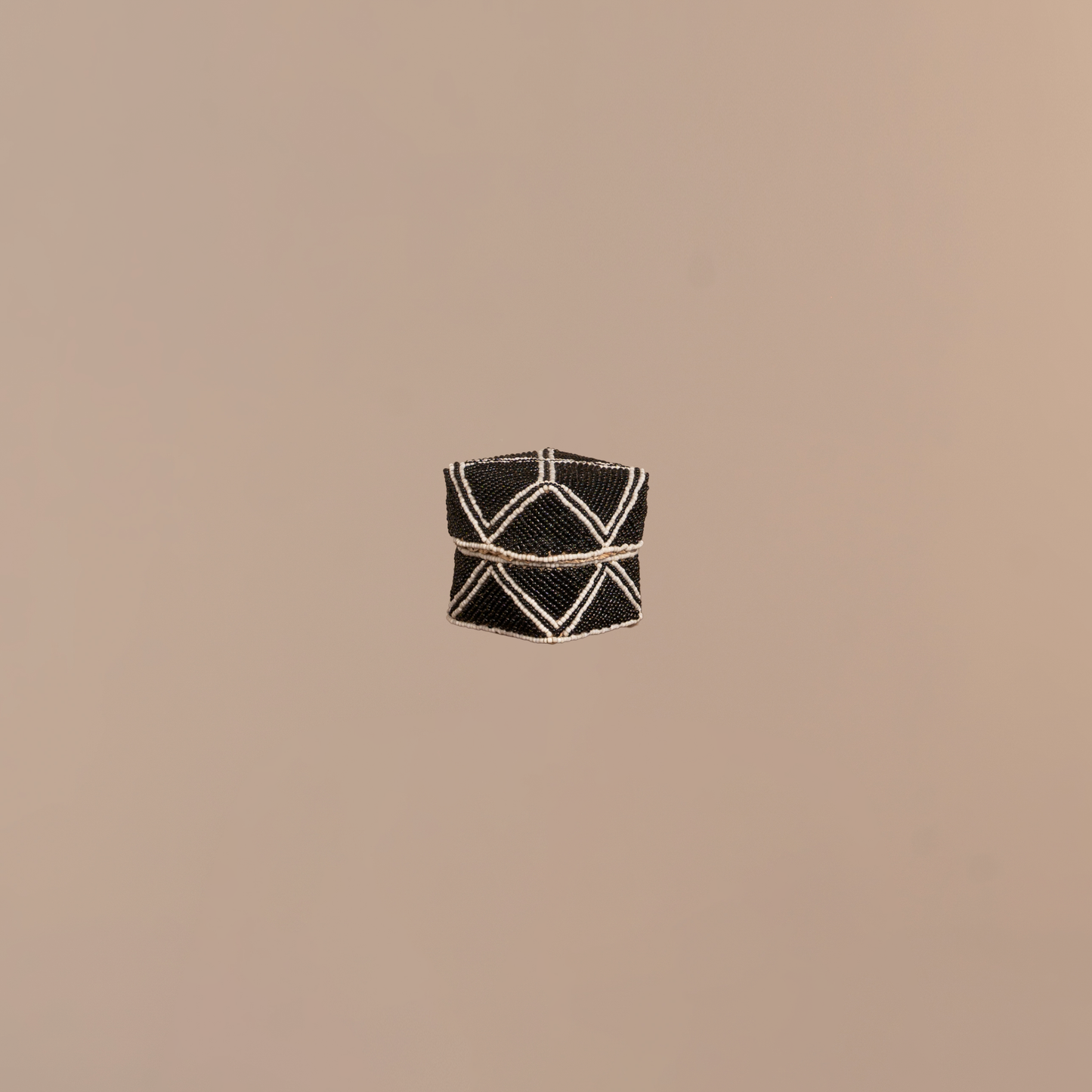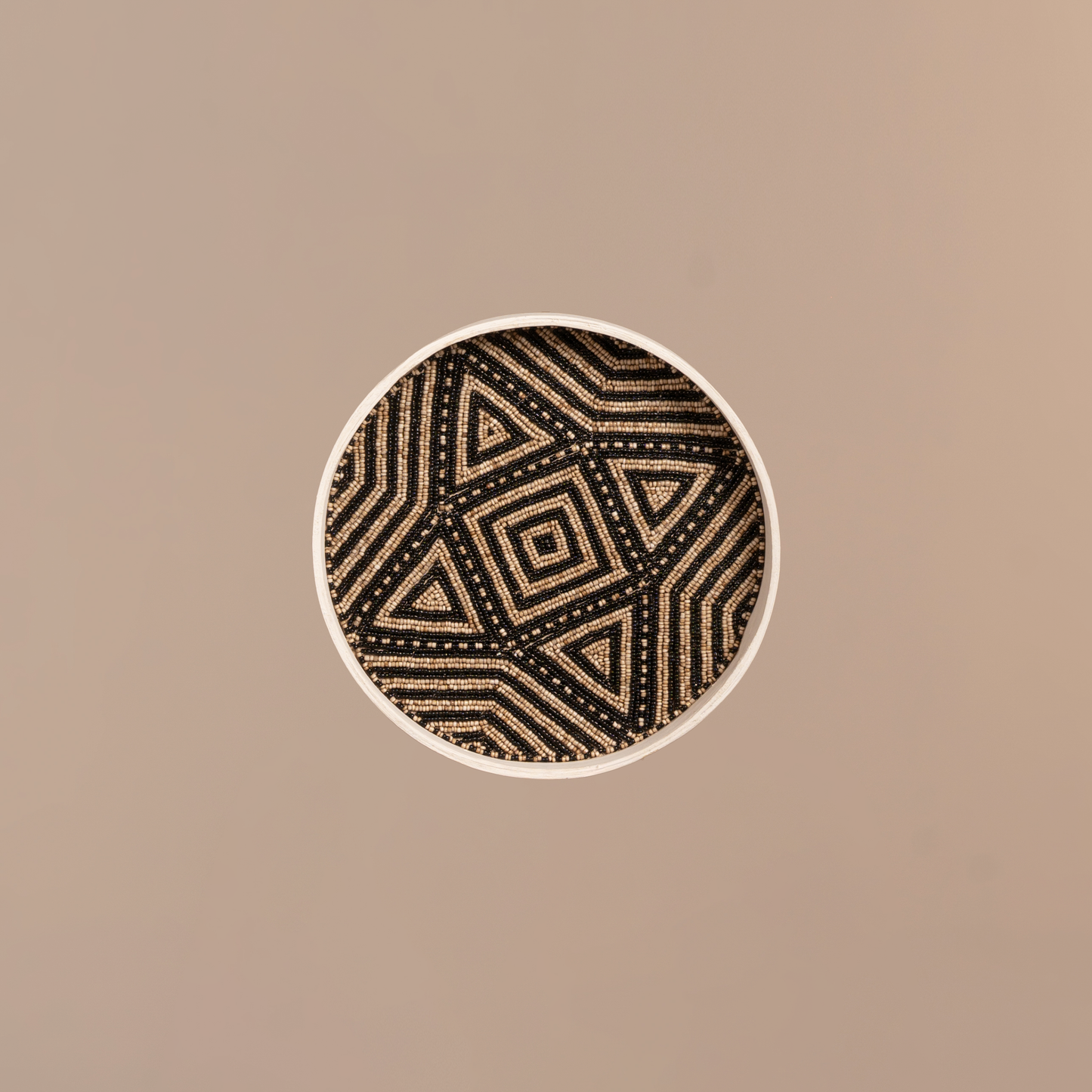 Bold black and beige tie-dye kaftan with striking abstract patterns