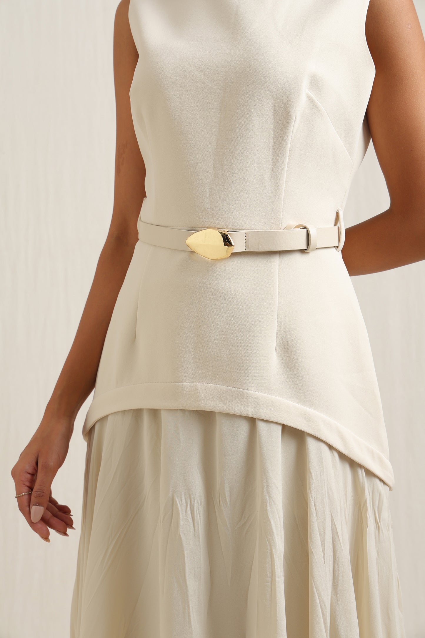 Dress with crinkle texture and a belt for a stylish, defined shape.