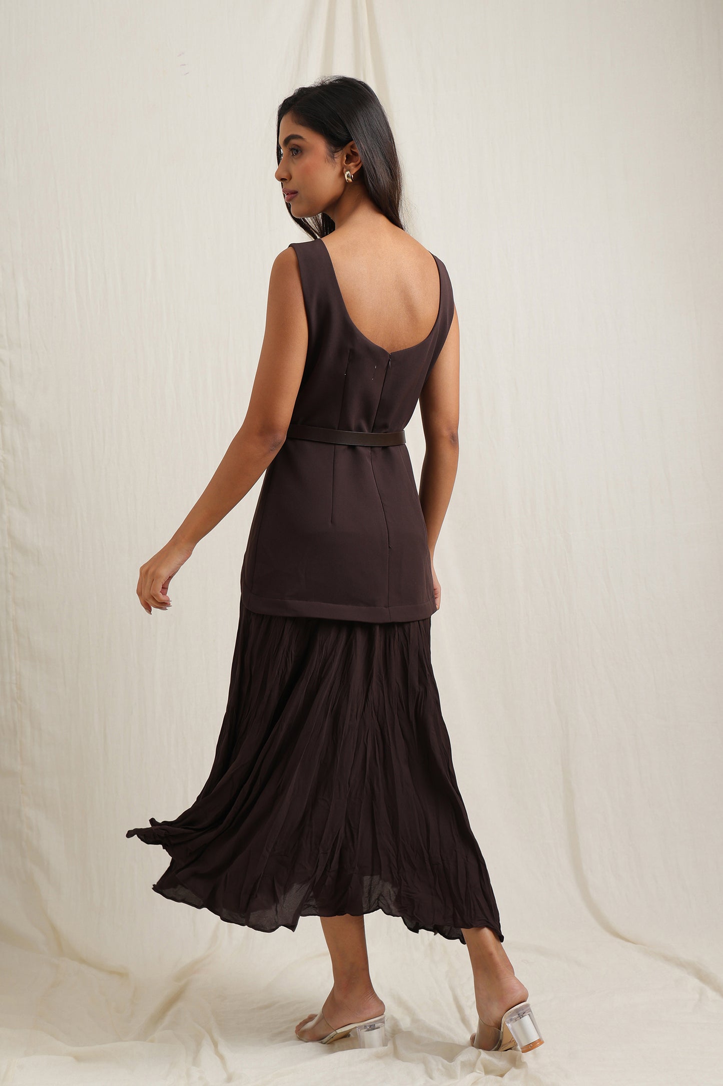 Belted Crinkle Effect Dress
