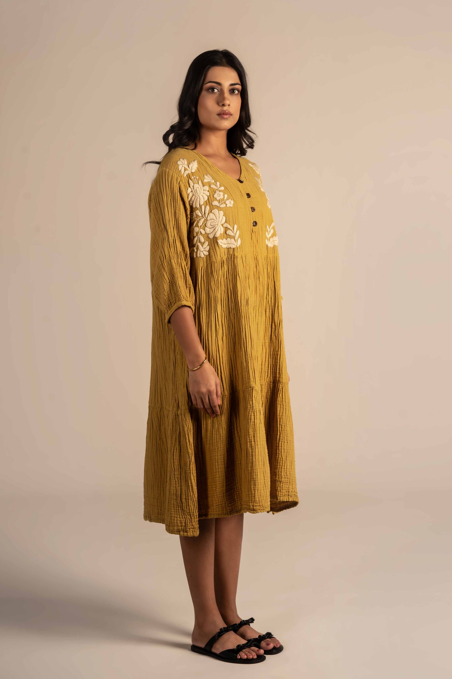 Half sleeves dress with floral embroidery