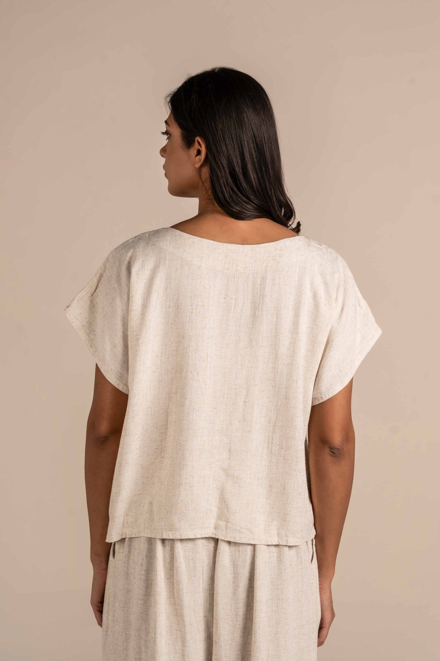Half sleeves top with floral embroidery