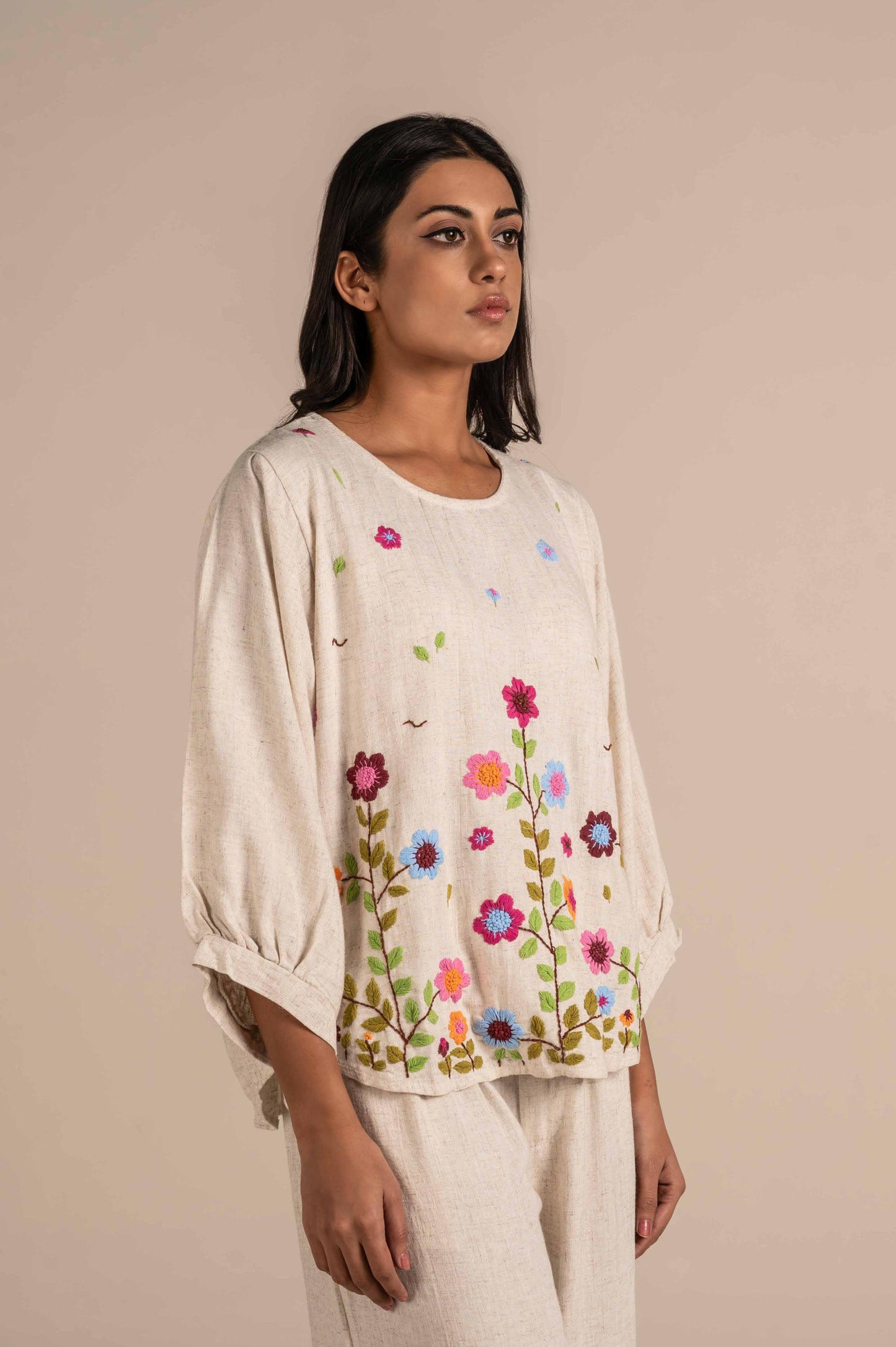 Top with floral hand embroidery