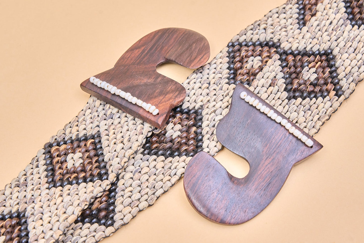 Woven belt with wooden buckle
