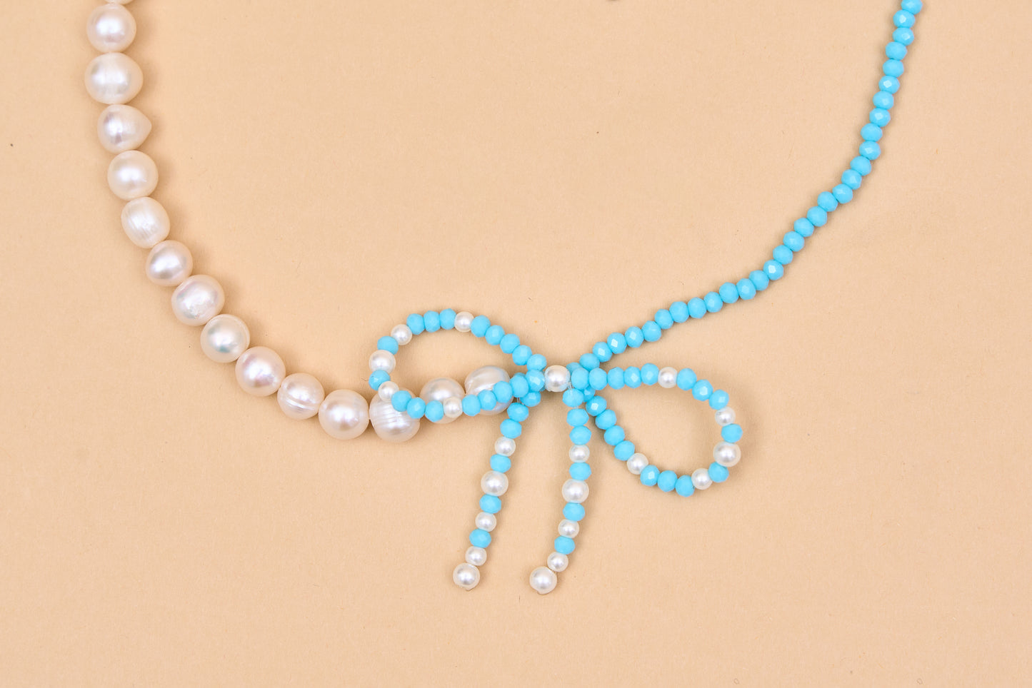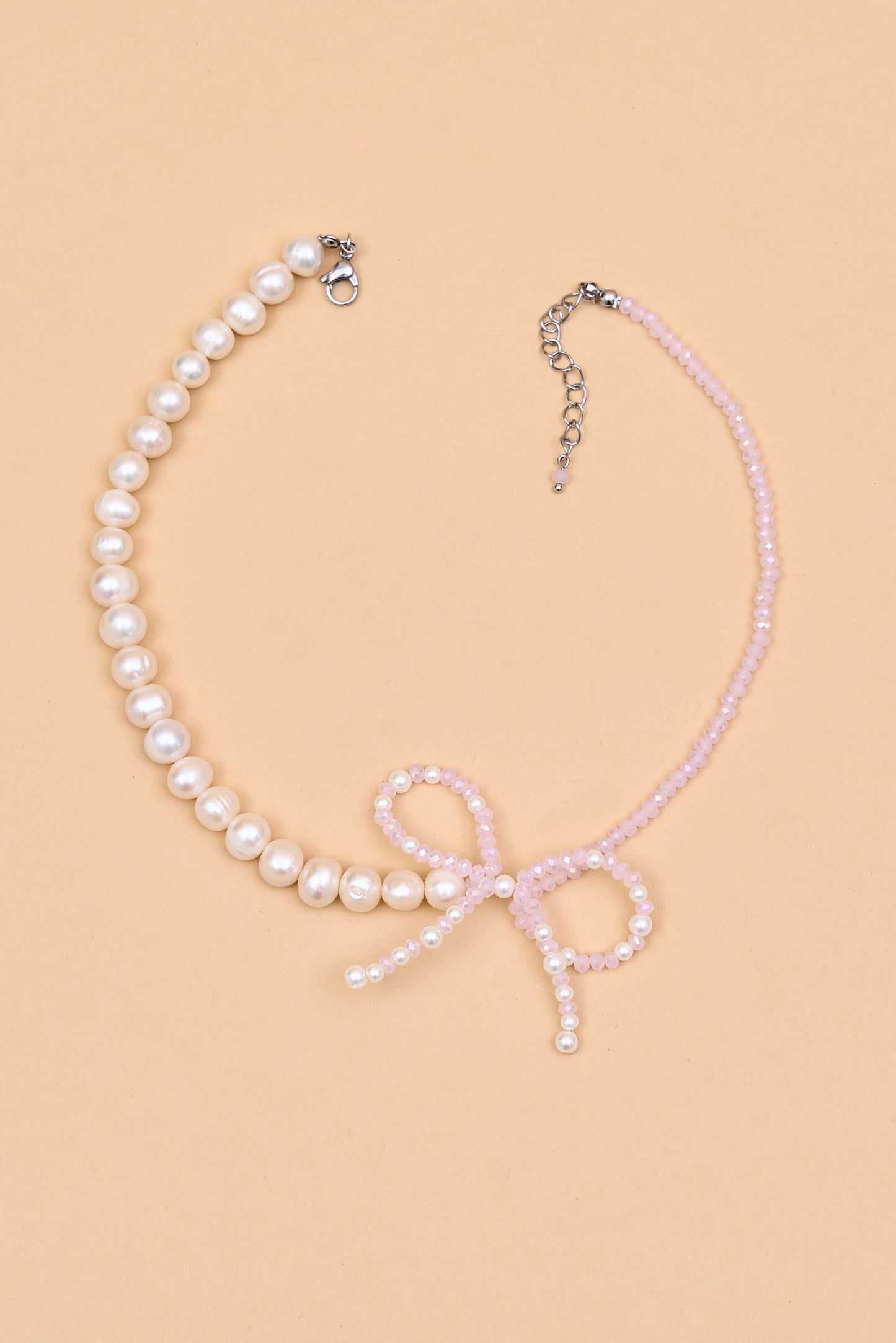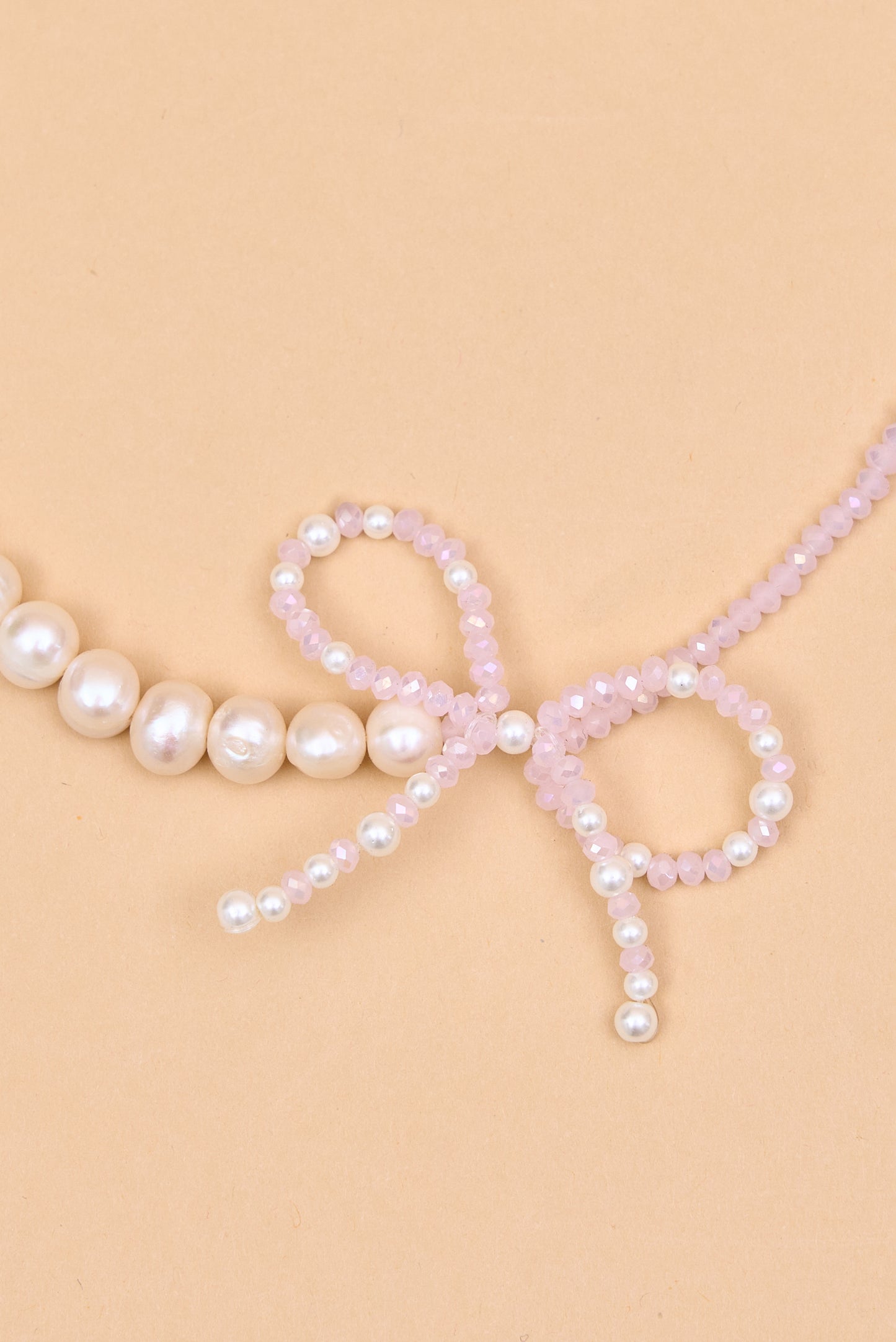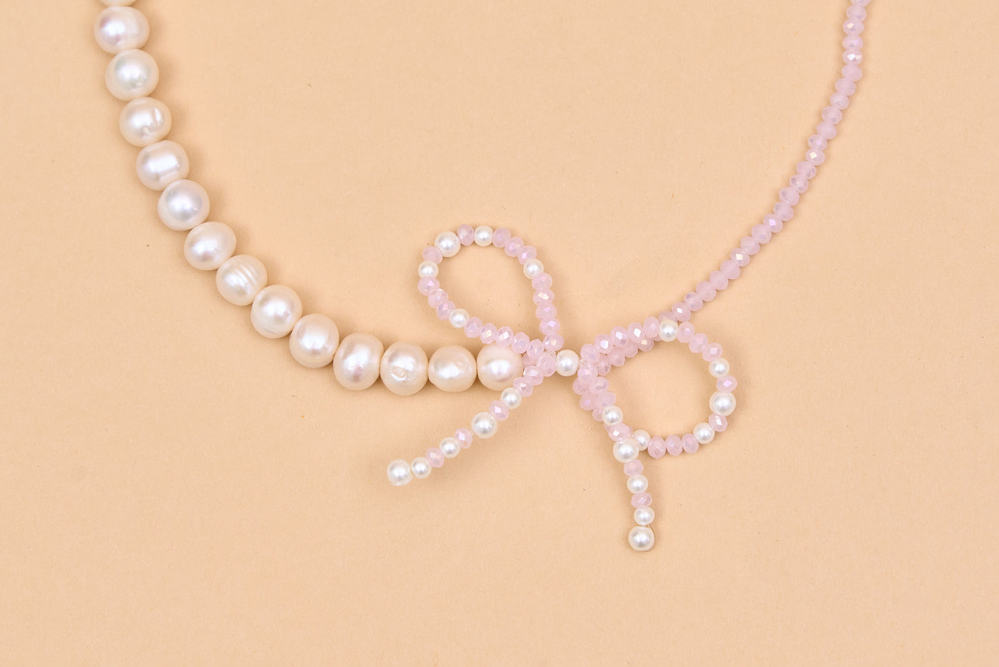Elegant pearl beaded necklace with bow