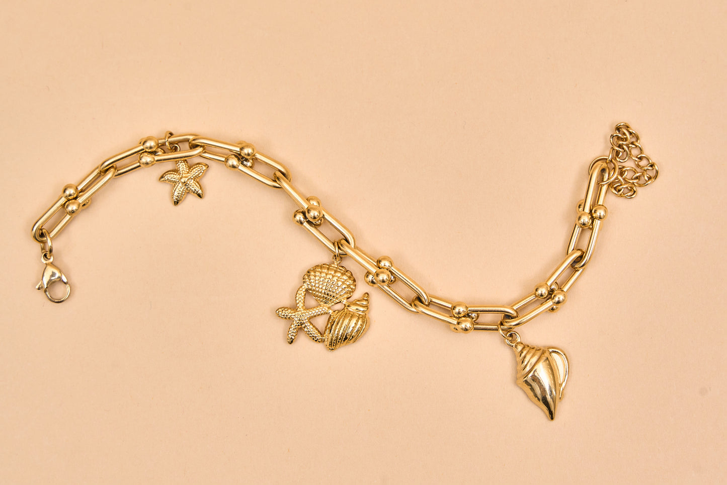 Nautical-style bracelet with shell and sea-inspired charms. Stylish for beach lovers and wanderers.