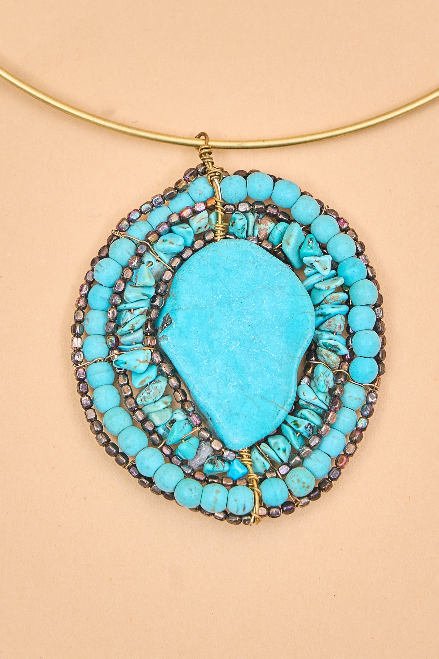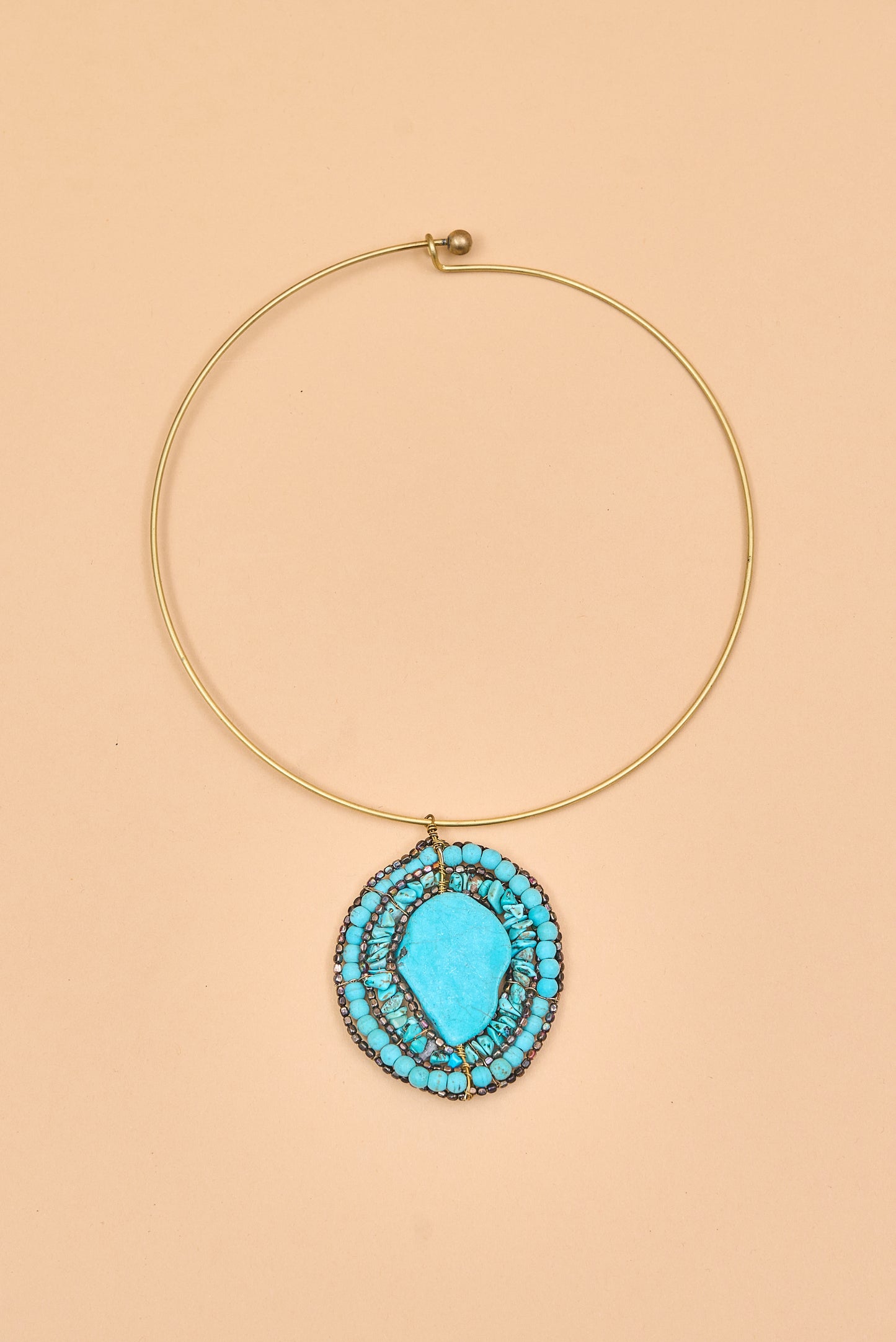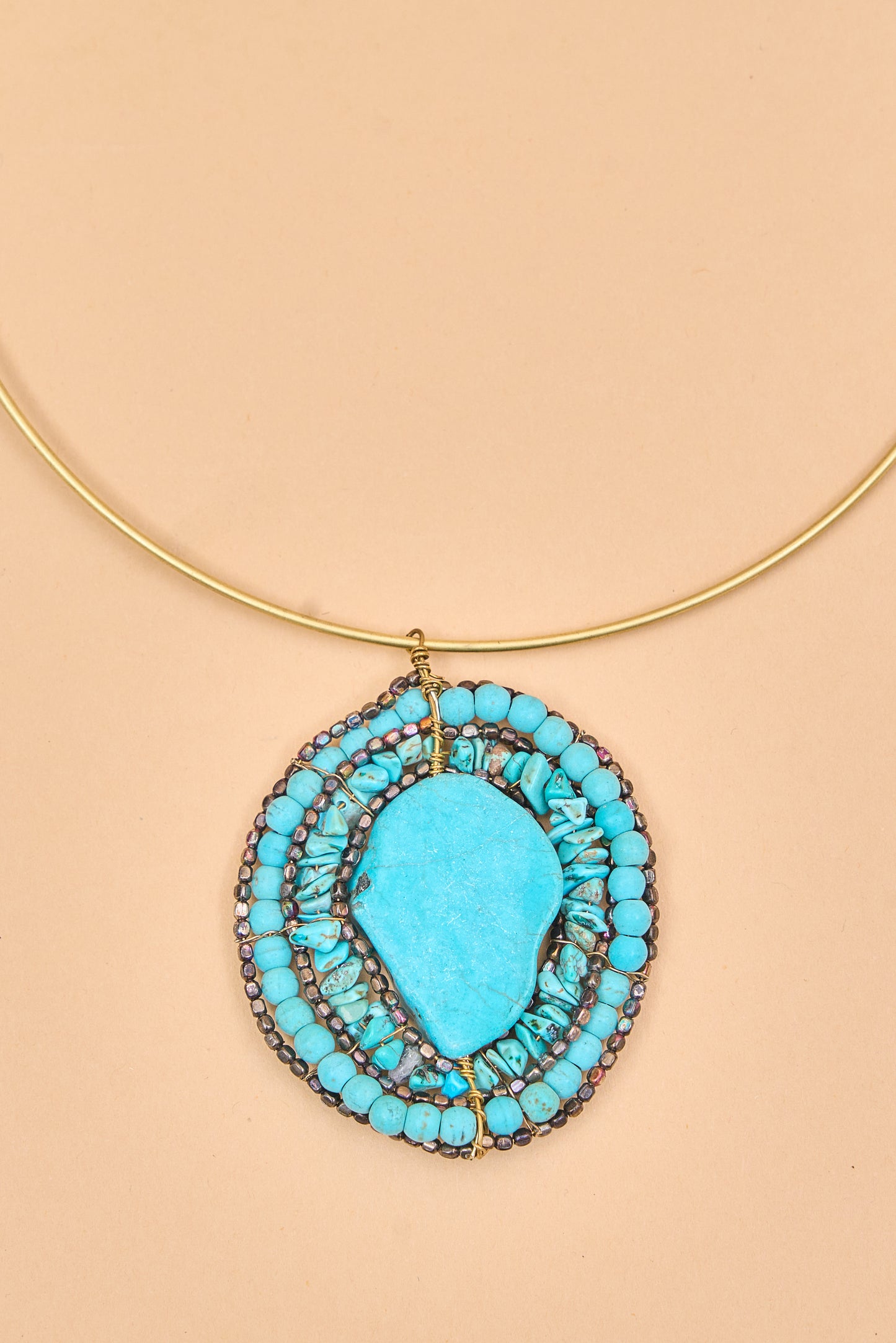 Gold choker with layered blue stone design