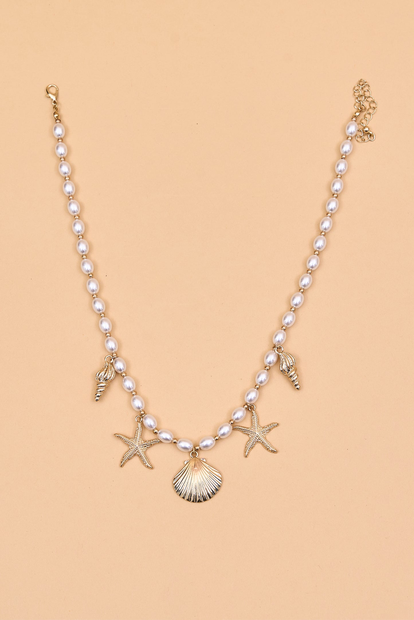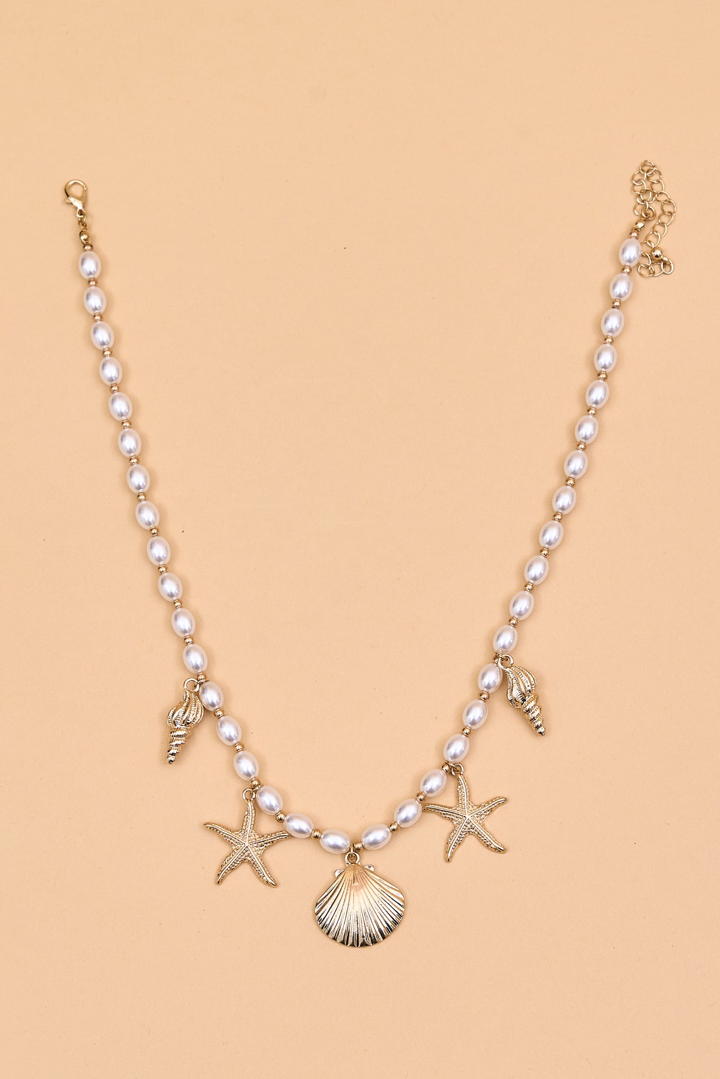 Regular price Rs. 1,050Charming pearl-beaded necklace, featuring gold-tone shell and starfish charms that bring a playful, beachy vibe to your summer look