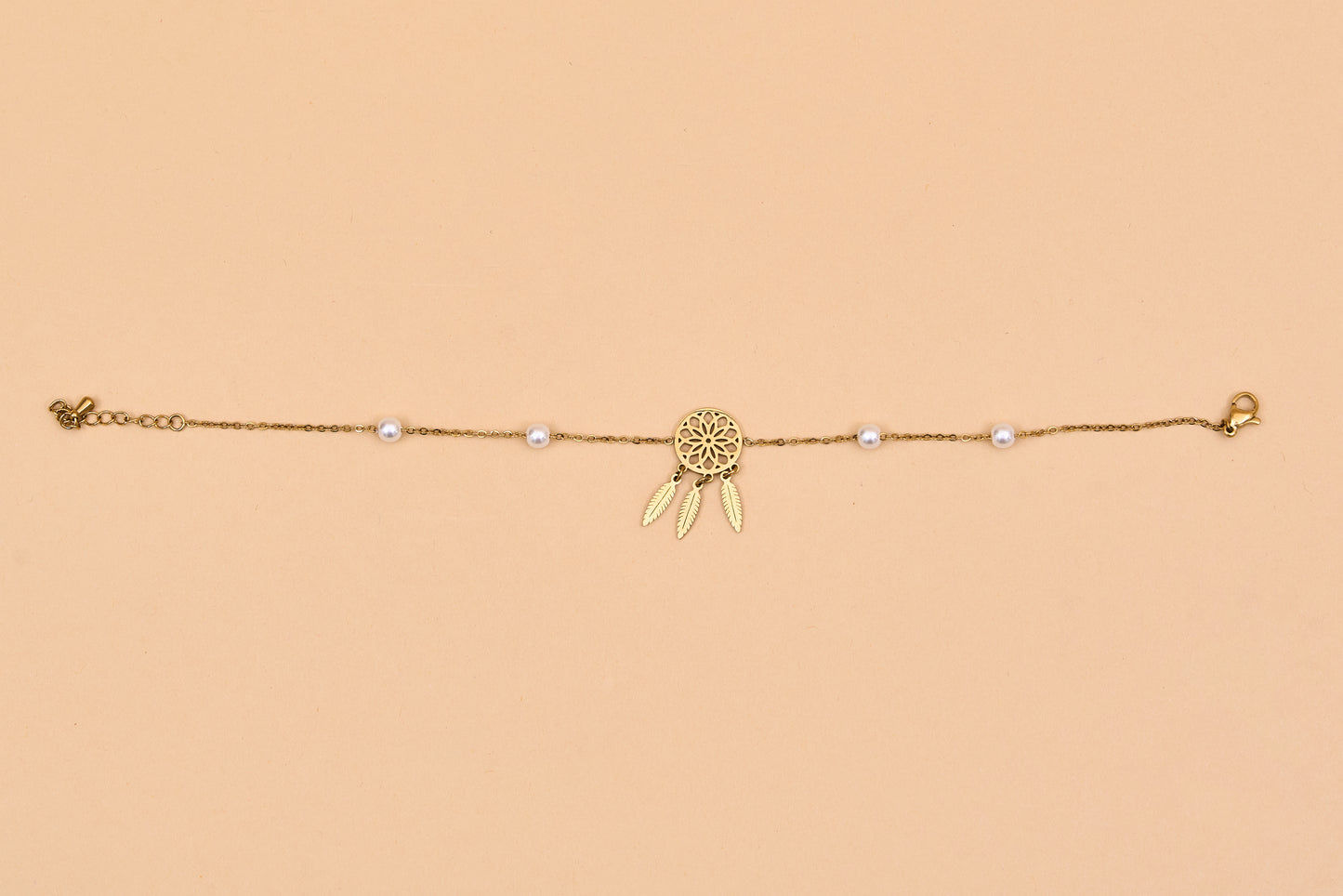 Gold bracelet with pearls and crown charm