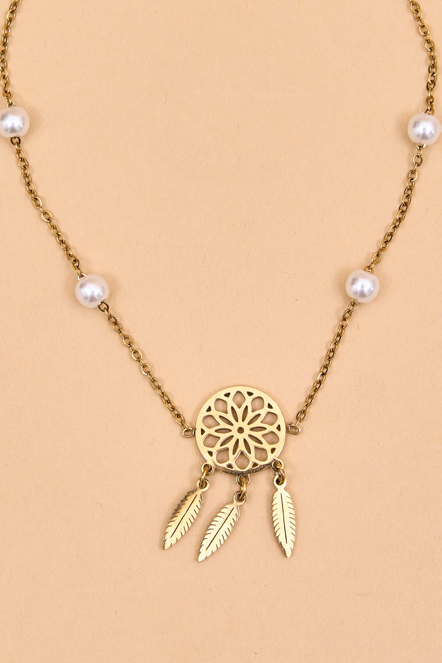 Add Gold bracelet with pearls and leaf clover charm. to the cart