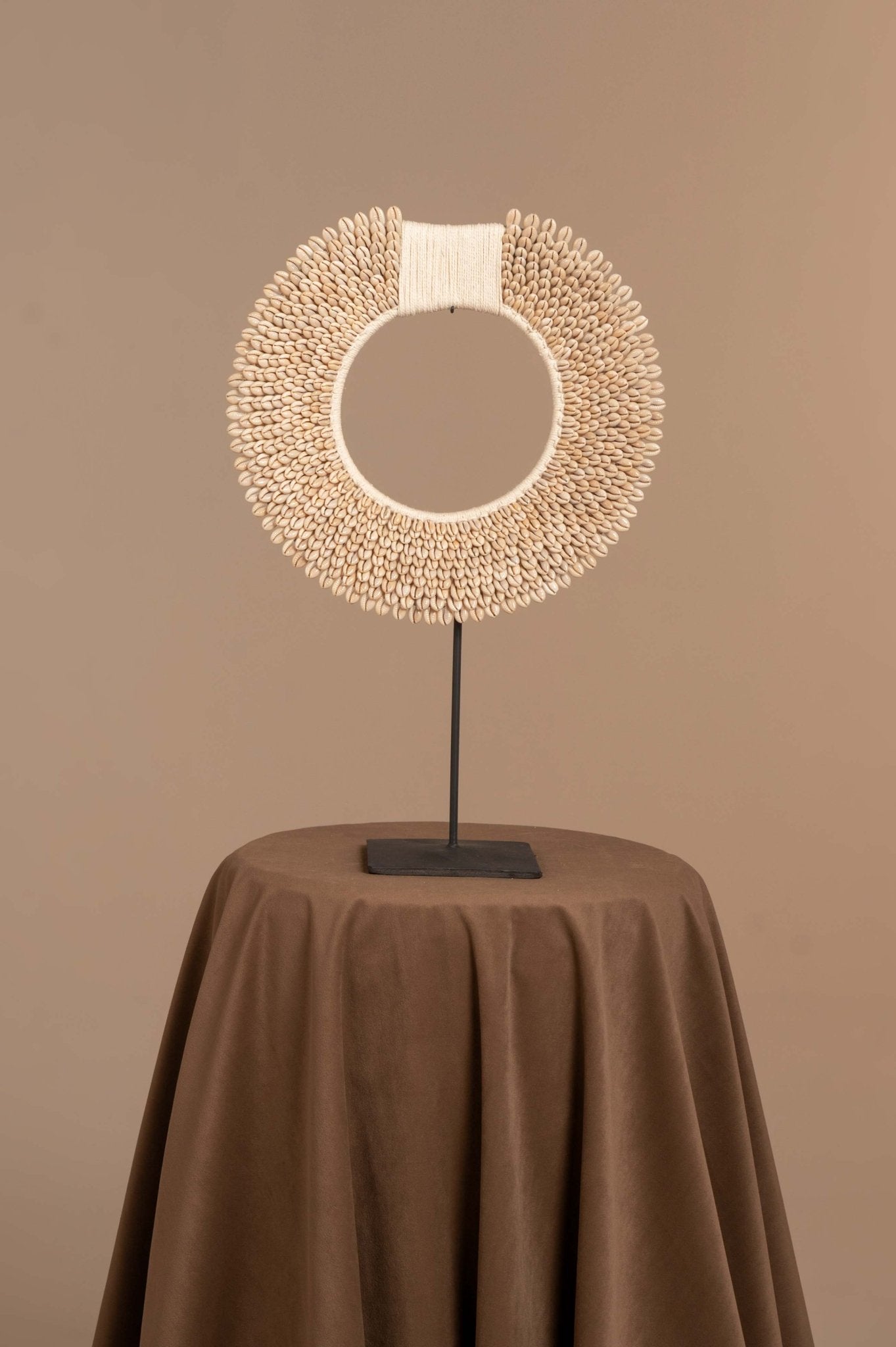 Regular price Rs. 2,700A round tabletop ringed with small cowrie shells and macrame details. A standout boho accent for any flat surface