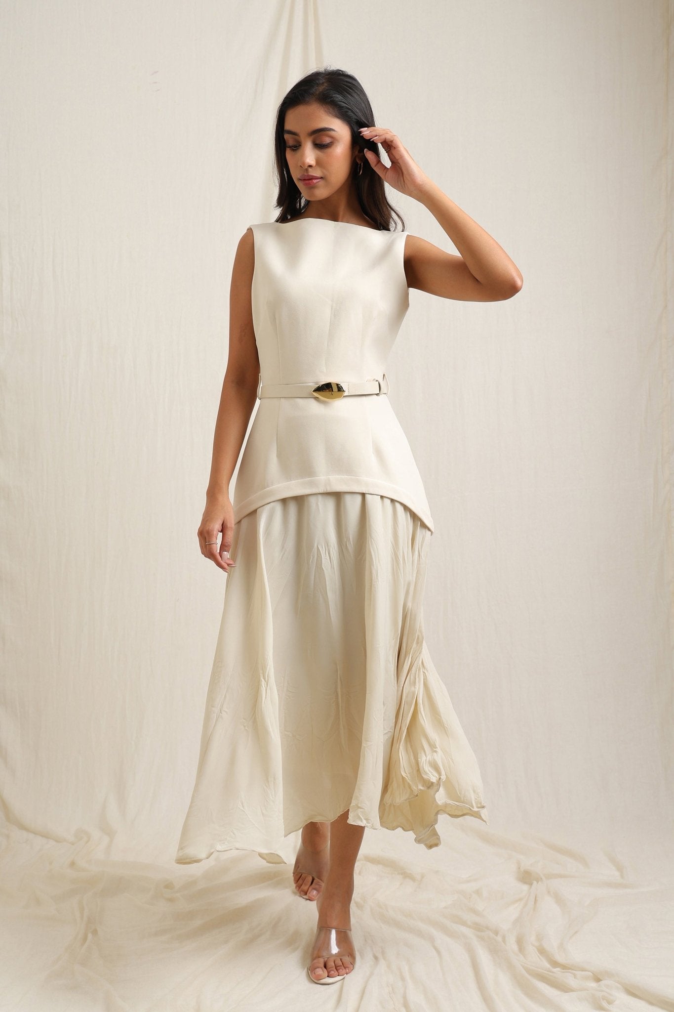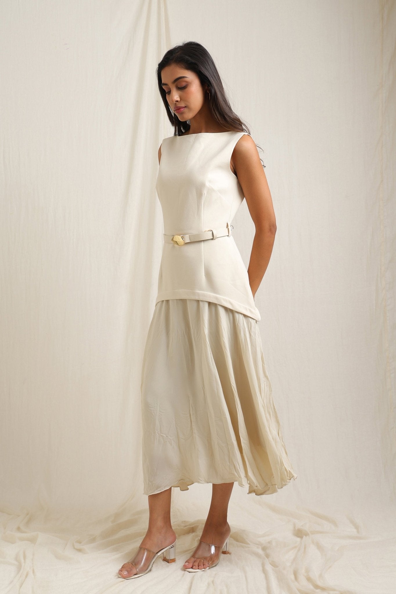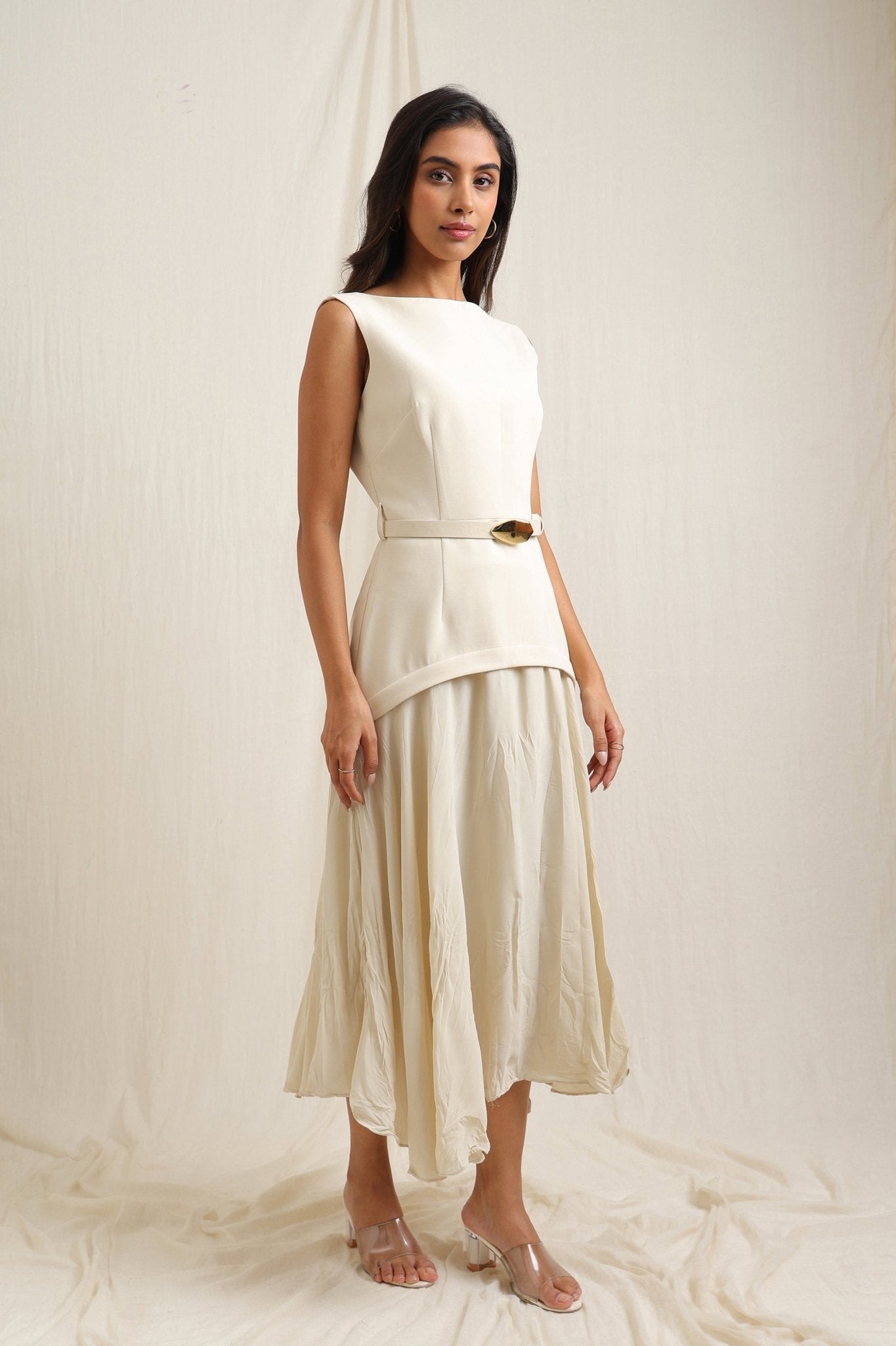 Dress with crinkle texture and a belt for a stylish, defined shape.
