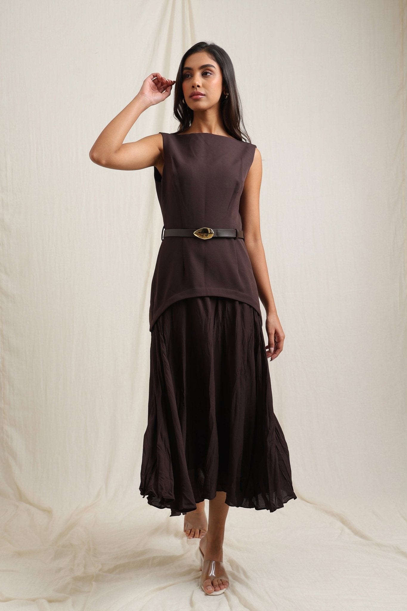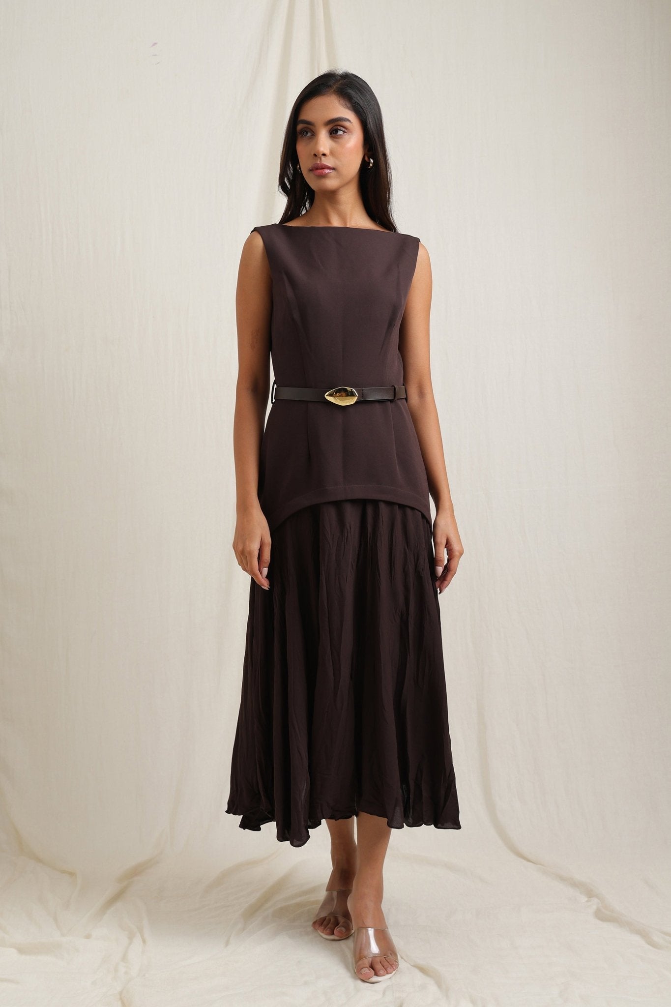 Belted Crinkle Effect Dress