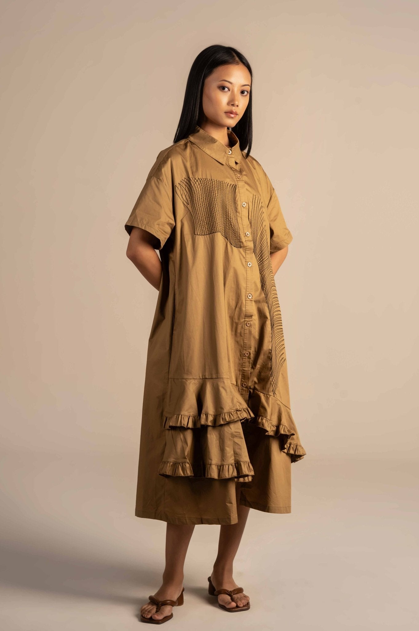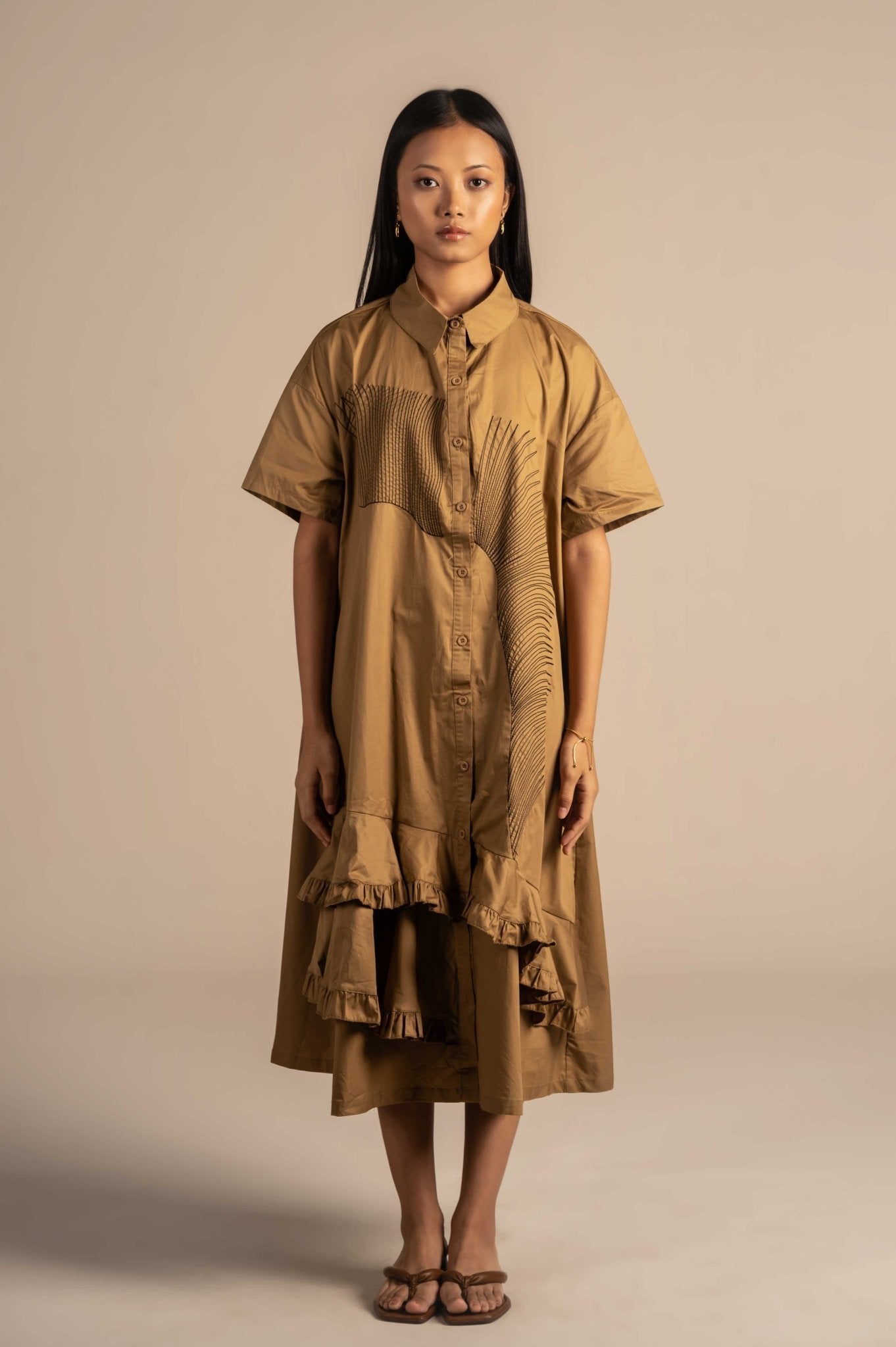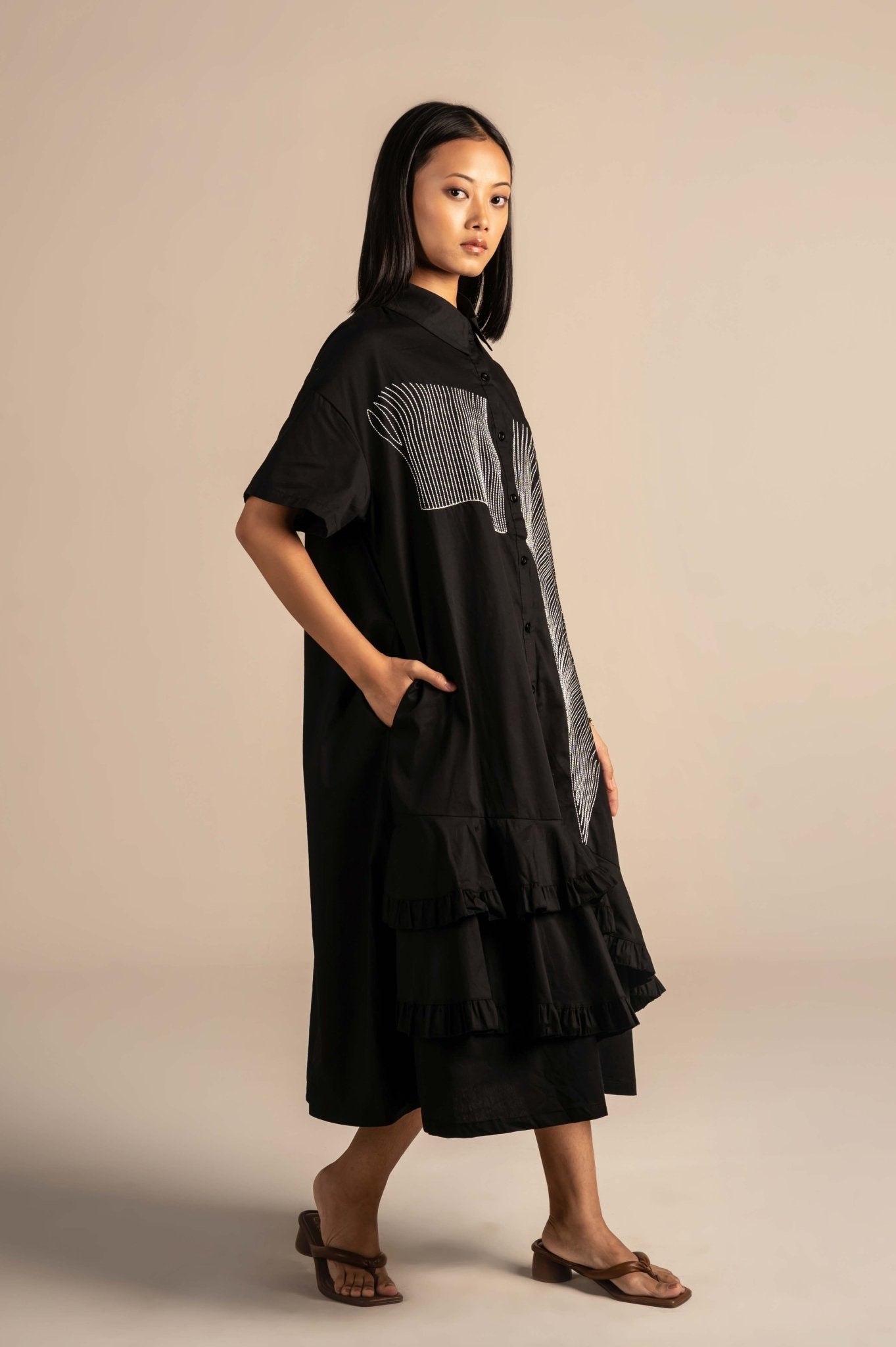 Shirt dress with modern linear embroidery