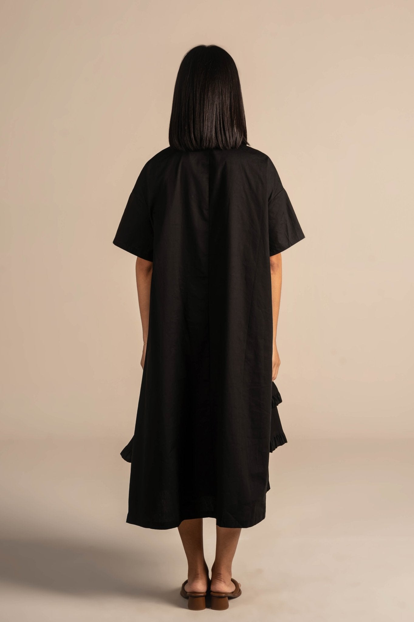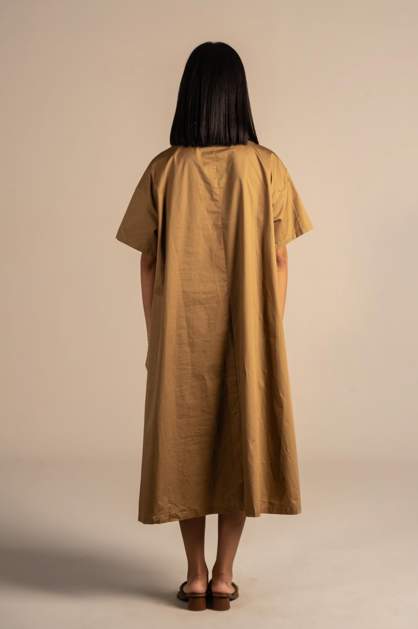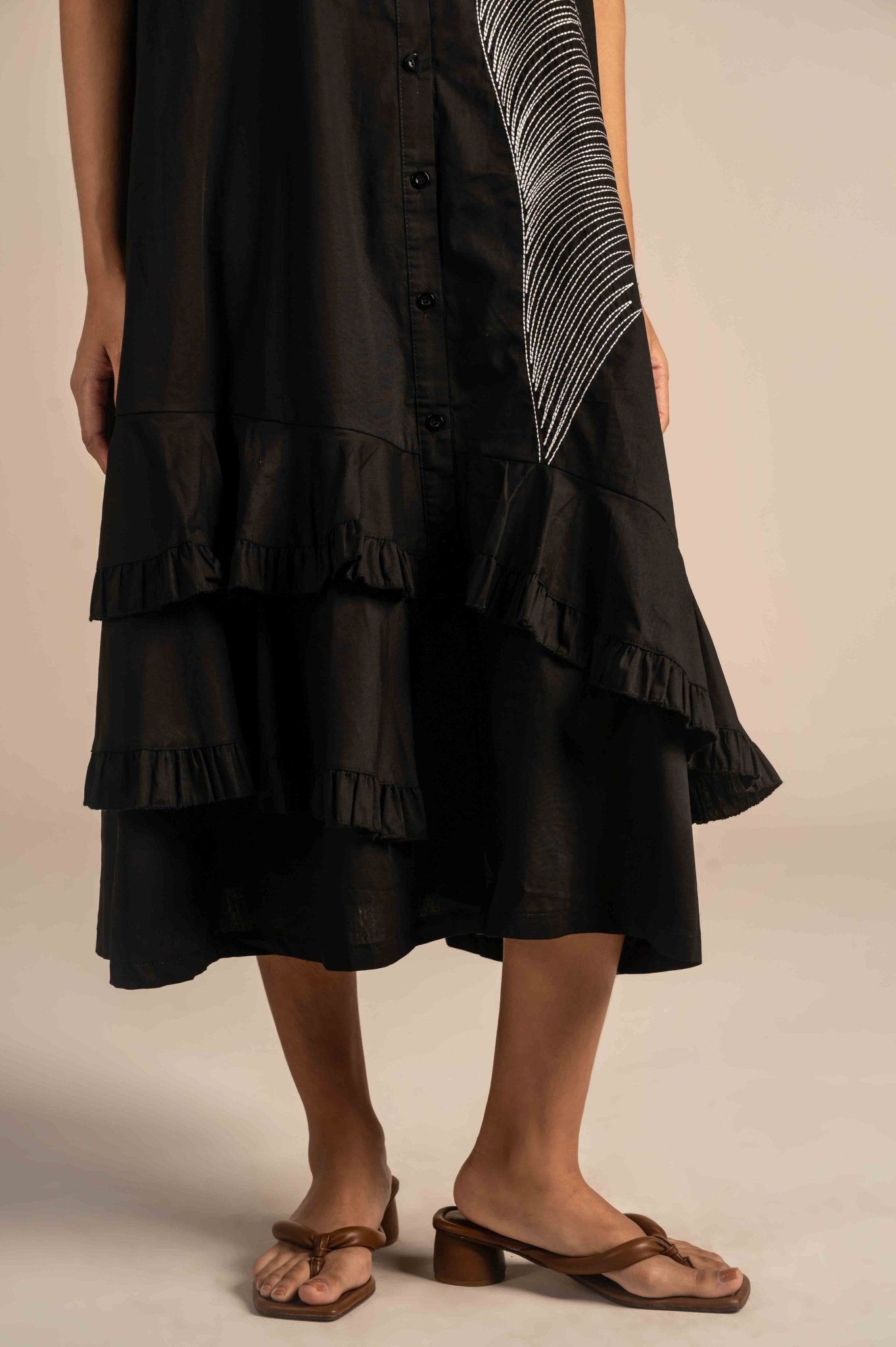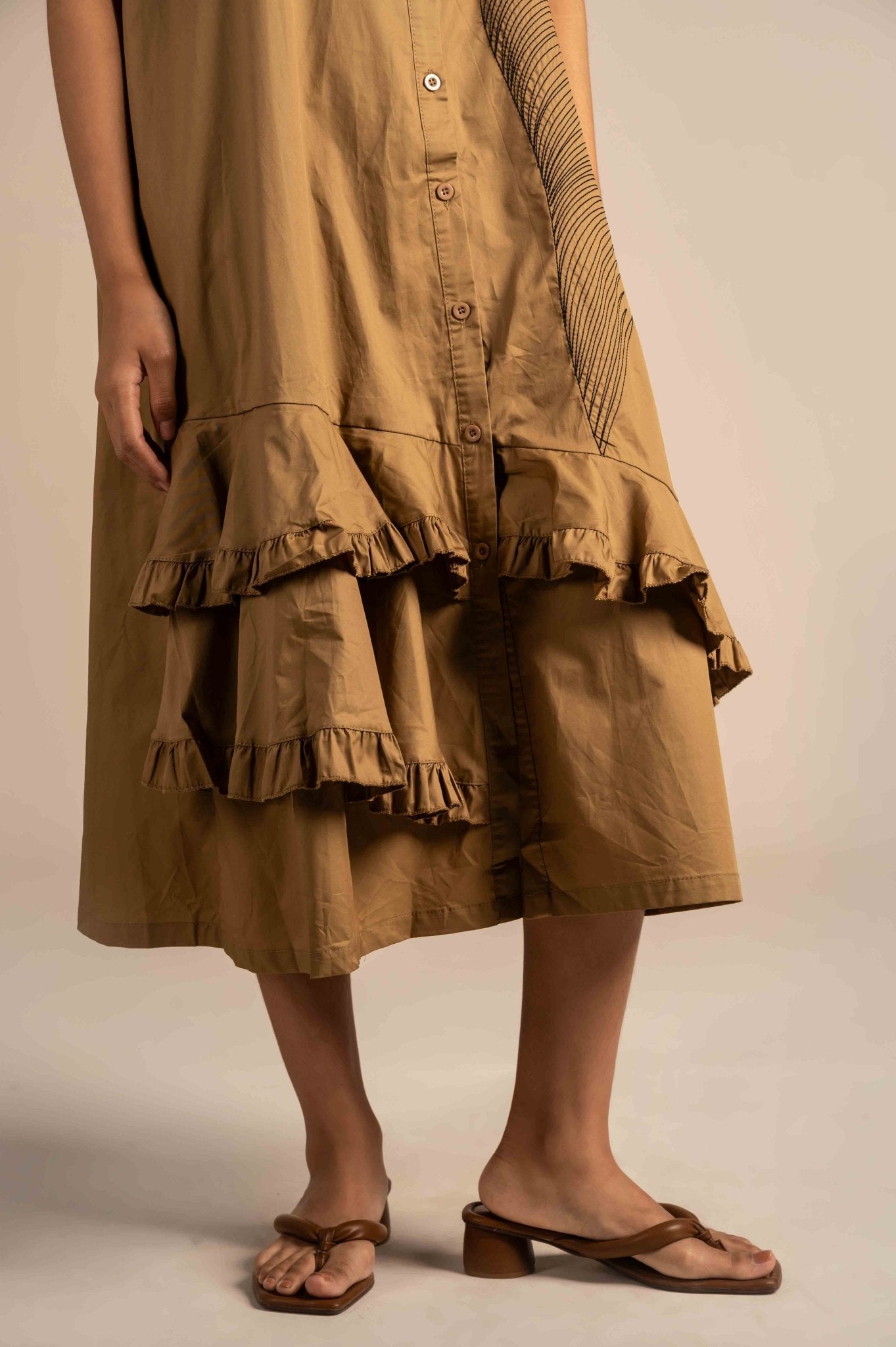 Shirt dress with modern linear embroidery