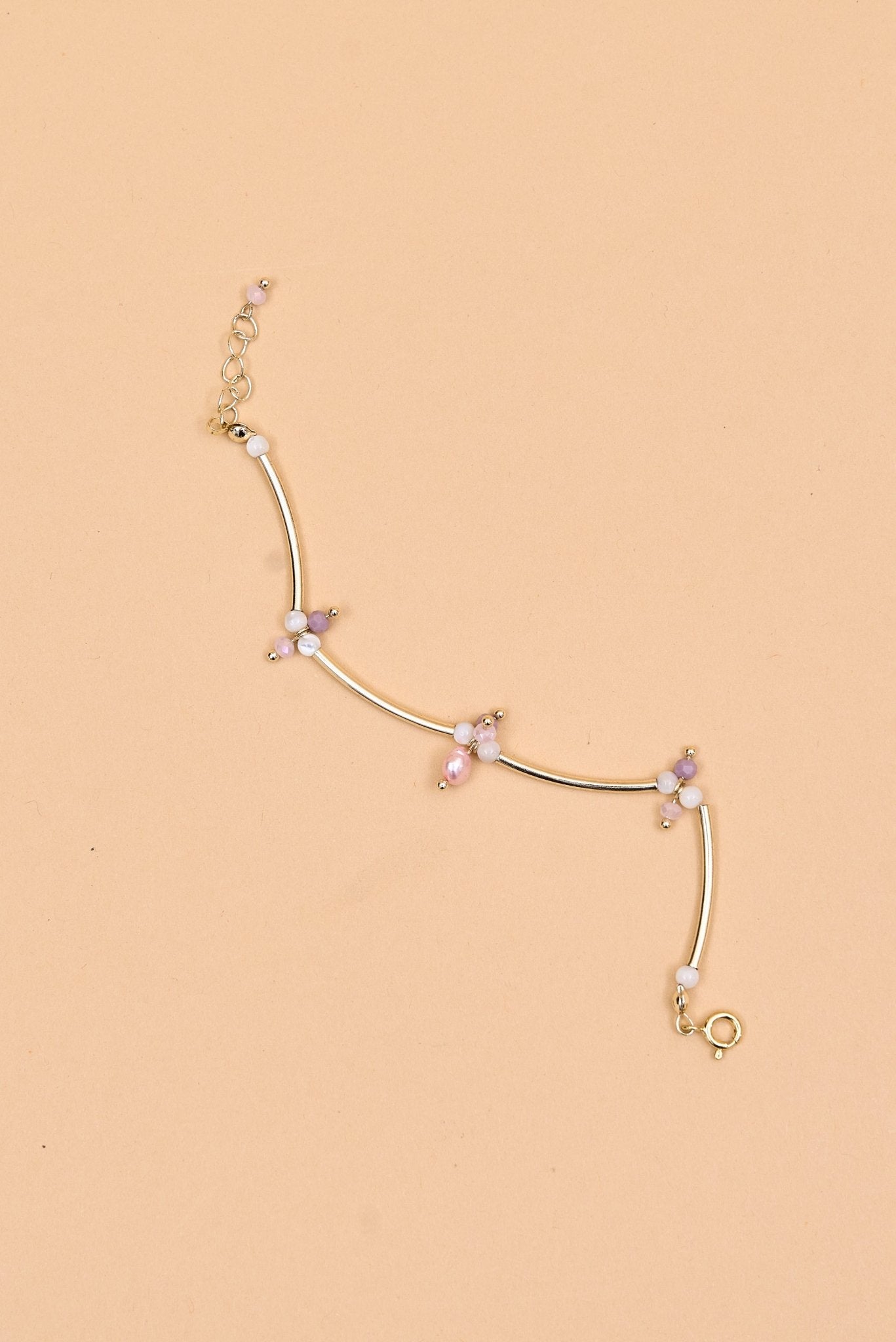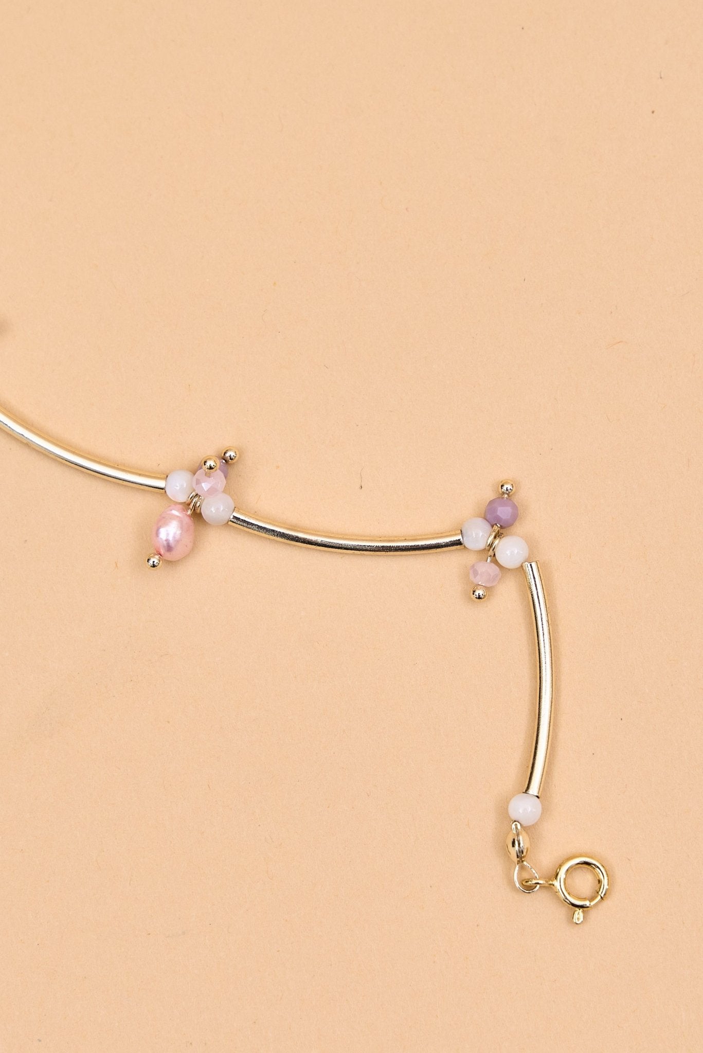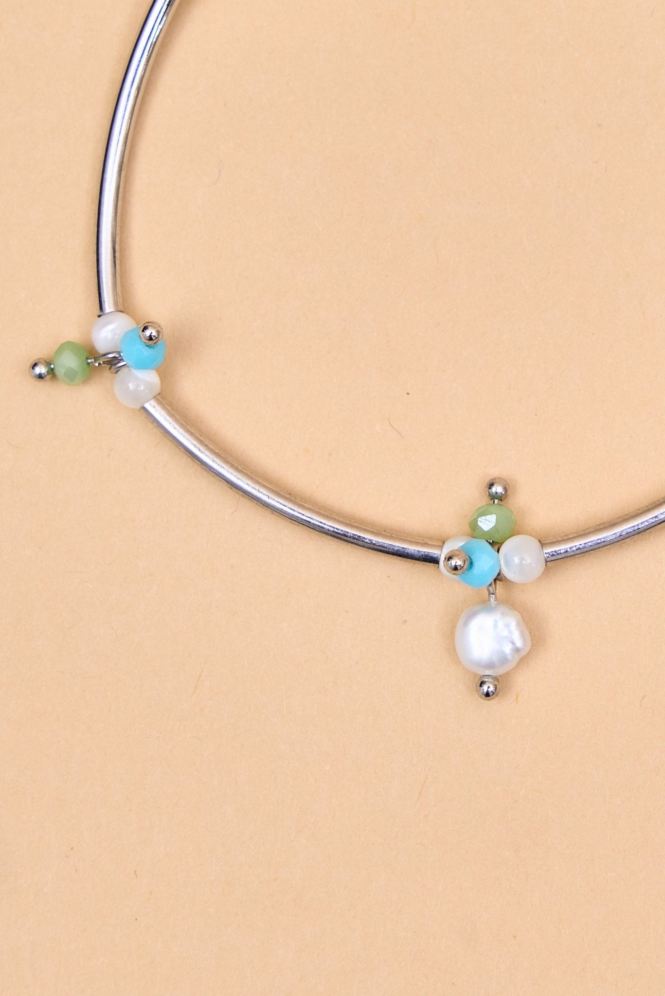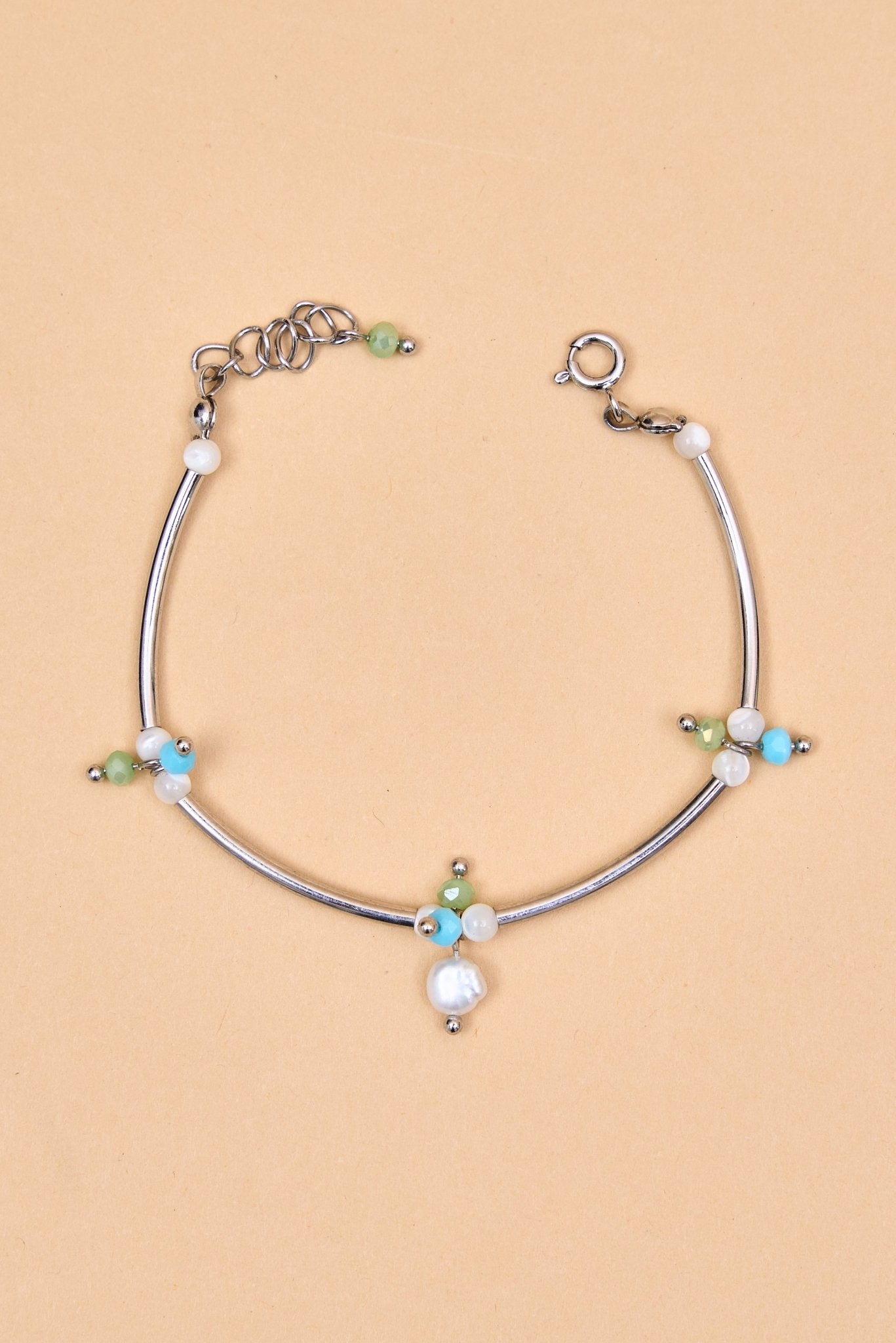 Silver tube bracelet with pastel beads