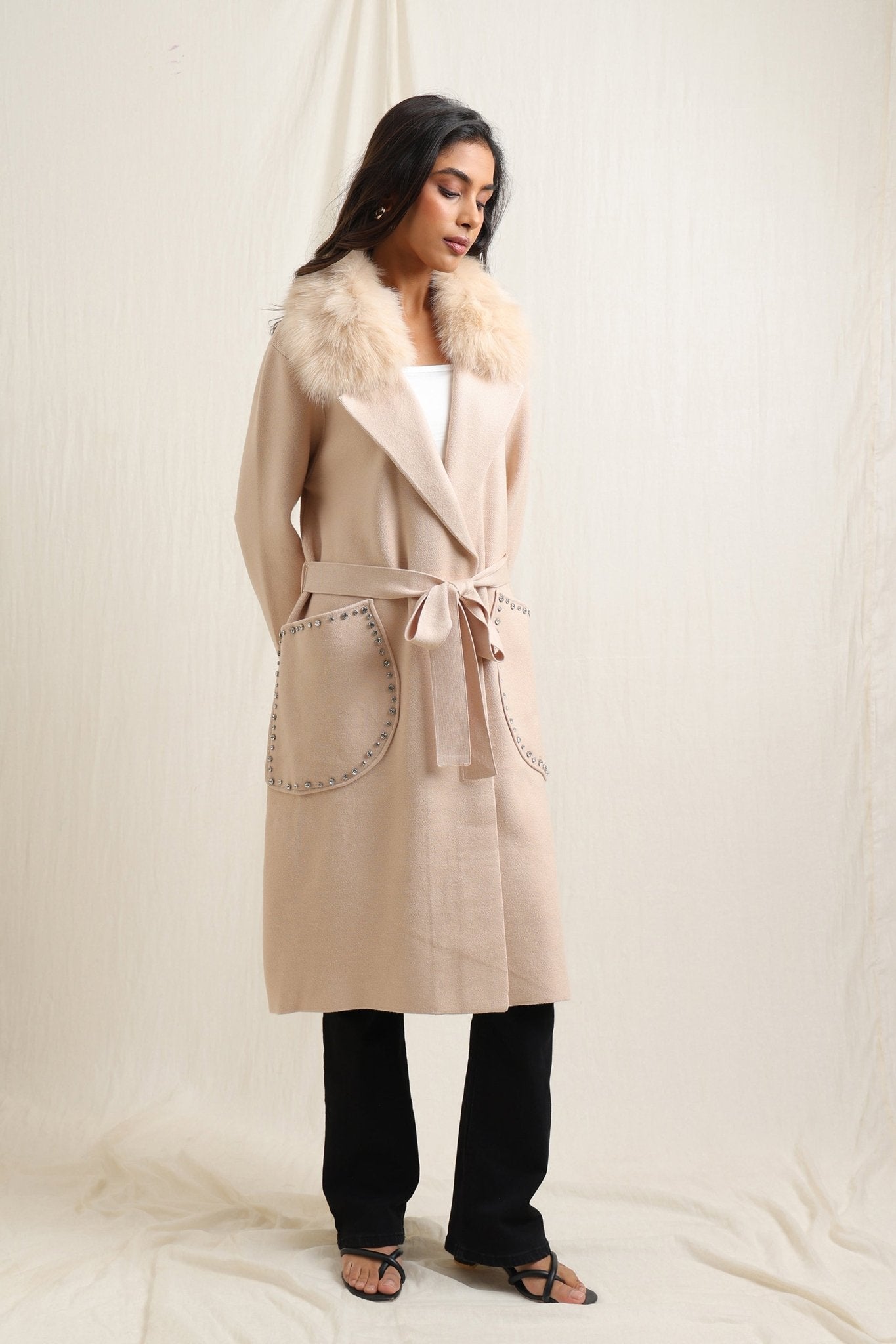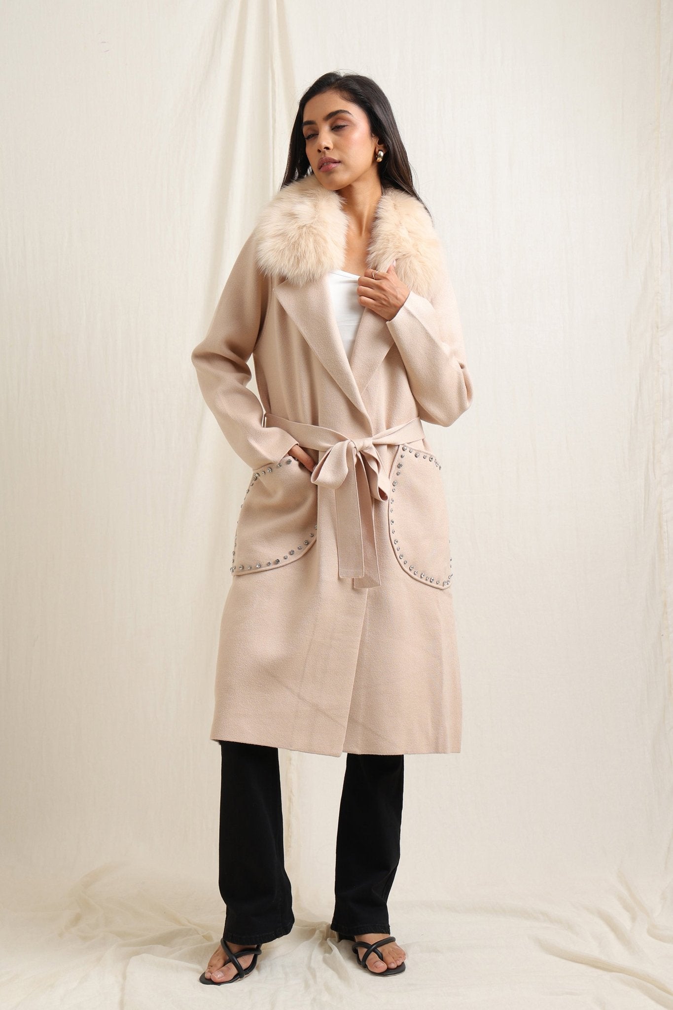 Fur Collar Wrap Coat