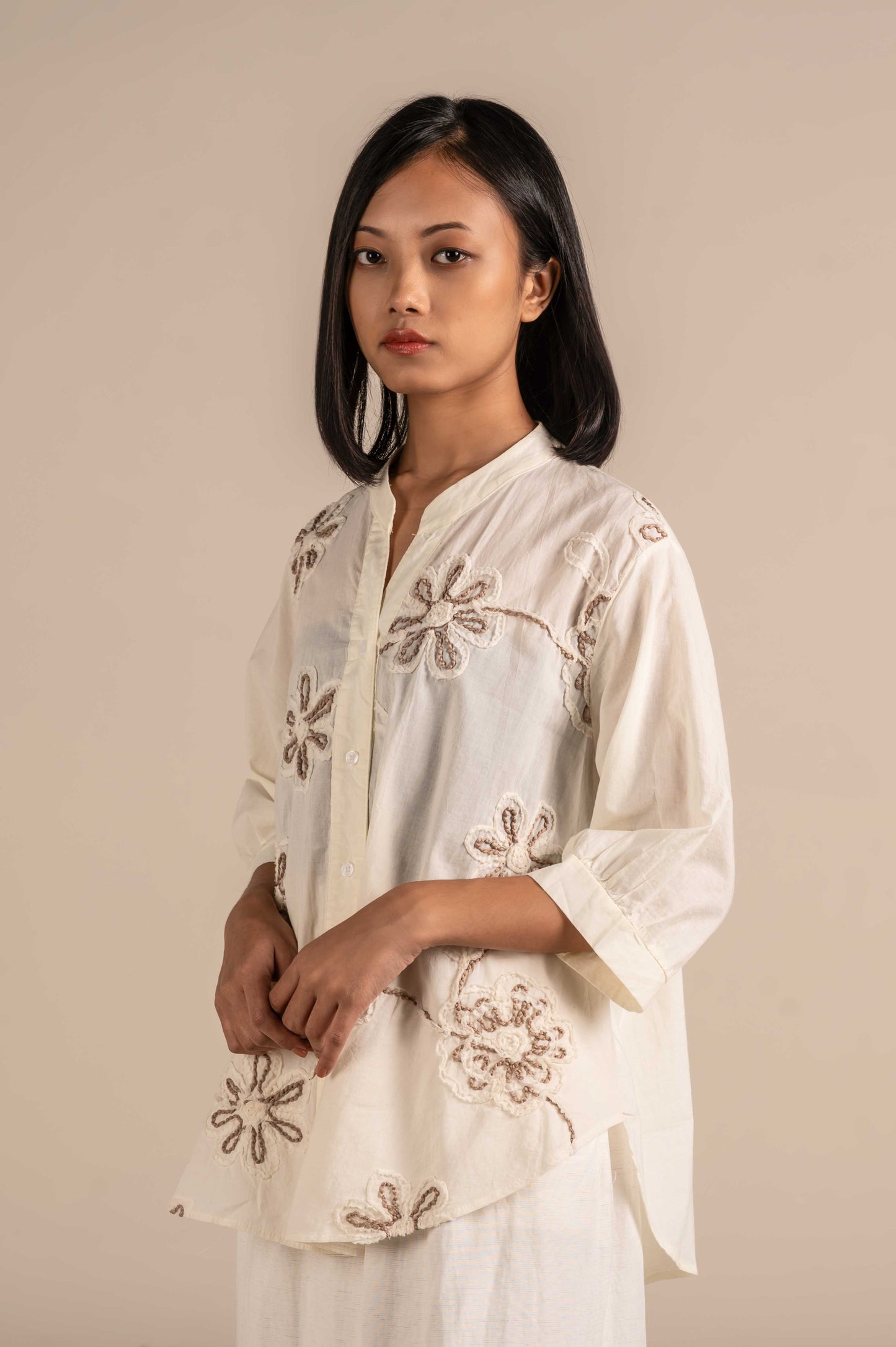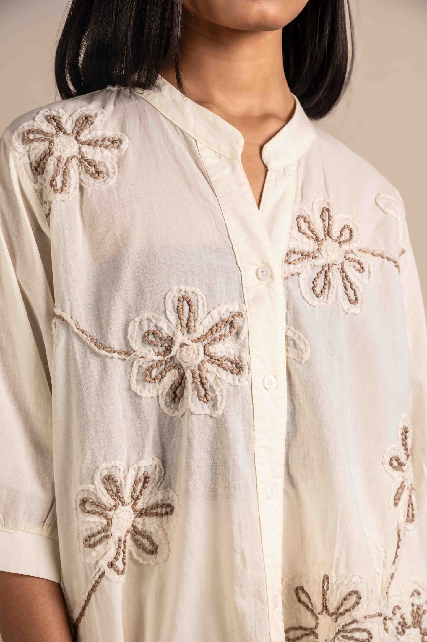 Shirt With Macro Flowers Embroidery