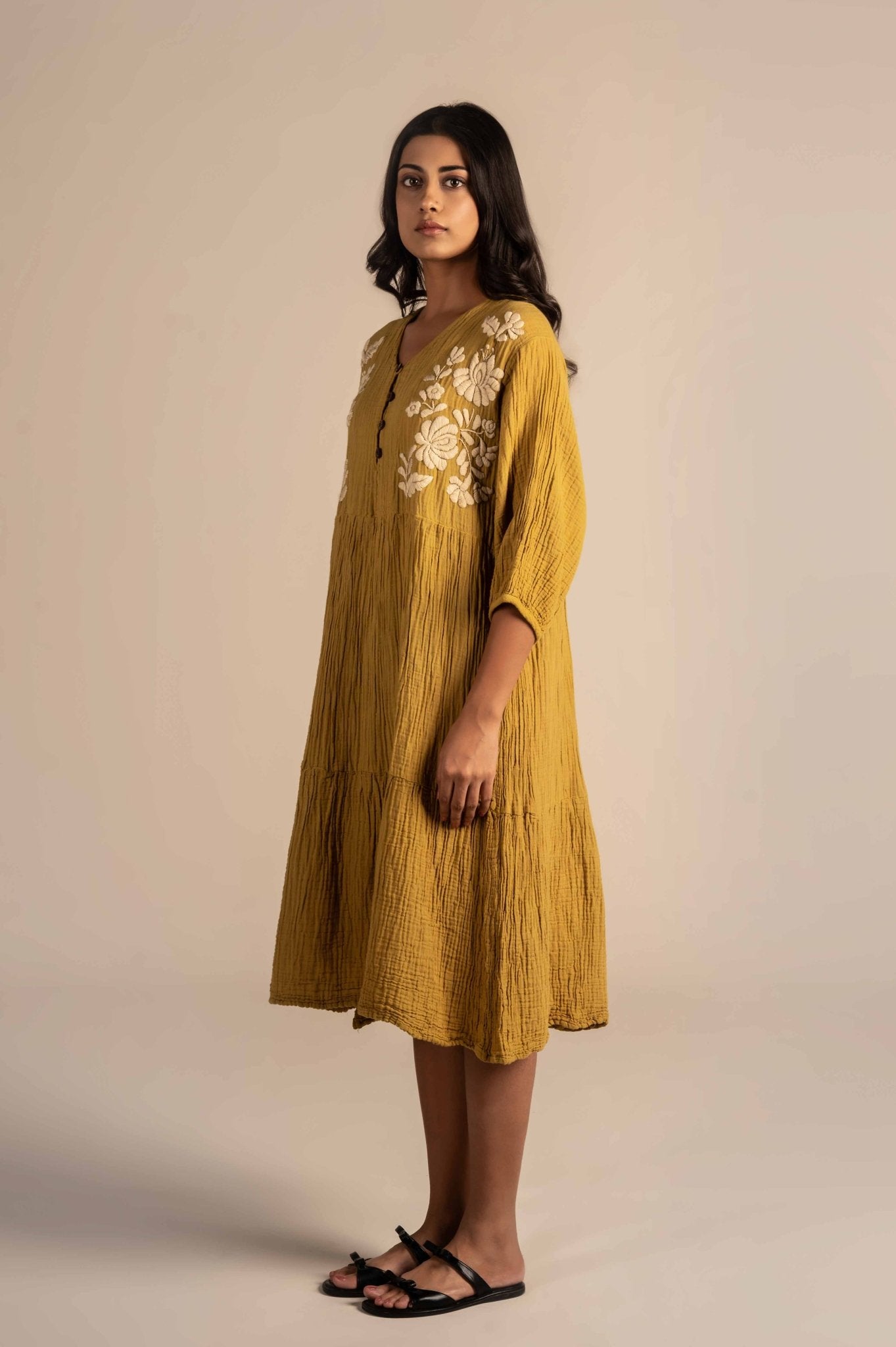 Half sleeves dress with floral embroidery