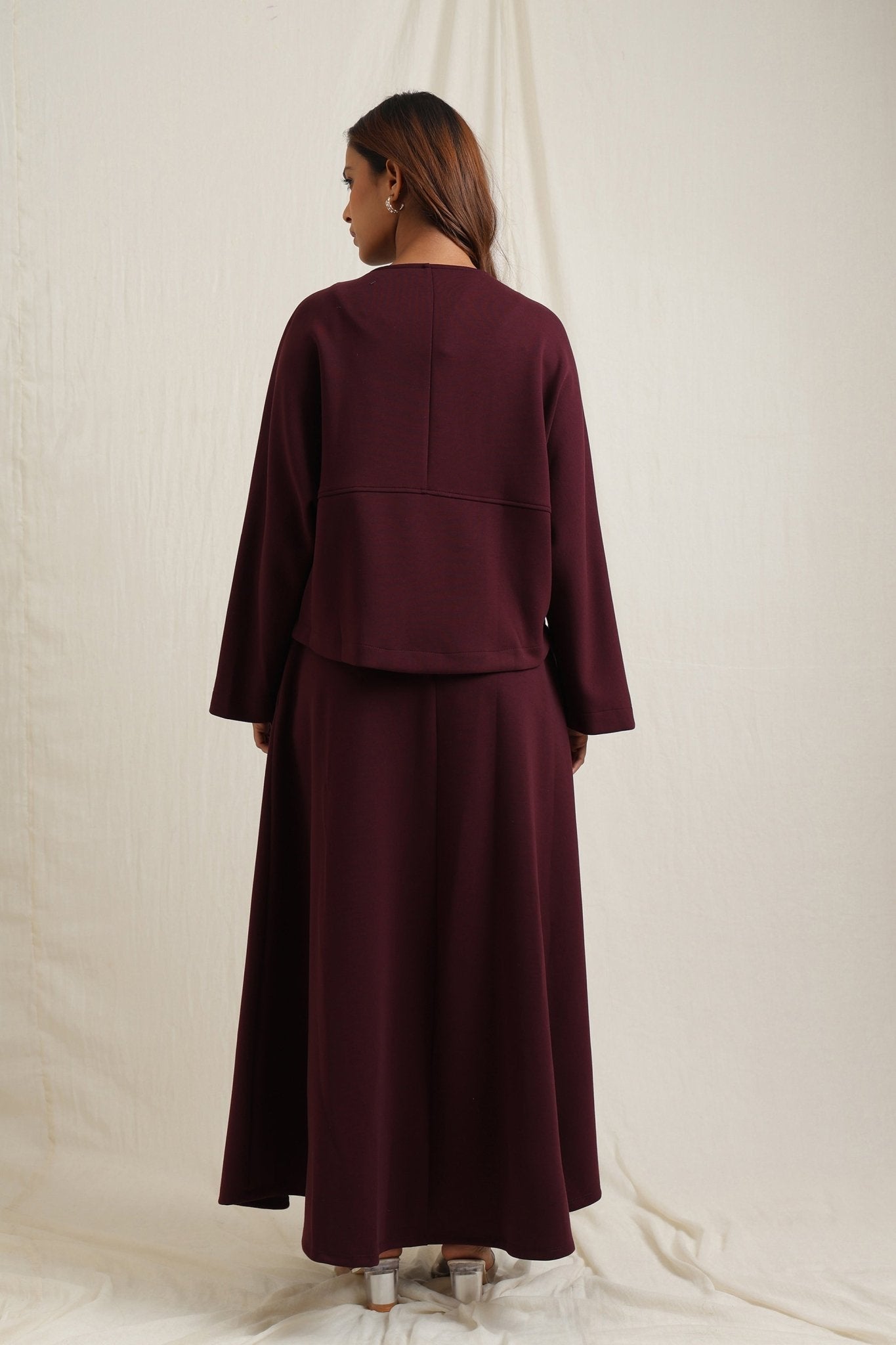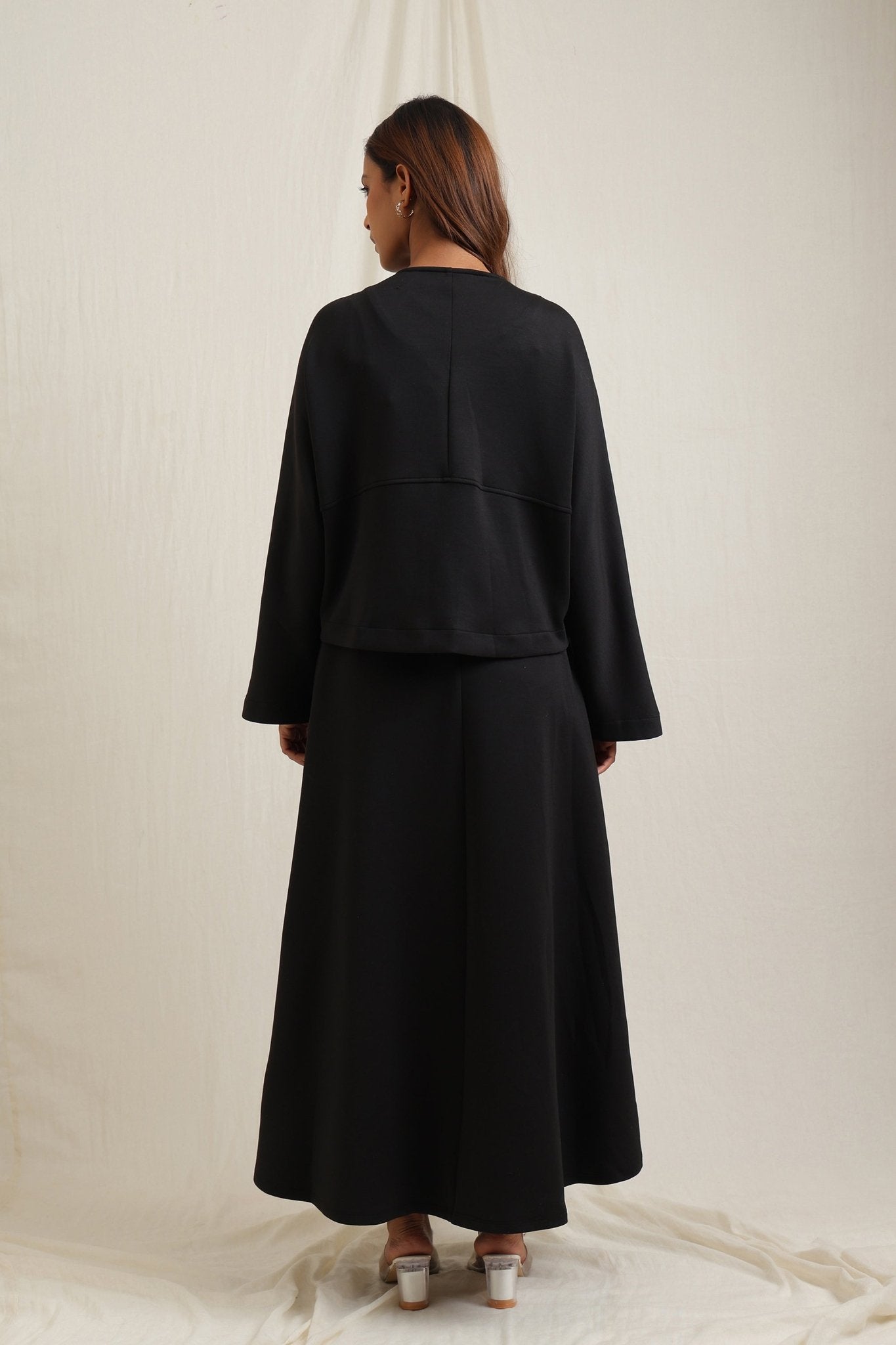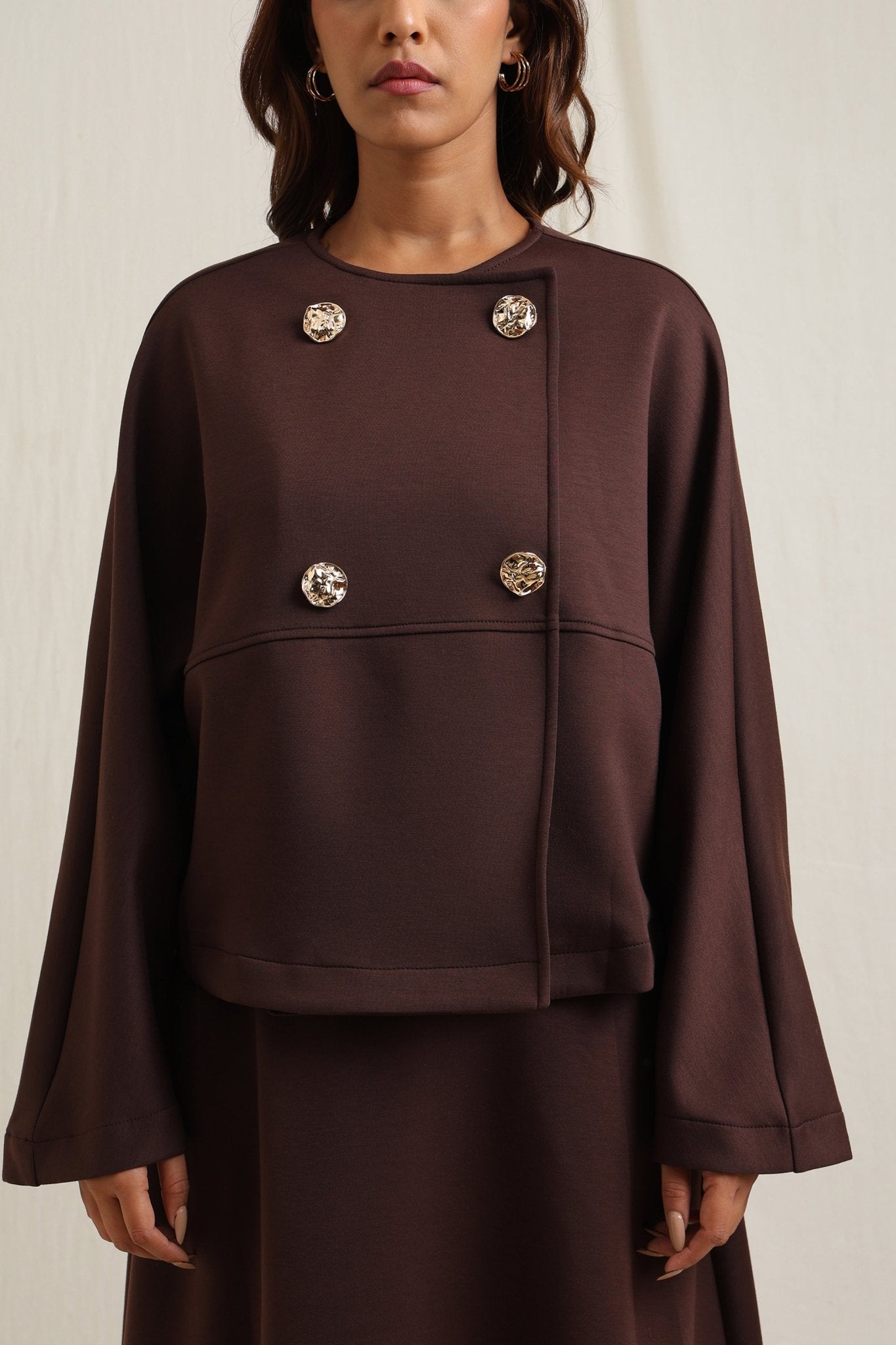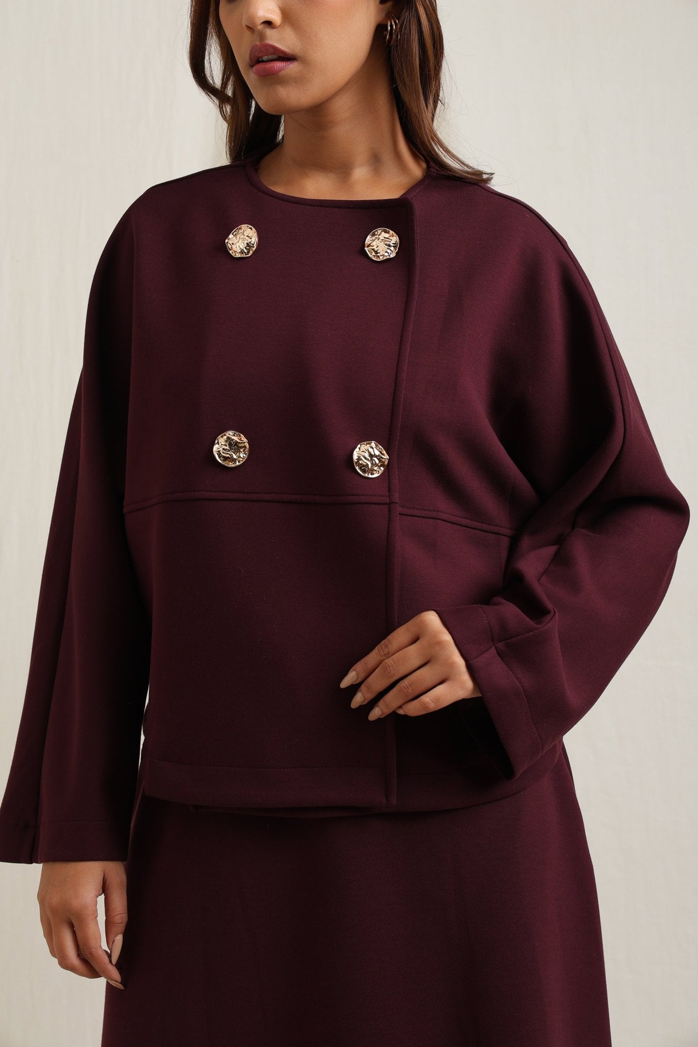 Regular price Rs. 7,350Batwing sleeve skirt set detailed with striking gold buttons for a touch of elegance.