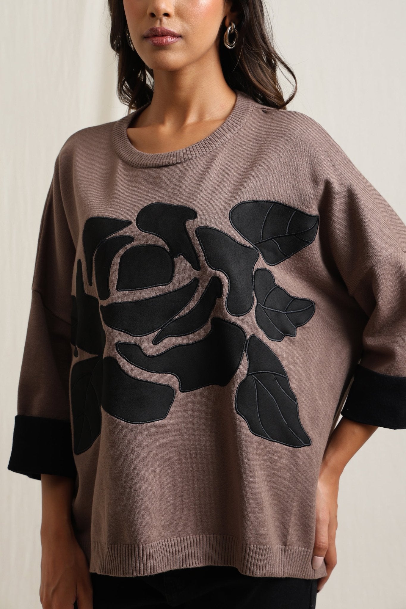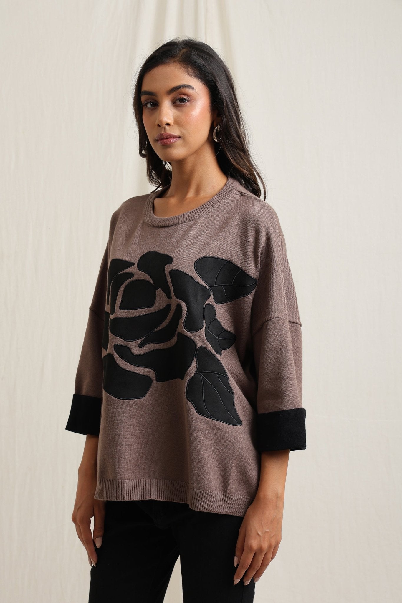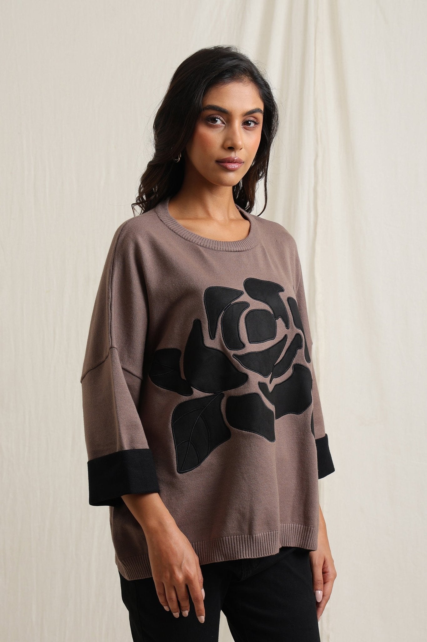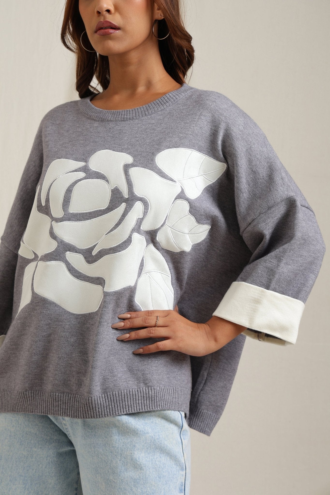 Regular price Rs. 6,500This sweater is defined by its prominent rose motif knitted into the front, delivering a timeless yet bold aesthetic. The floral design adds visual interest, while the relaxed fit ensures comfort