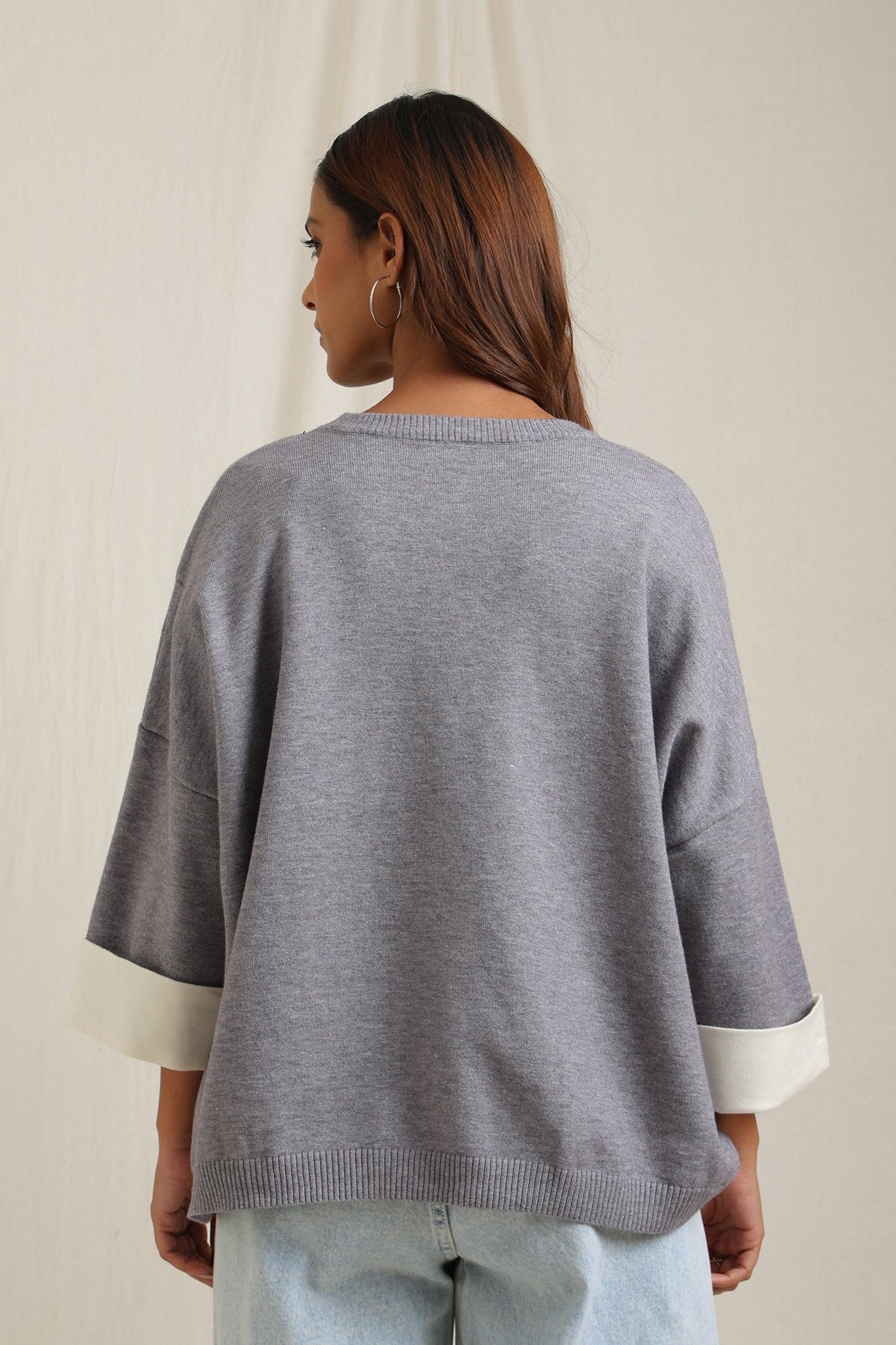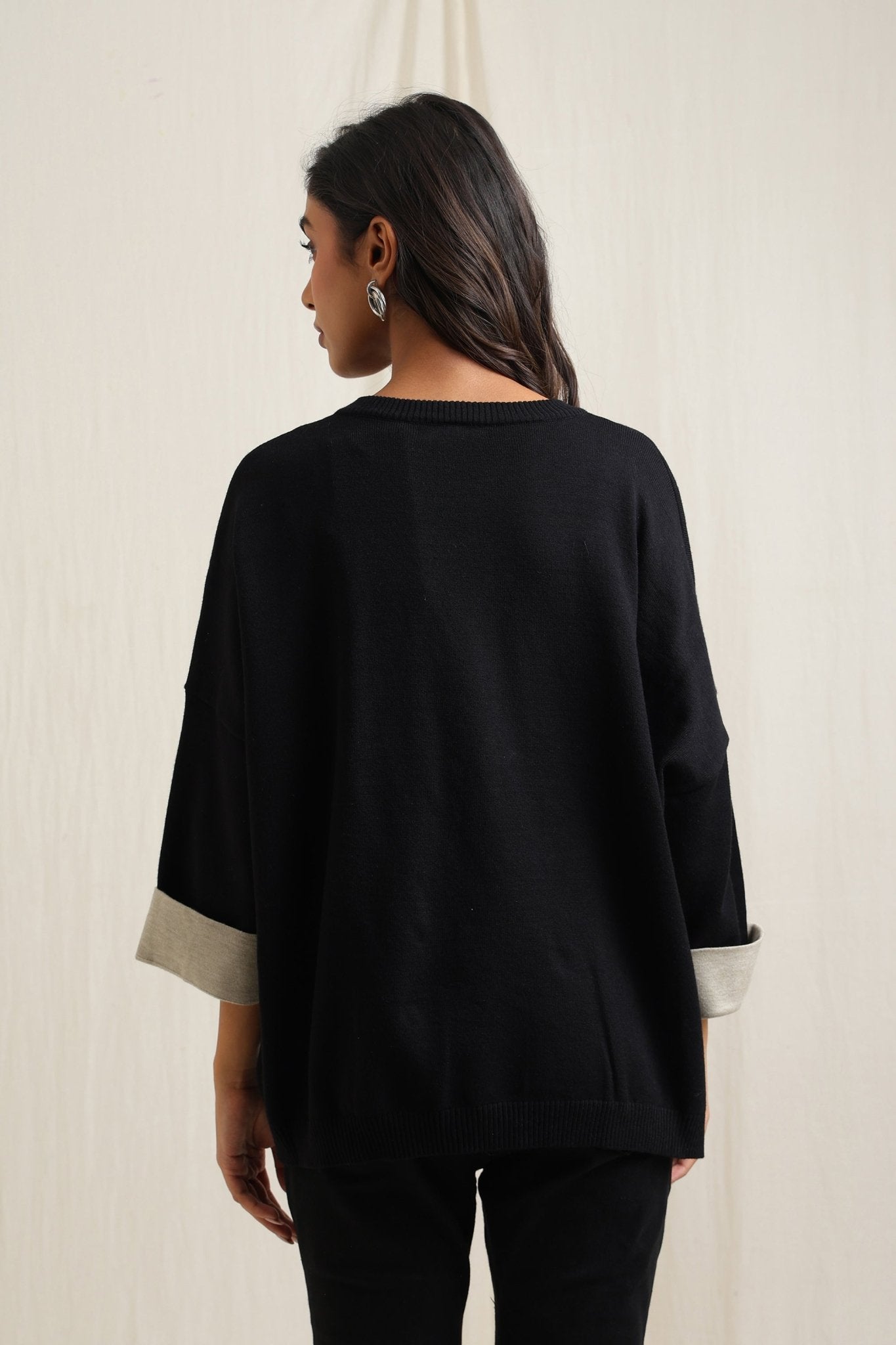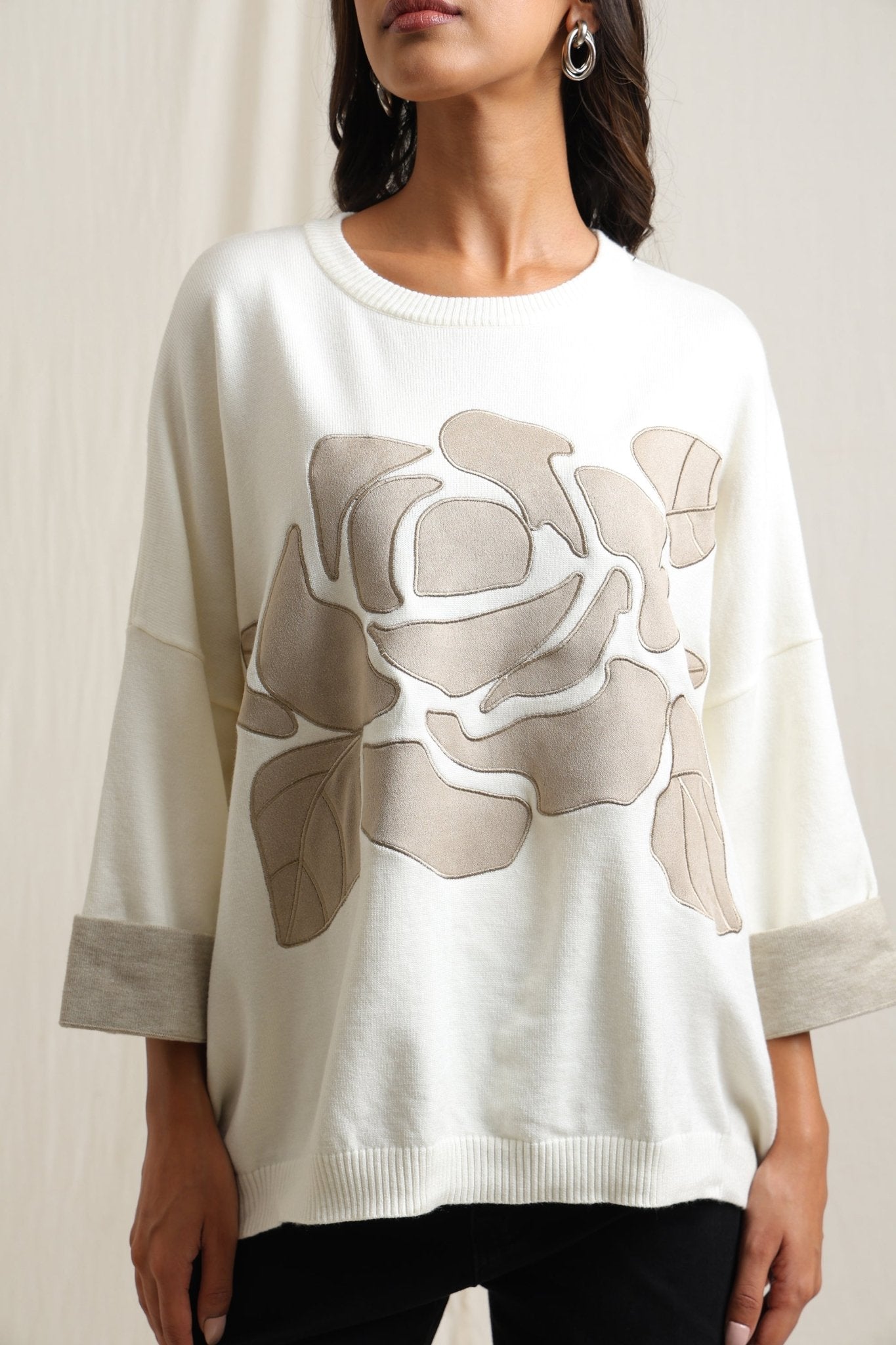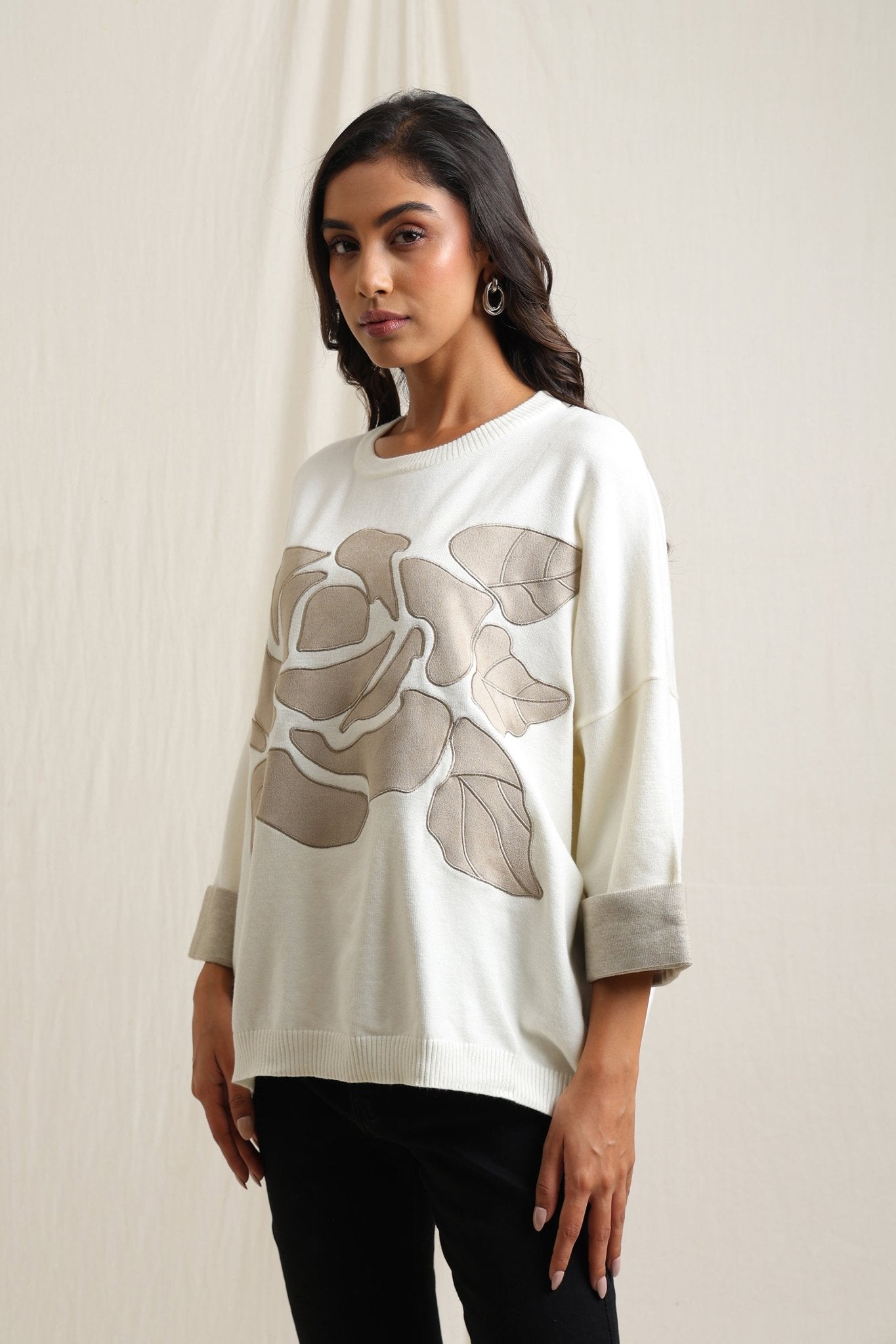 Regular price Rs. 6,500This sweater is defined by its prominent rose motif knitted into the front, delivering a timeless yet bold aesthetic. The floral design adds visual interest, while the relaxed fit ensures comfort