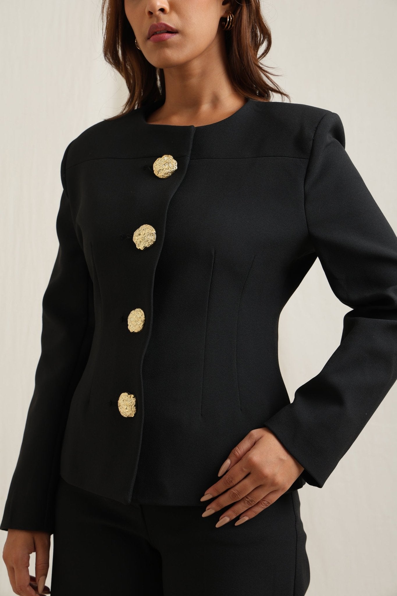 Regular price Rs. 5,525Coordinated blouse and jacket set with sleek button detailing.