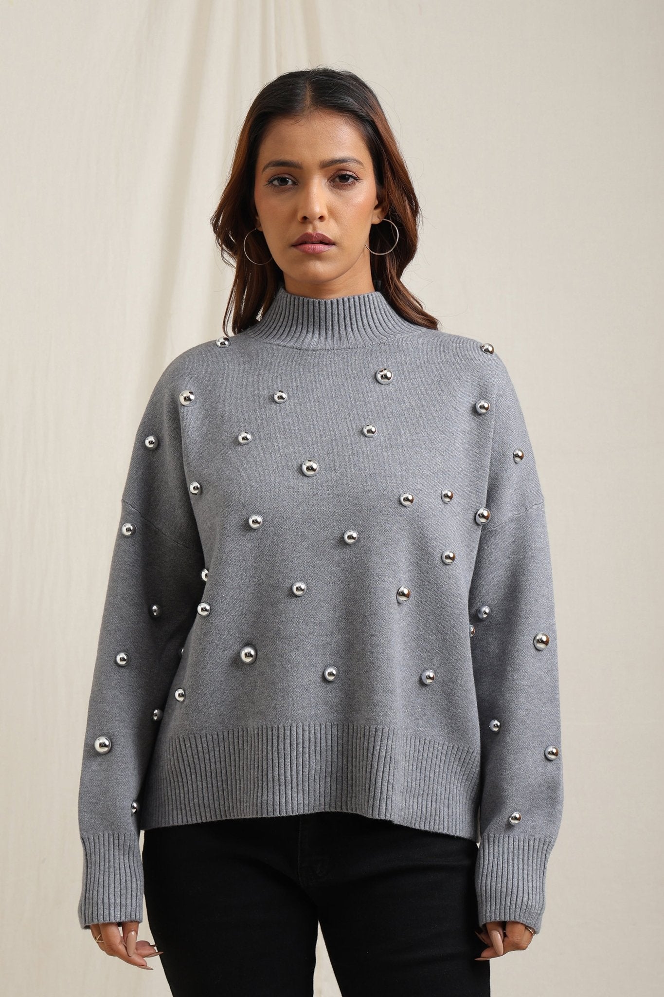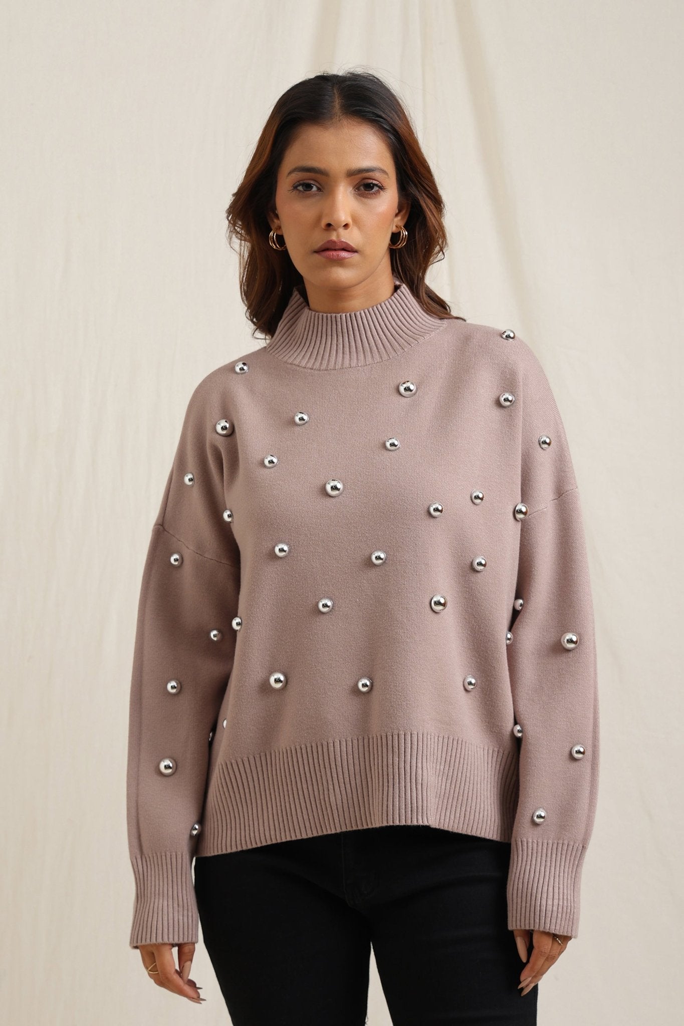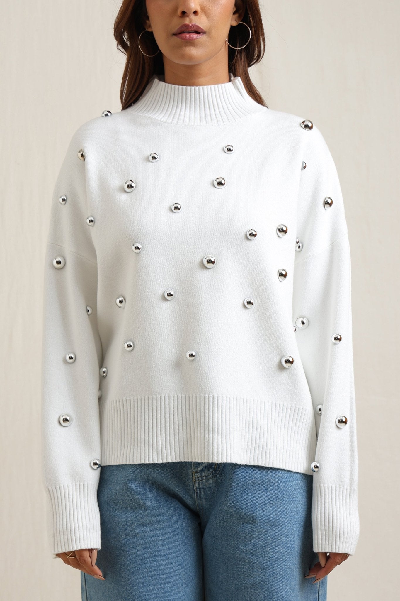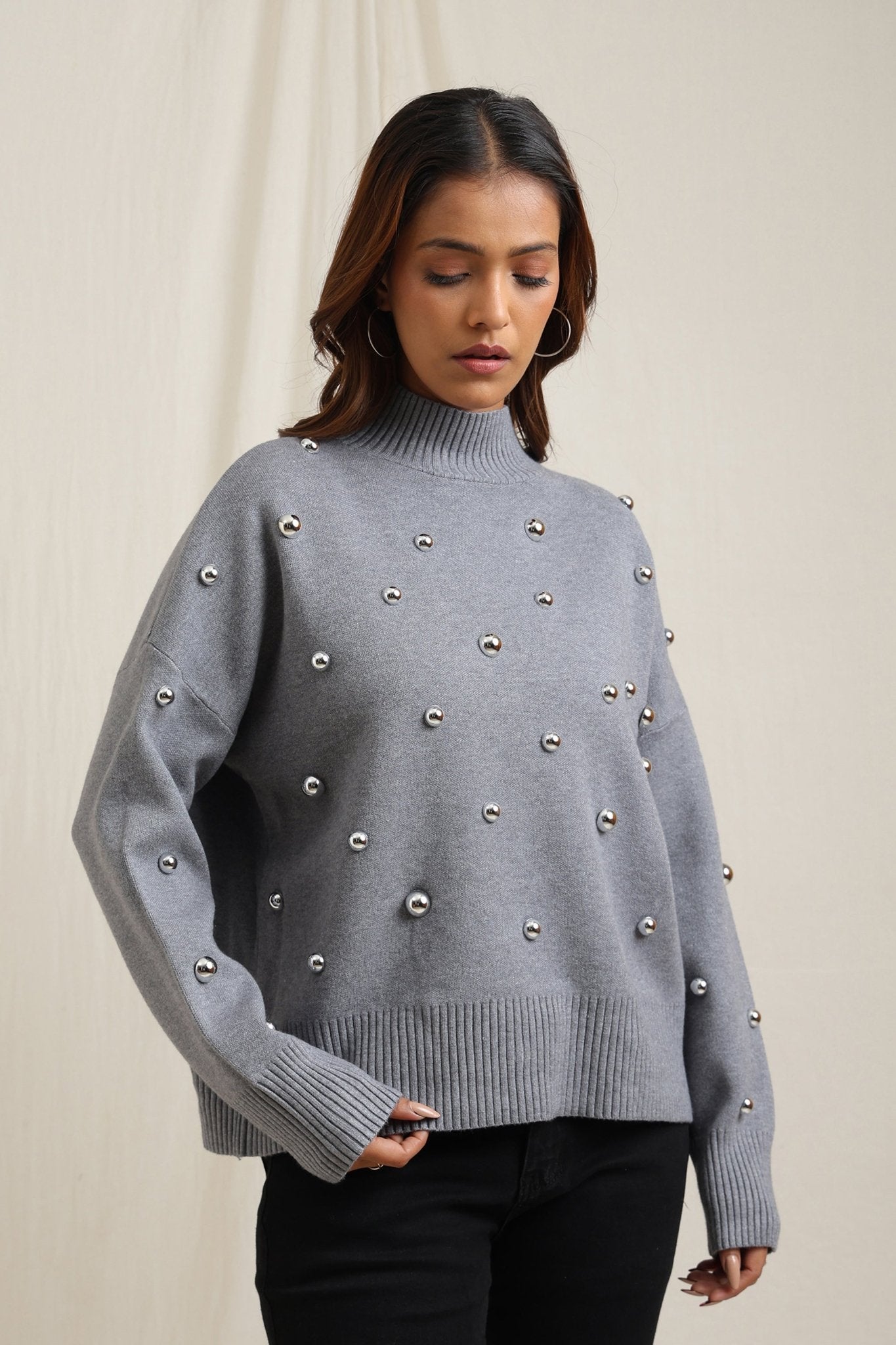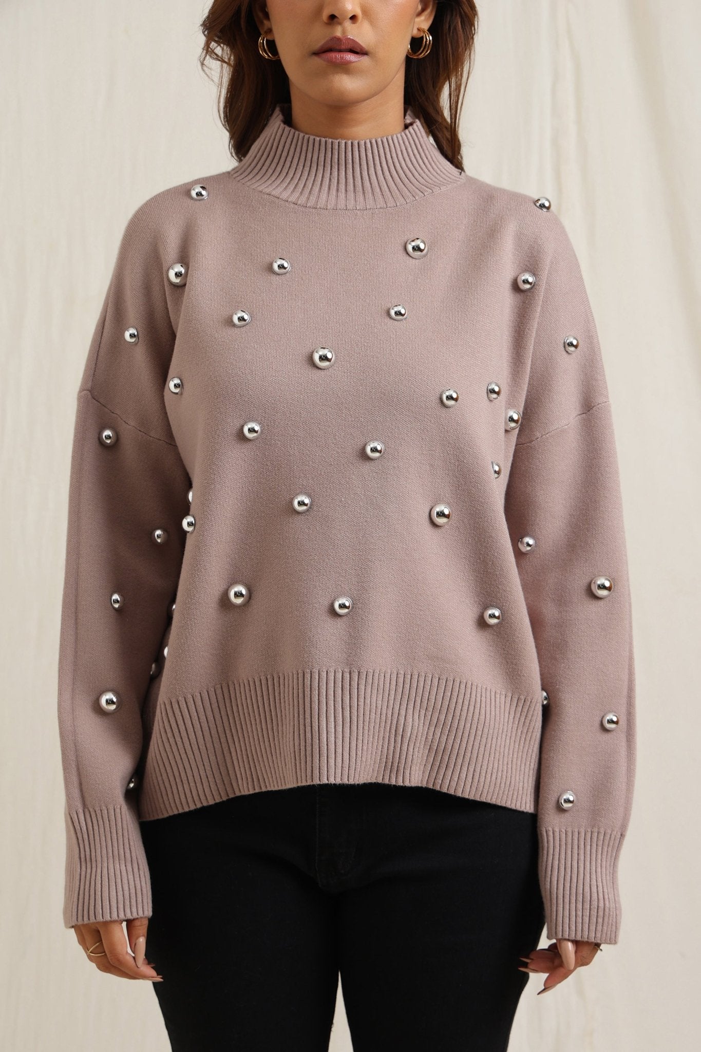 Regular price Rs. 7,000Cozy sweater featuring scattered embellishments that add a playful yet elegant edge. Designed with a relaxed fit, ribbed neckline, and soft finish, itÕs an effortless way to elevate your everyday look while keeping warm