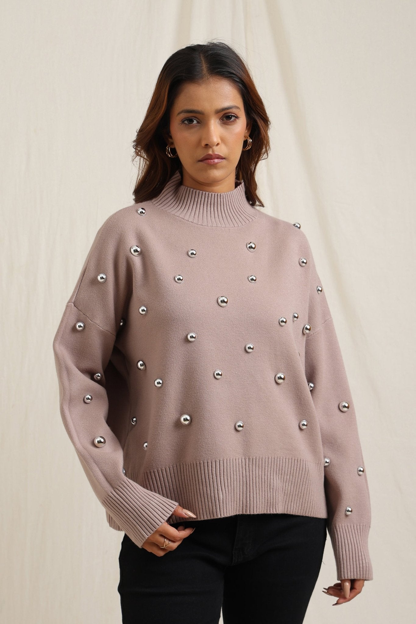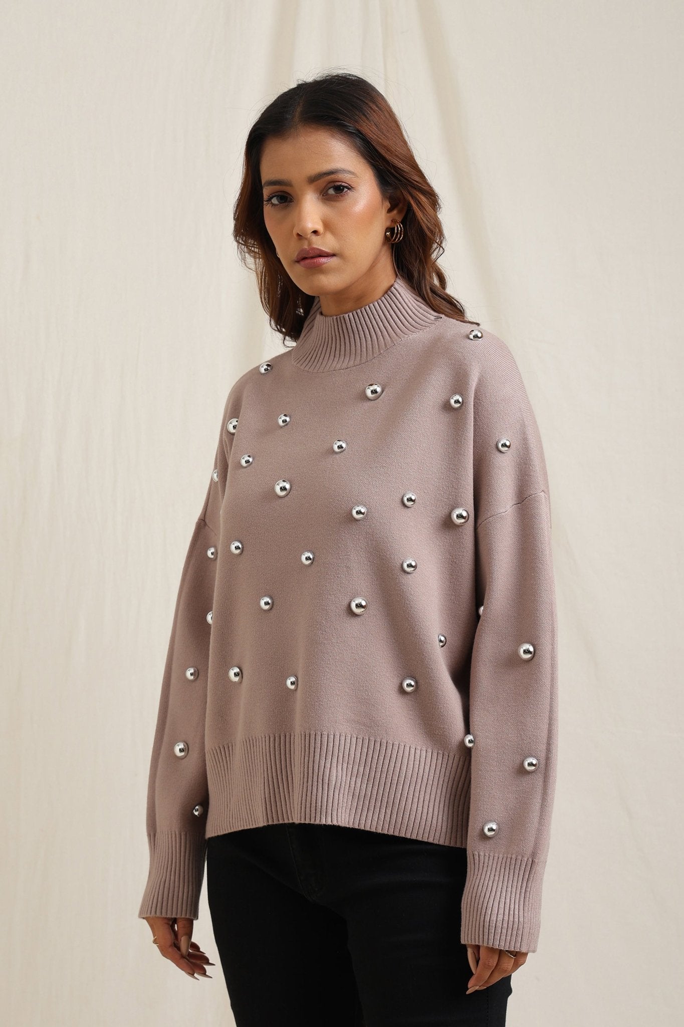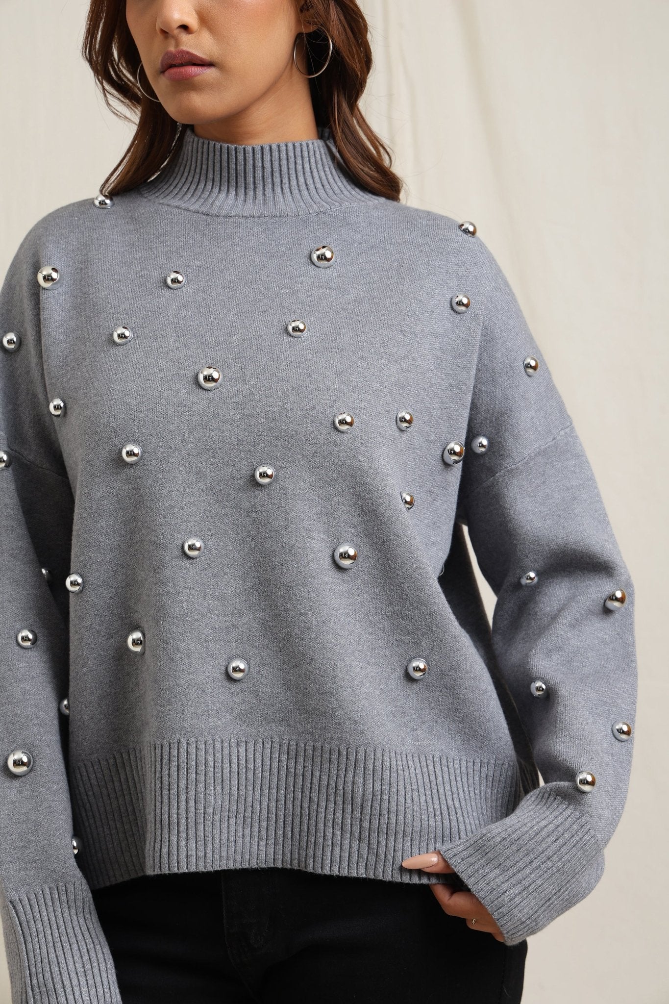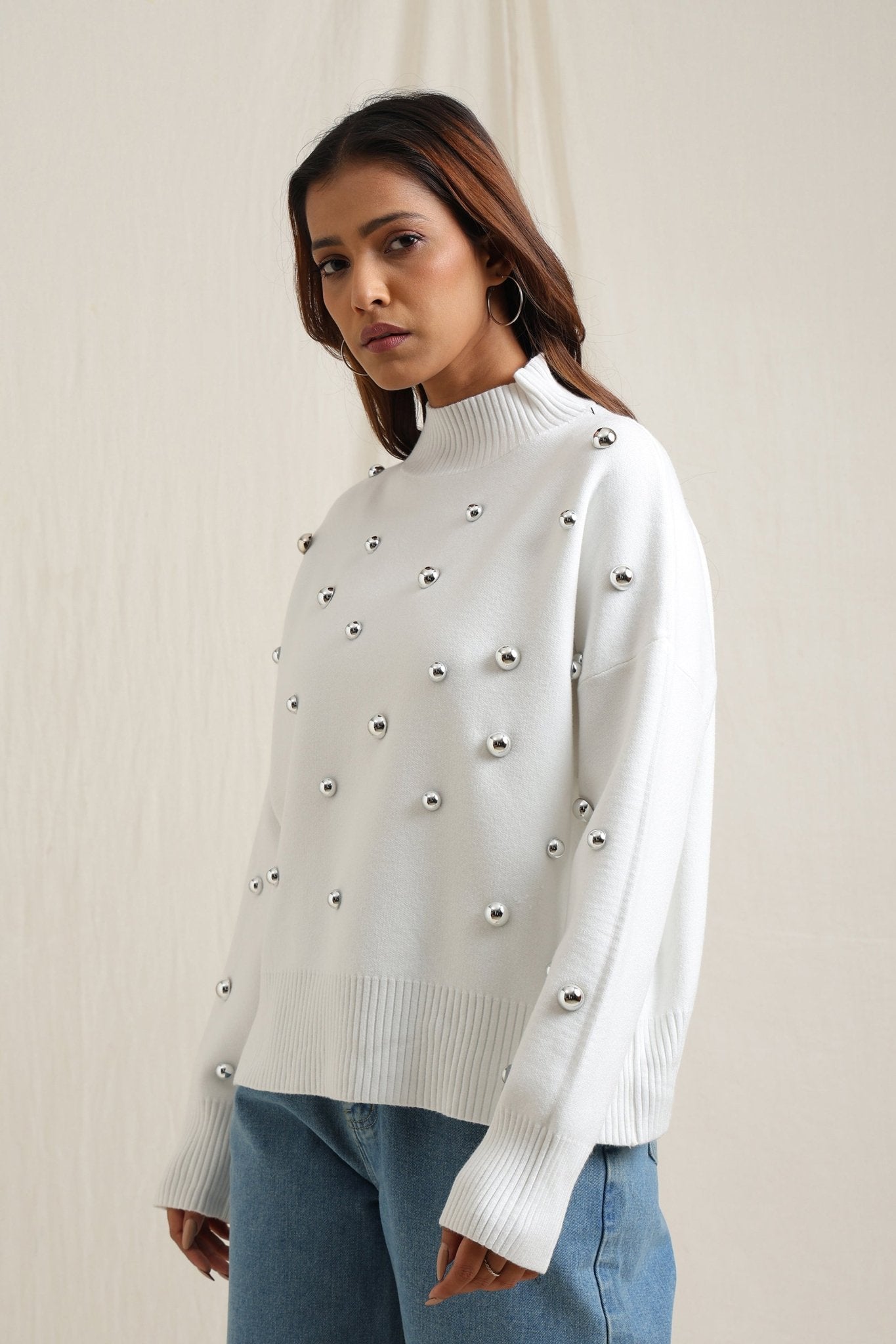 Regular price Rs. 7,000Cozy sweater featuring scattered embellishments that add a playful yet elegant edge. Designed with a relaxed fit, ribbed neckline, and soft finish, itÕs an effortless way to elevate your everyday look while keeping warm