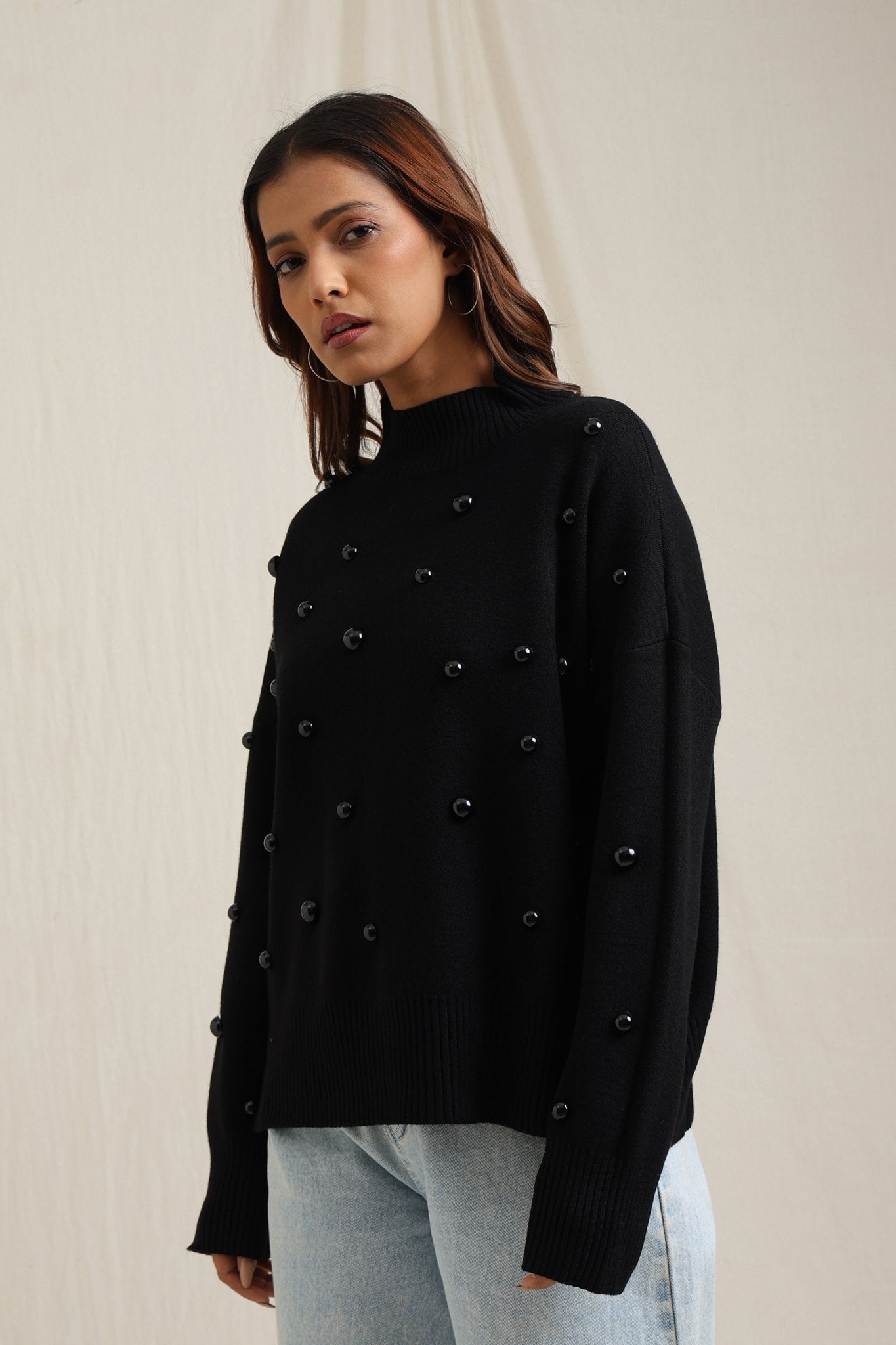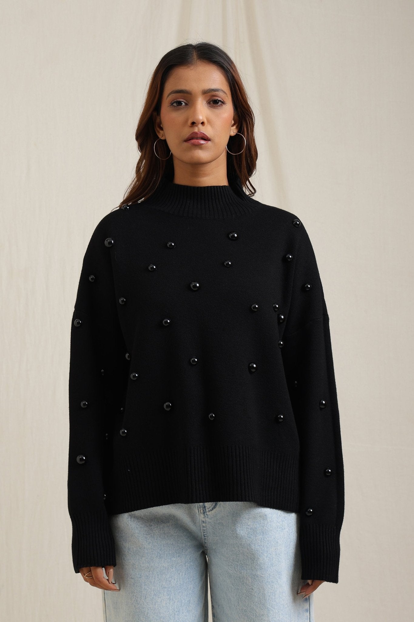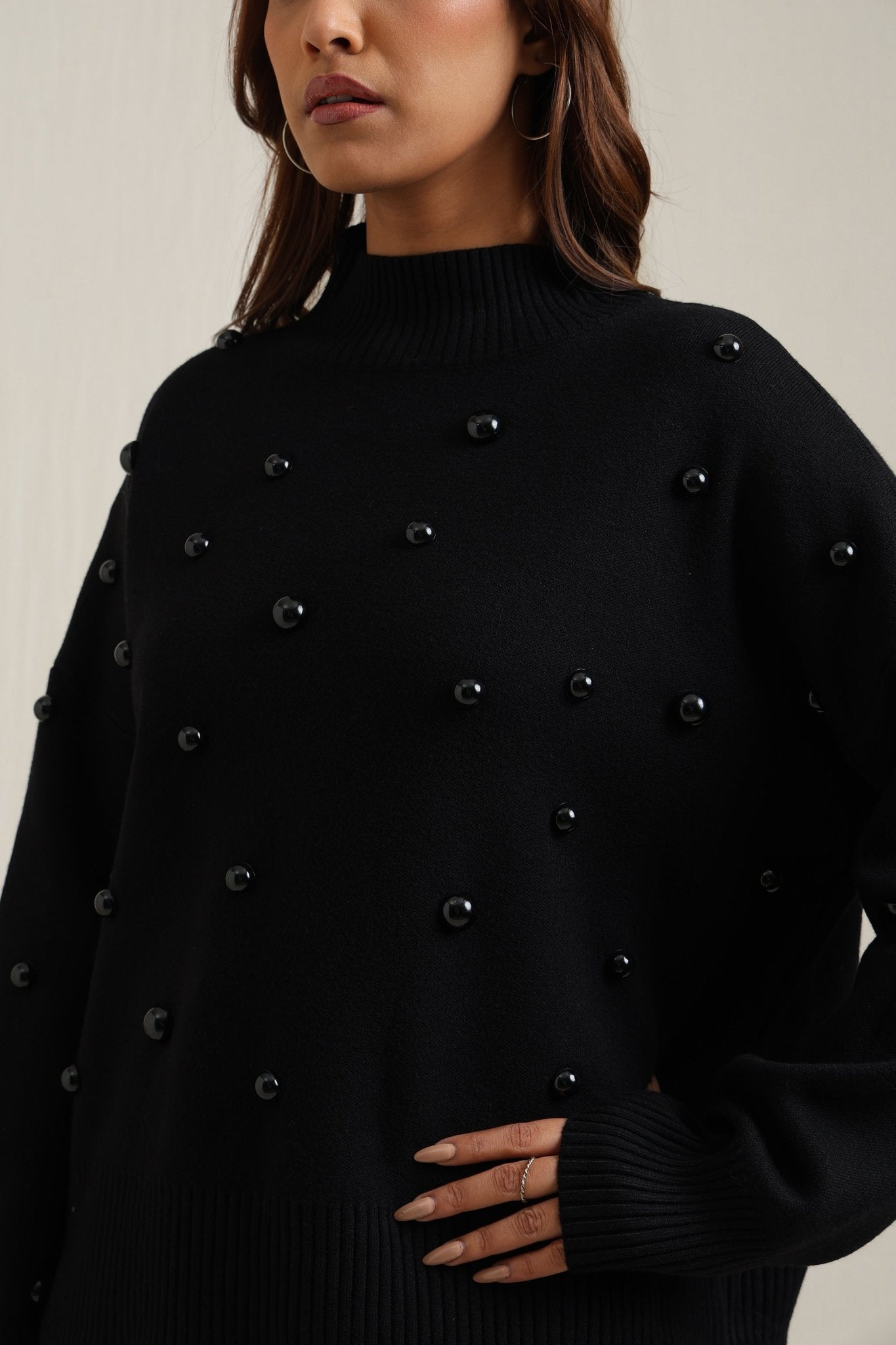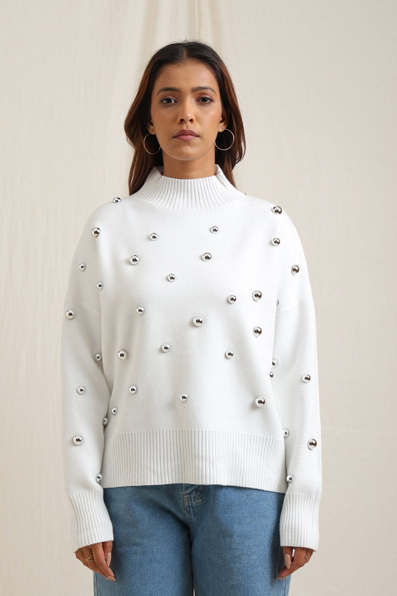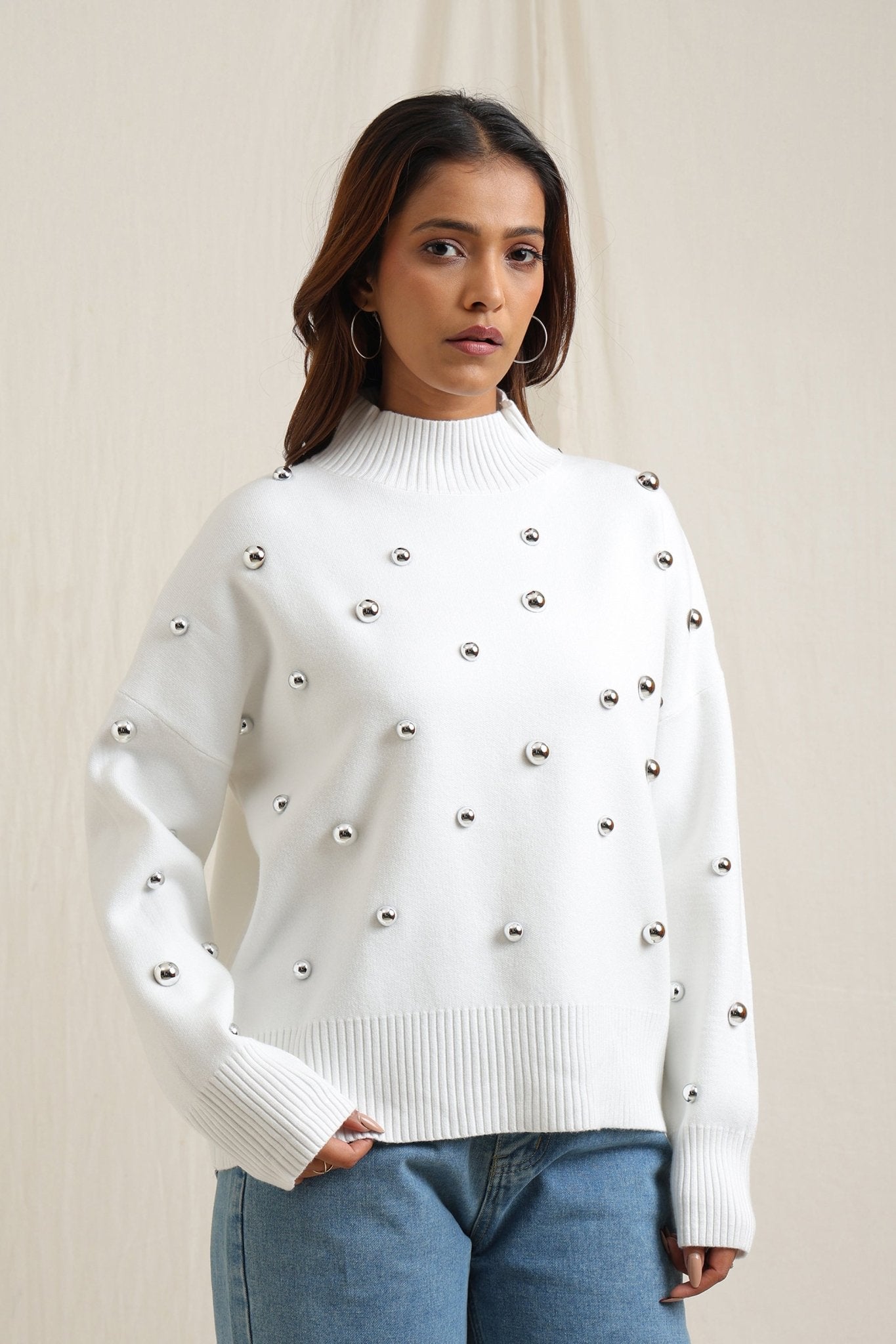 Regular price Rs. 7,000Cozy sweater featuring scattered embellishments that add a playful yet elegant edge. Designed with a relaxed fit, ribbed neckline, and soft finish, itÕs an effortless way to elevate your everyday look while keeping warm