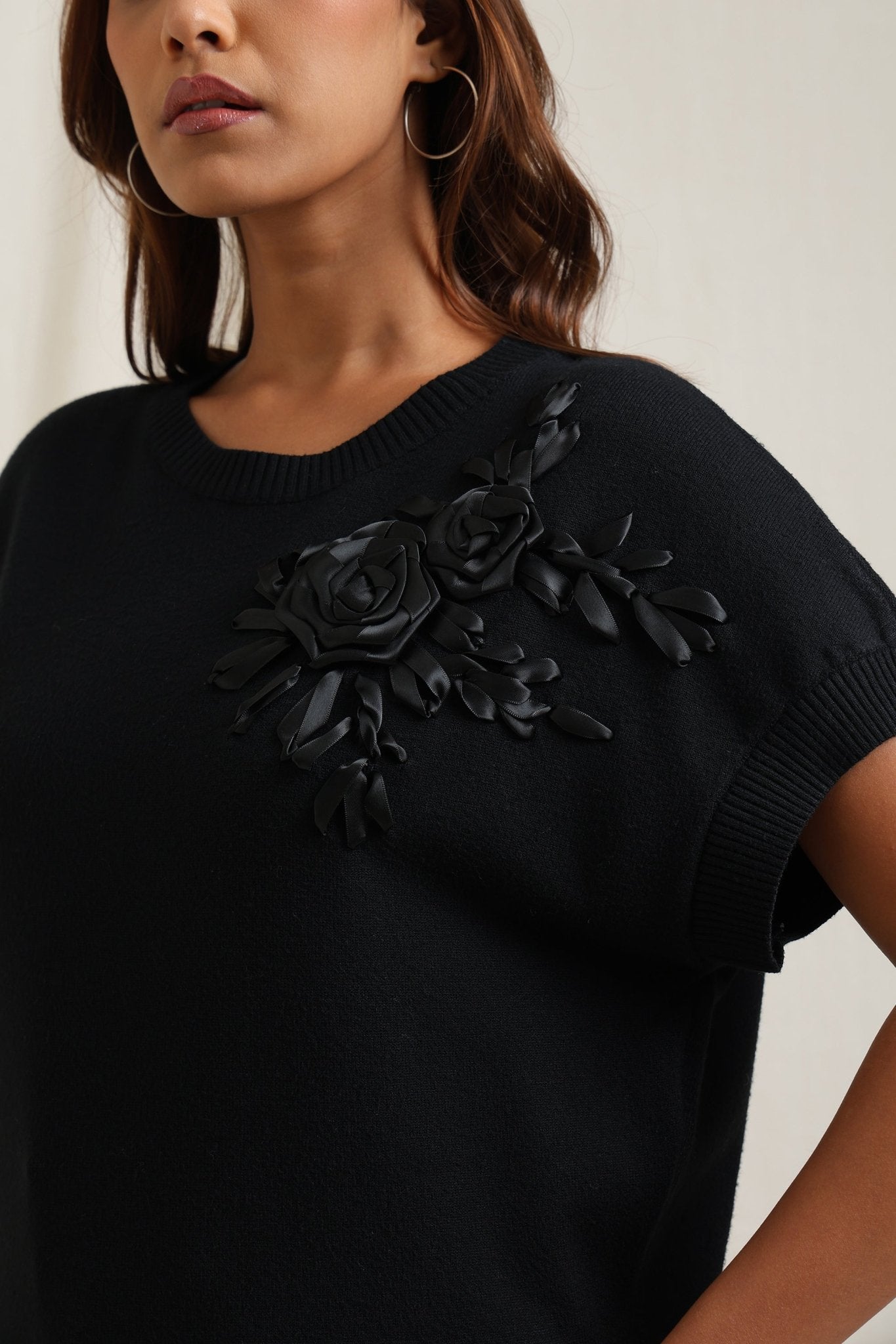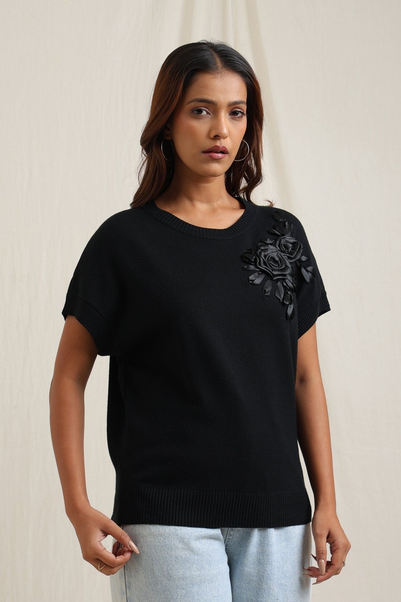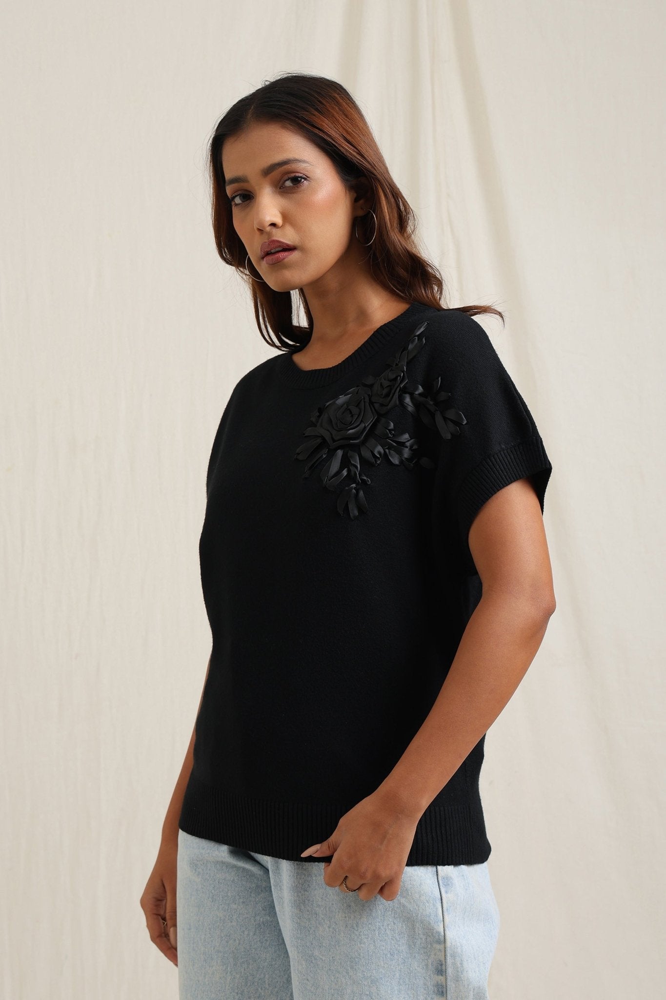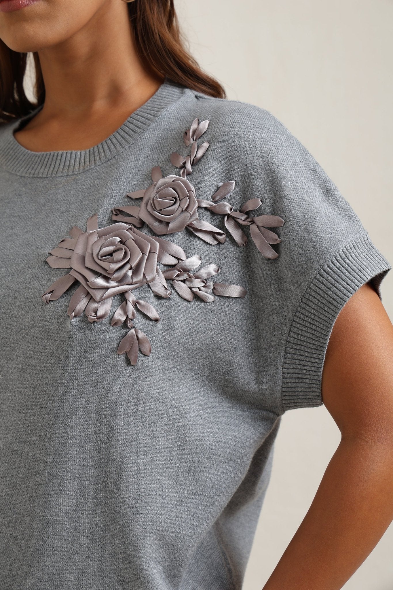 Sweater With Tonal Floral Embroidery