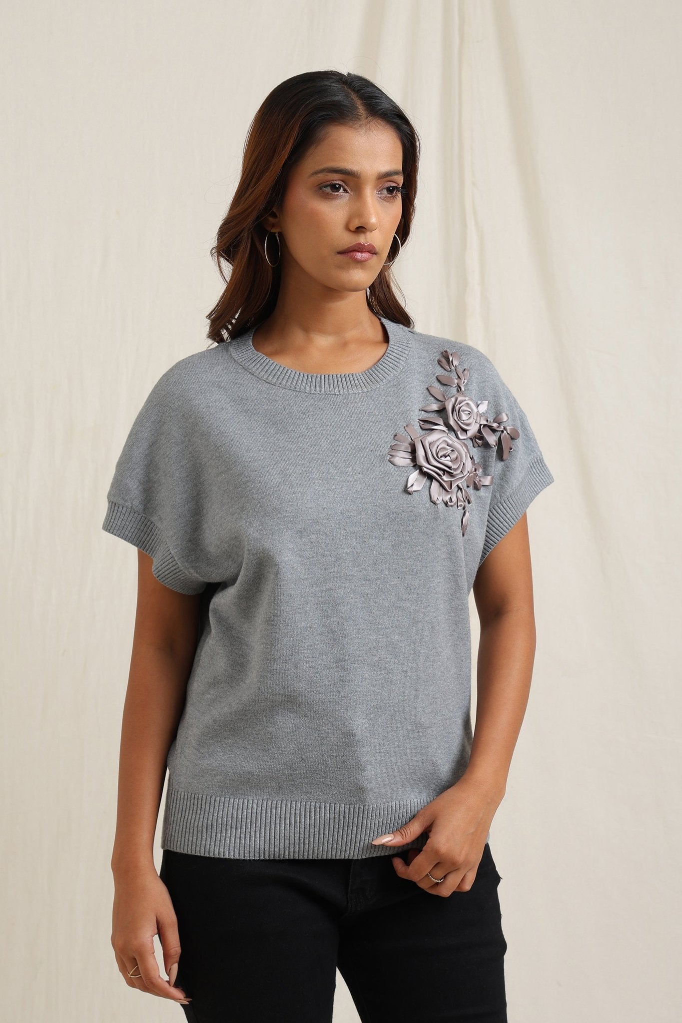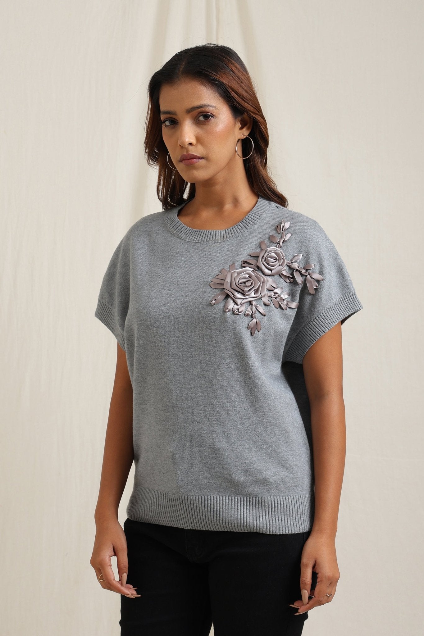 Regular price Rs. 5,200Elegant tonal embroidery blooms across the chest of this classic sweater cut.