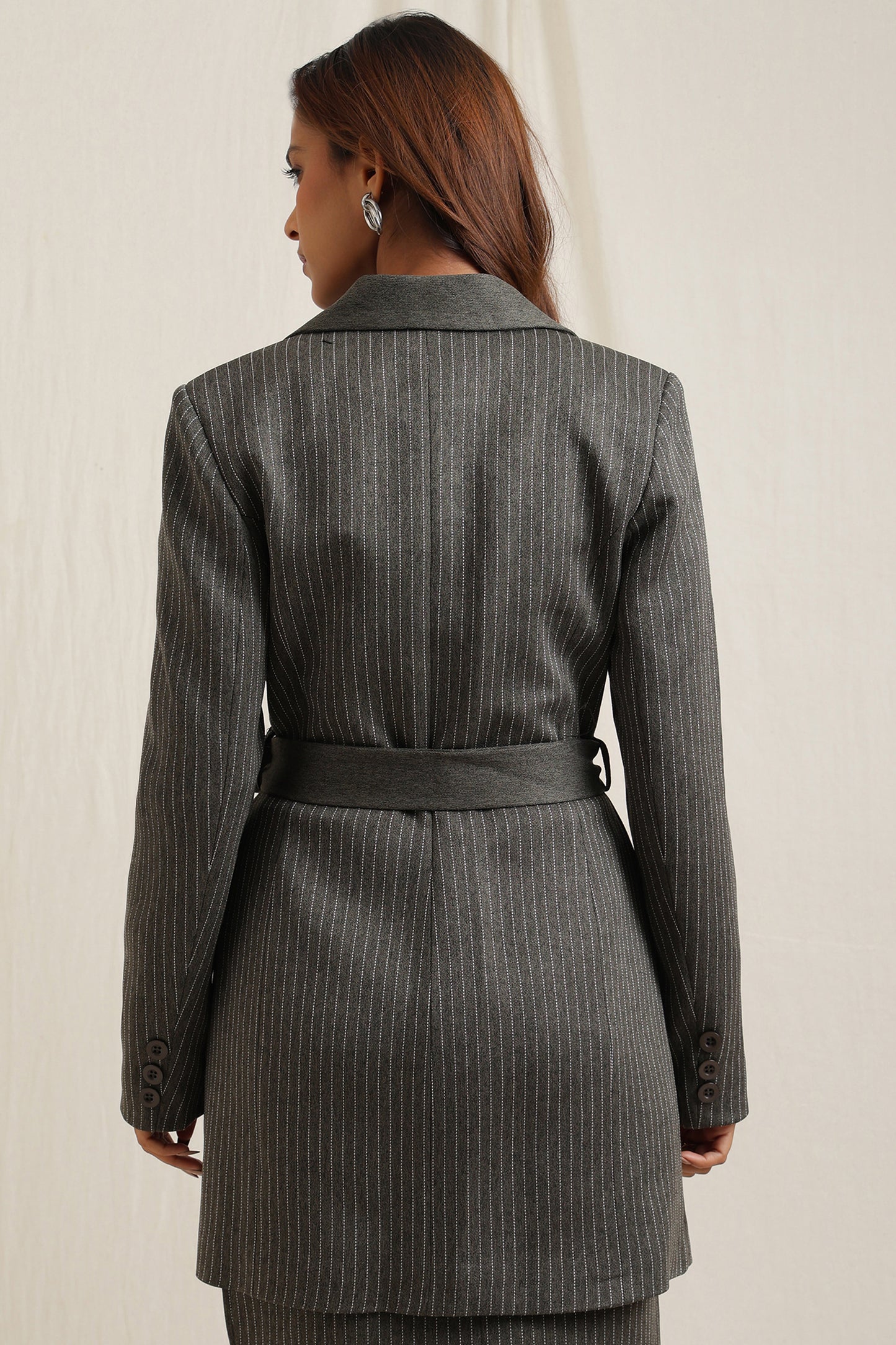 Regular price Rs. 6,300Tailored jacket with belt detailing for a refined silhouette.