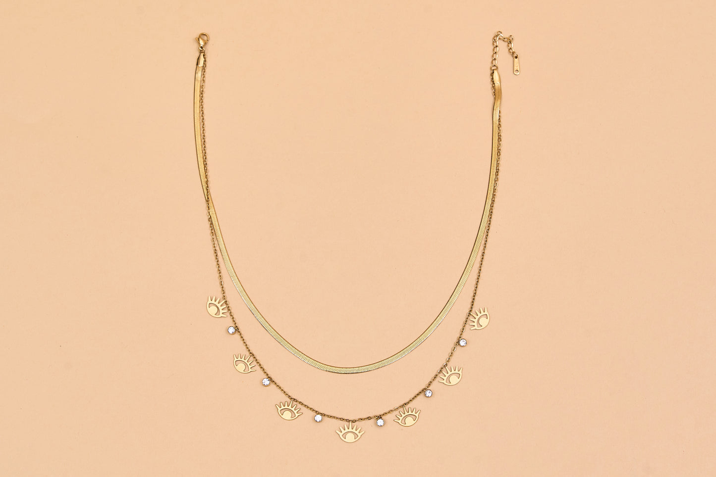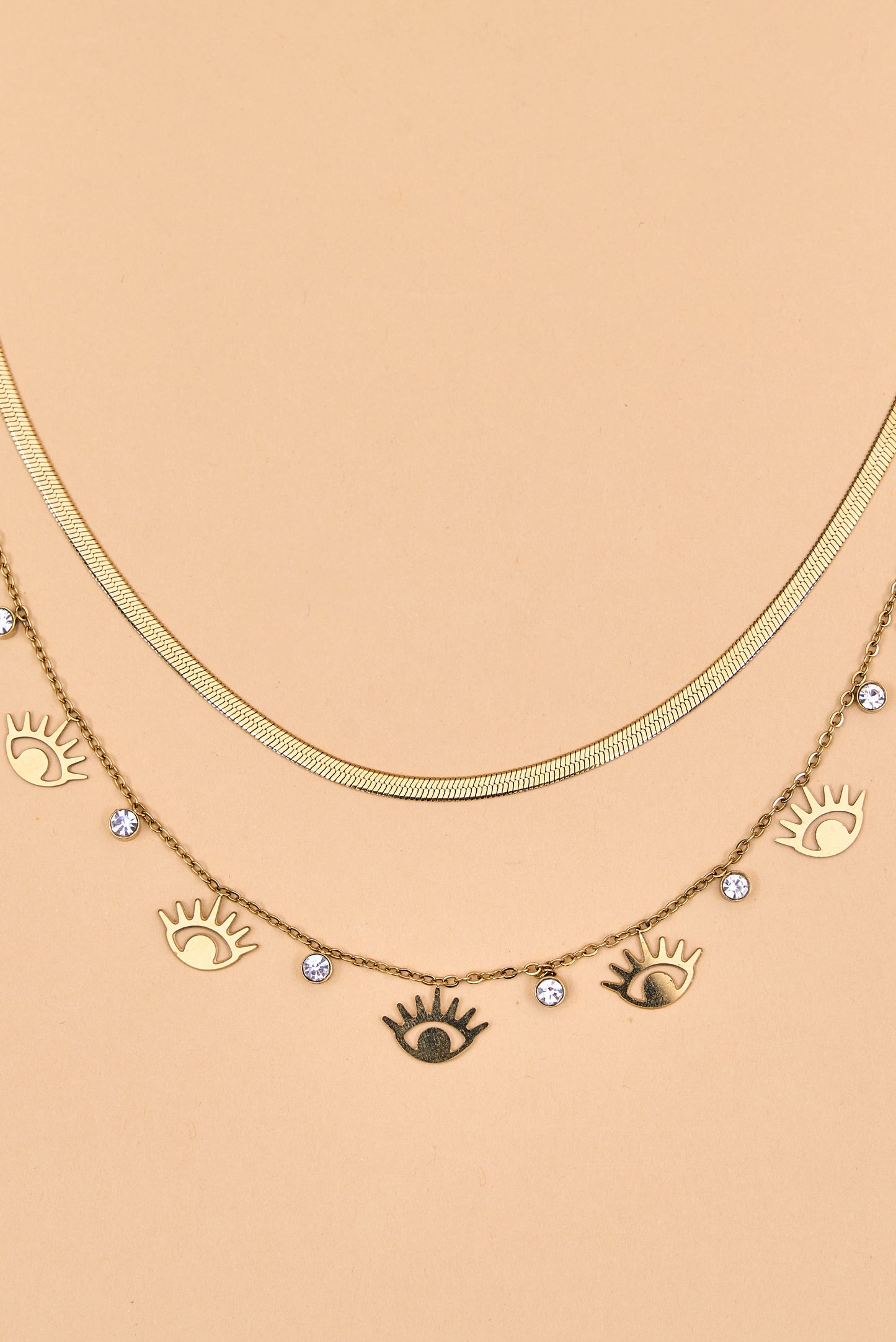 Add Stainless Steel Evil Eye Dual Layer Necklace to the cart