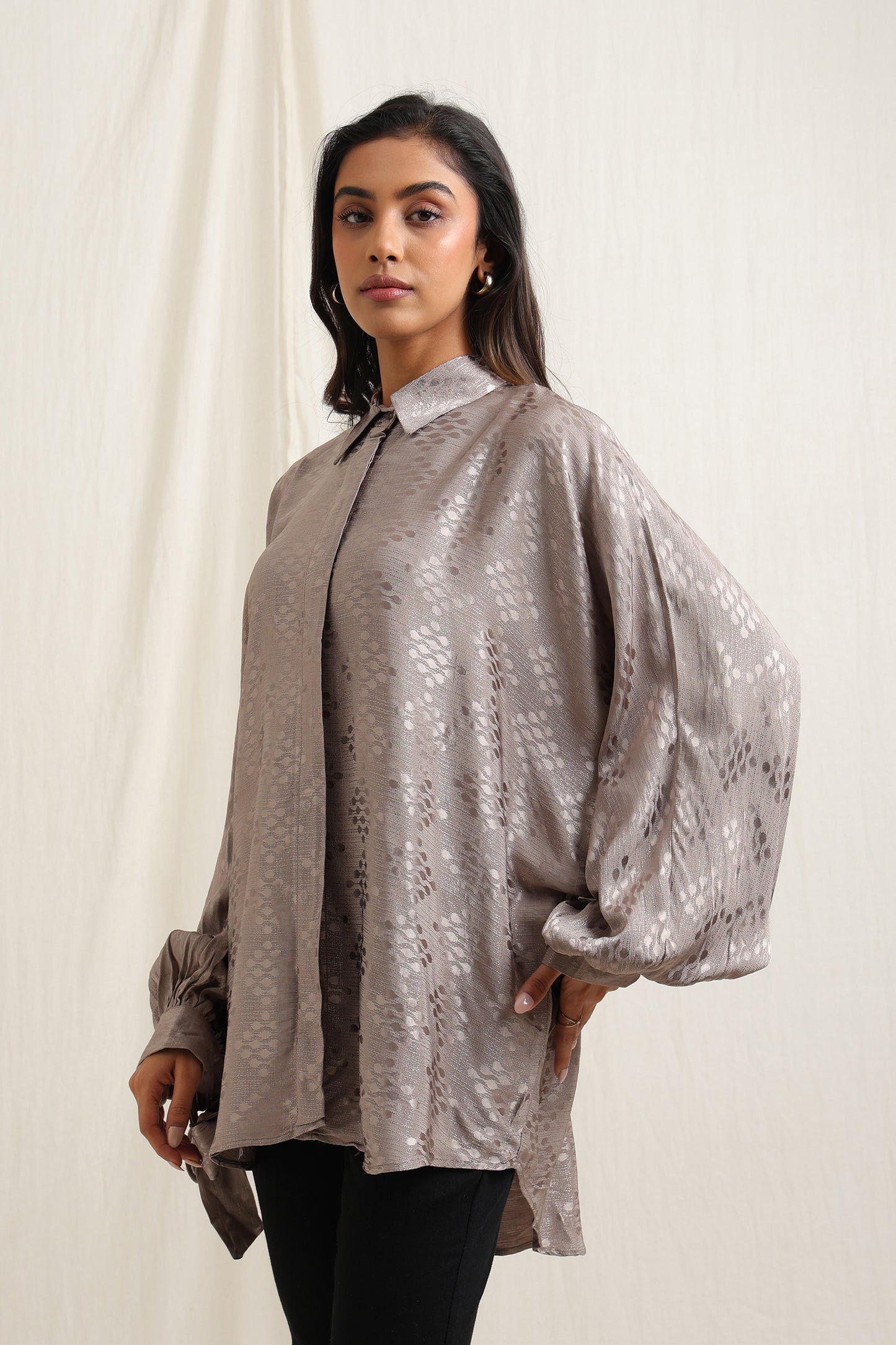 Geometric print shirt featuring bold patterns for a modern, eye-catching look.