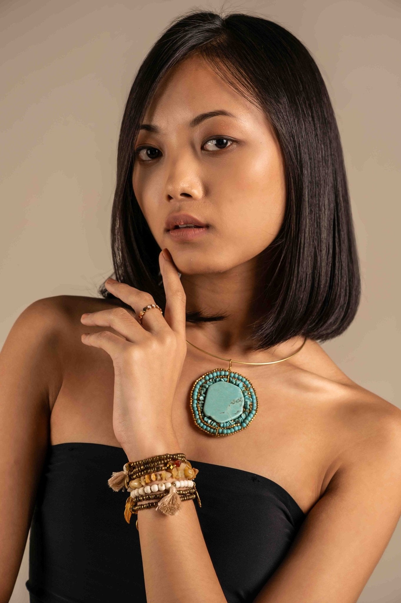 Regular price Rs. 1,200The gold choker showcases a bold central blue stone encircled by matching beads. Perfect for adding pop to minimalist outfits.
