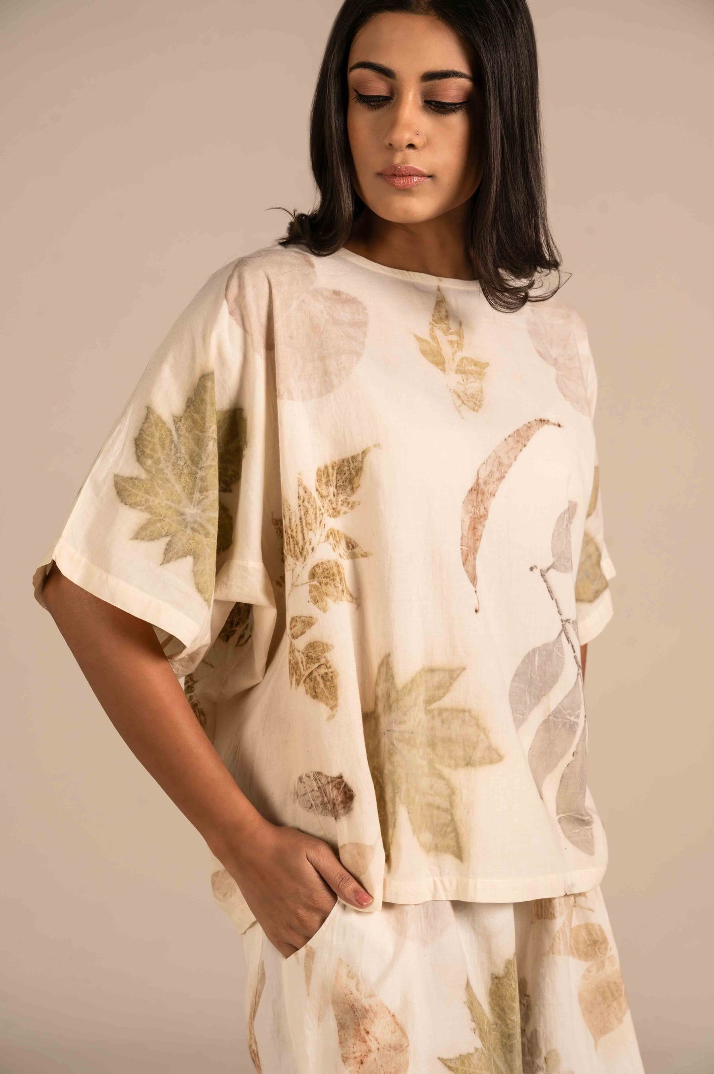 Half sleeves leaf hammered cotton top