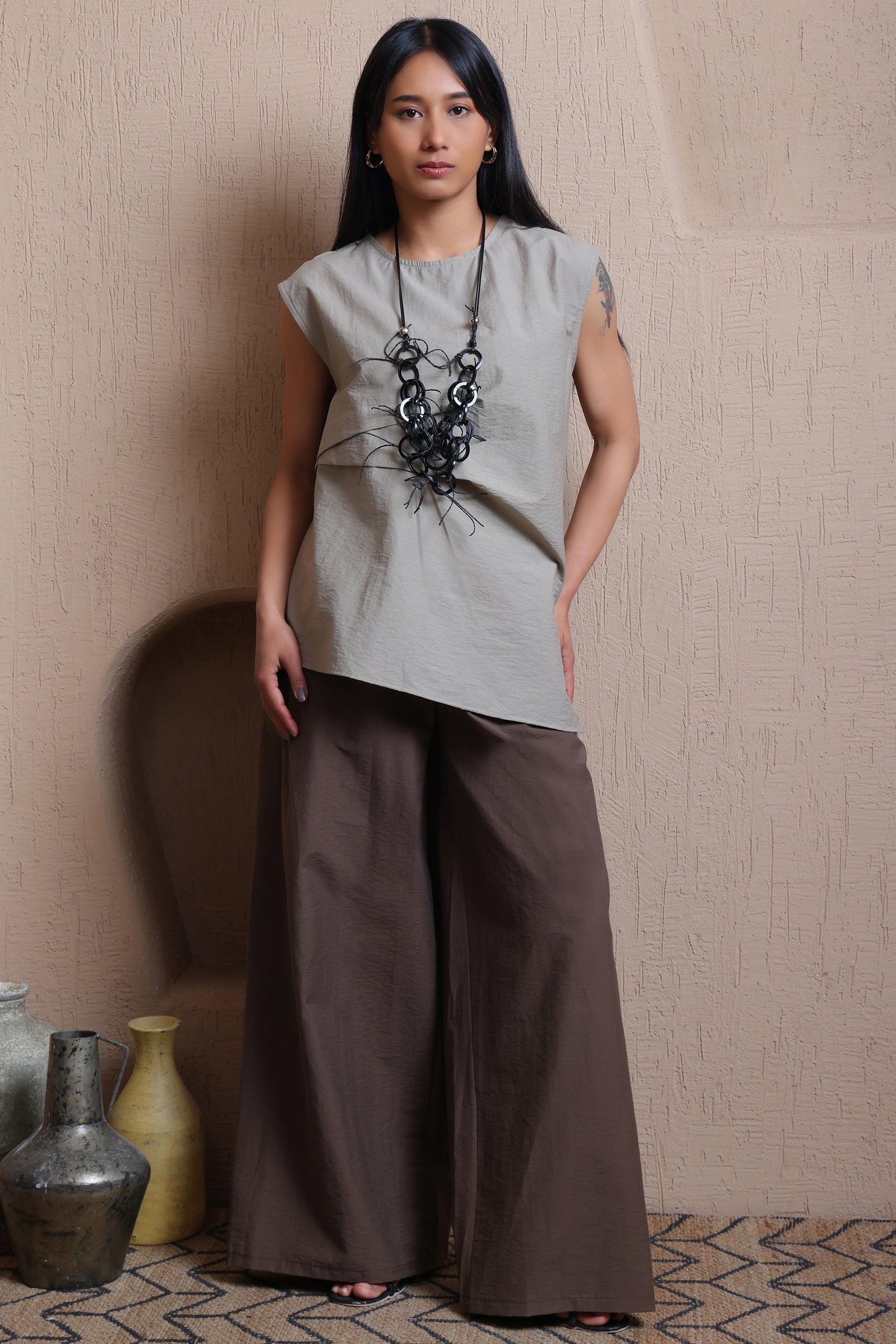 Solid Top With Statement Necklace