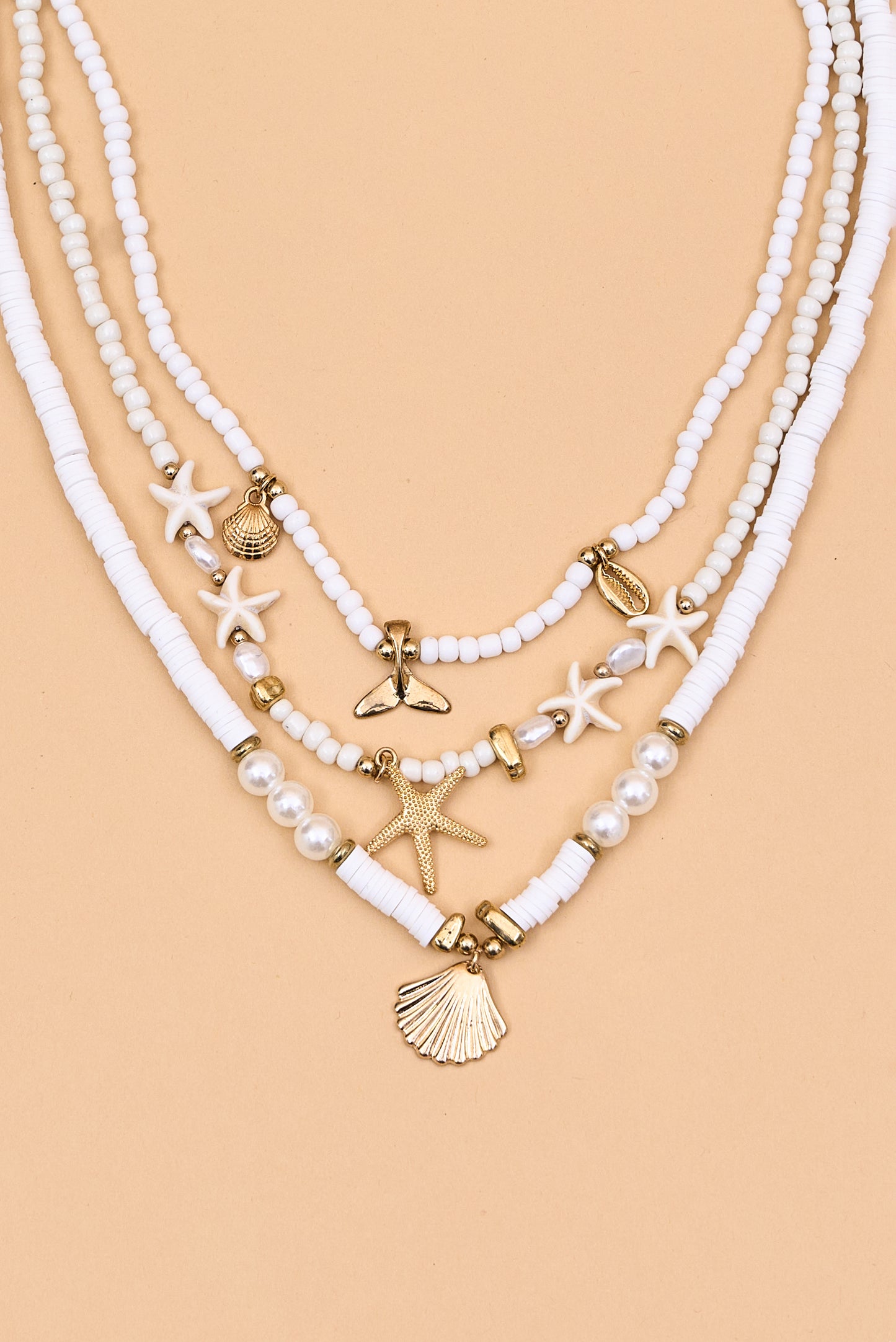 Regular price Rs. 900Channel effortless beach vibes with this layered necklace set, featuring white beads, pearls, and gold-tone ocean-inspired charms like starfish, shells, and whale tails for the perfect summer-ready accessory