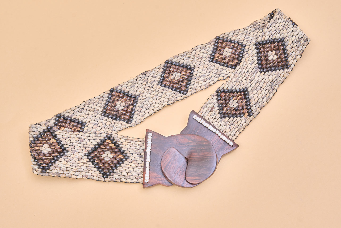 Woven belt with wooden buckle