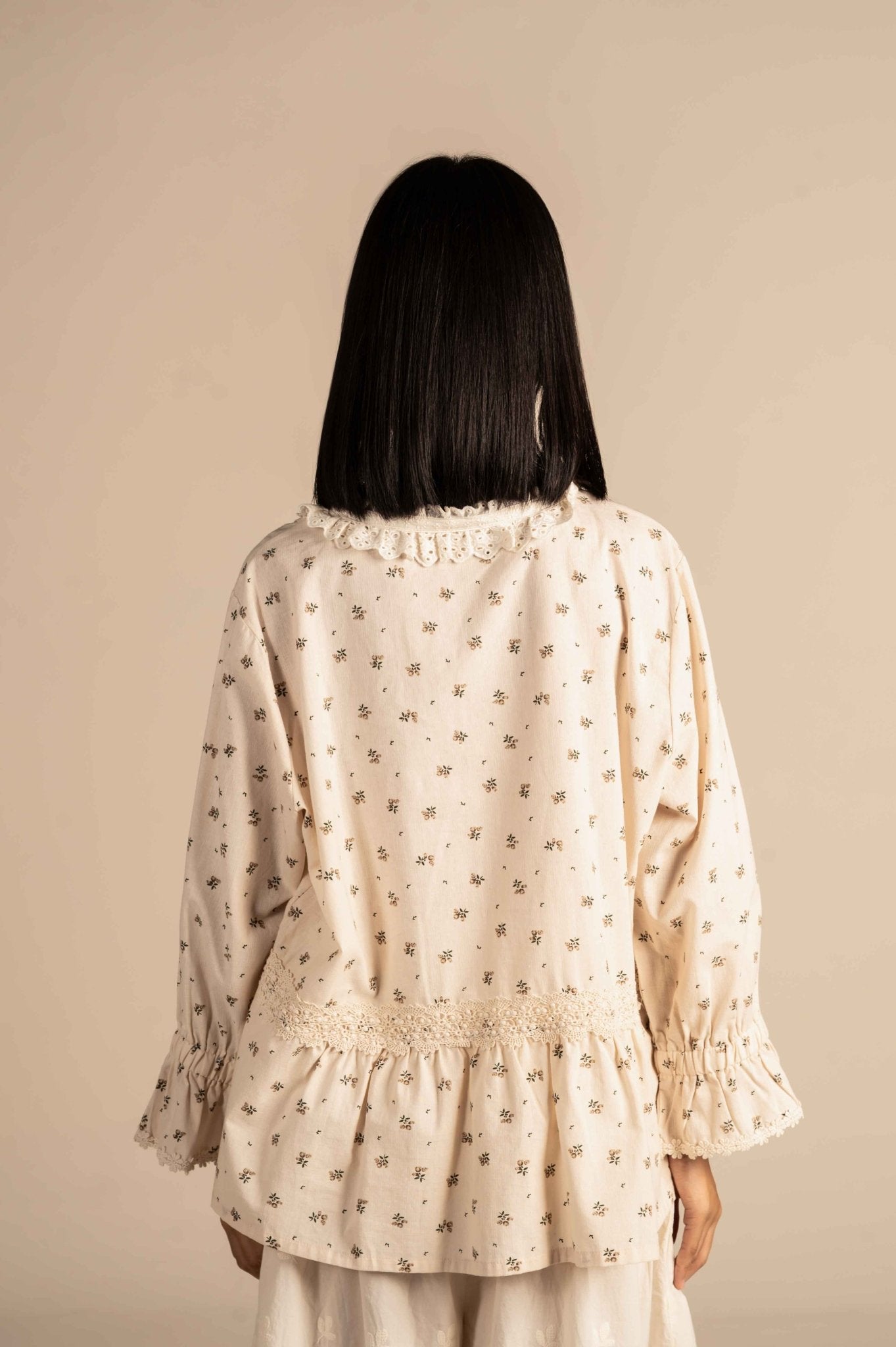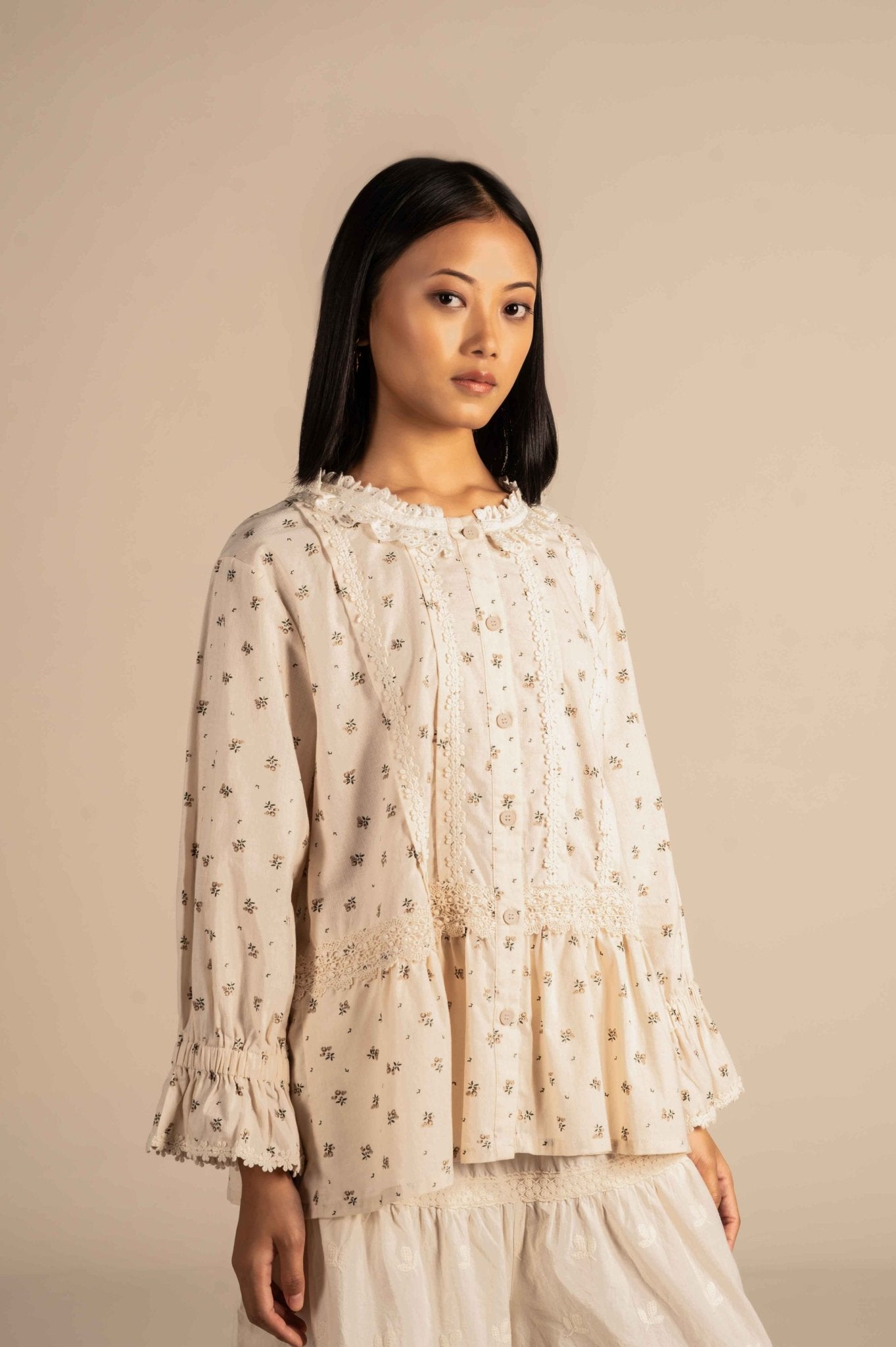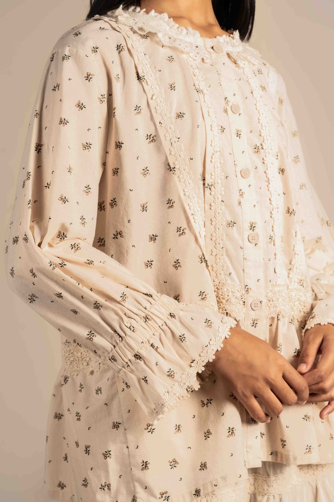 Micro Floral embroidered shirt with lace detailing