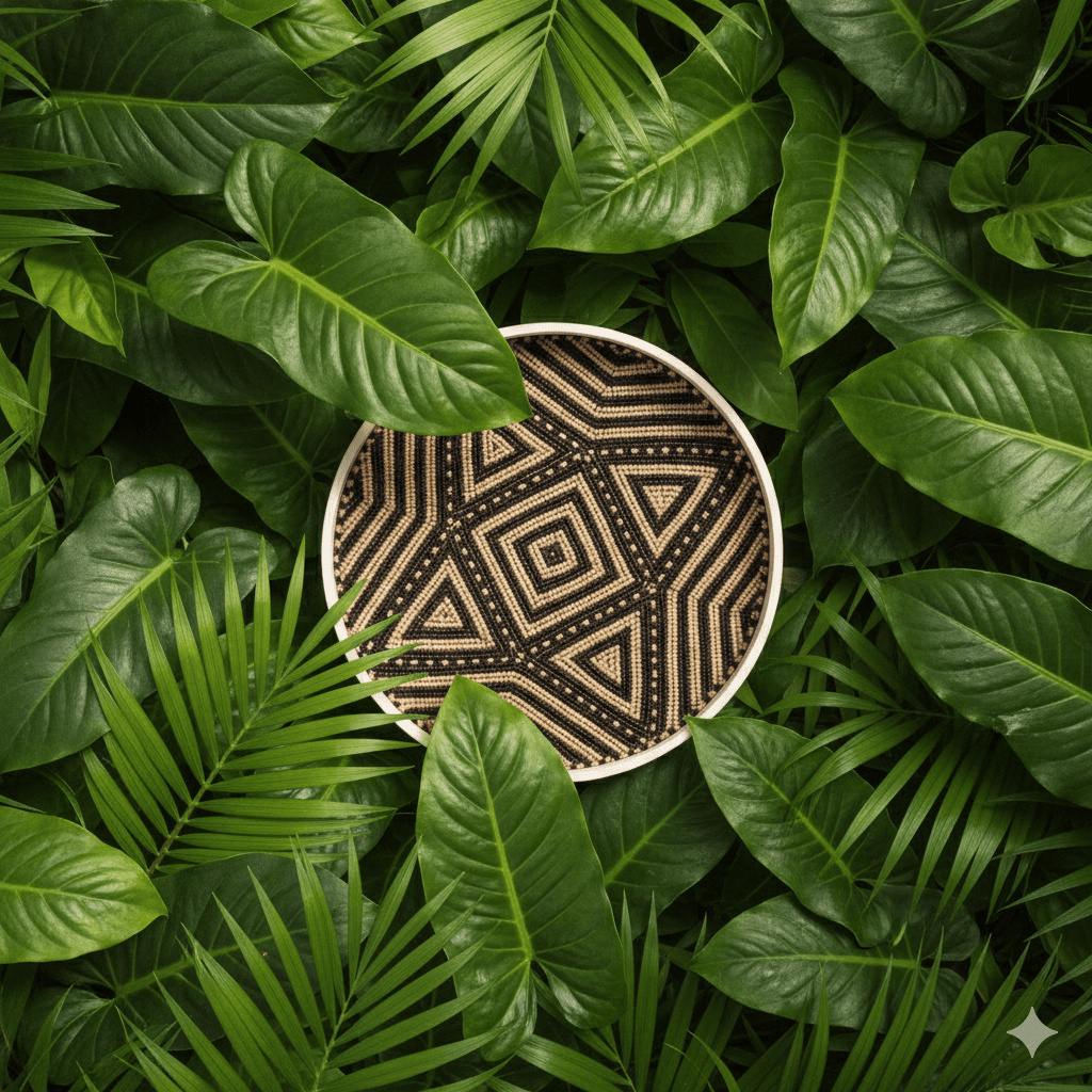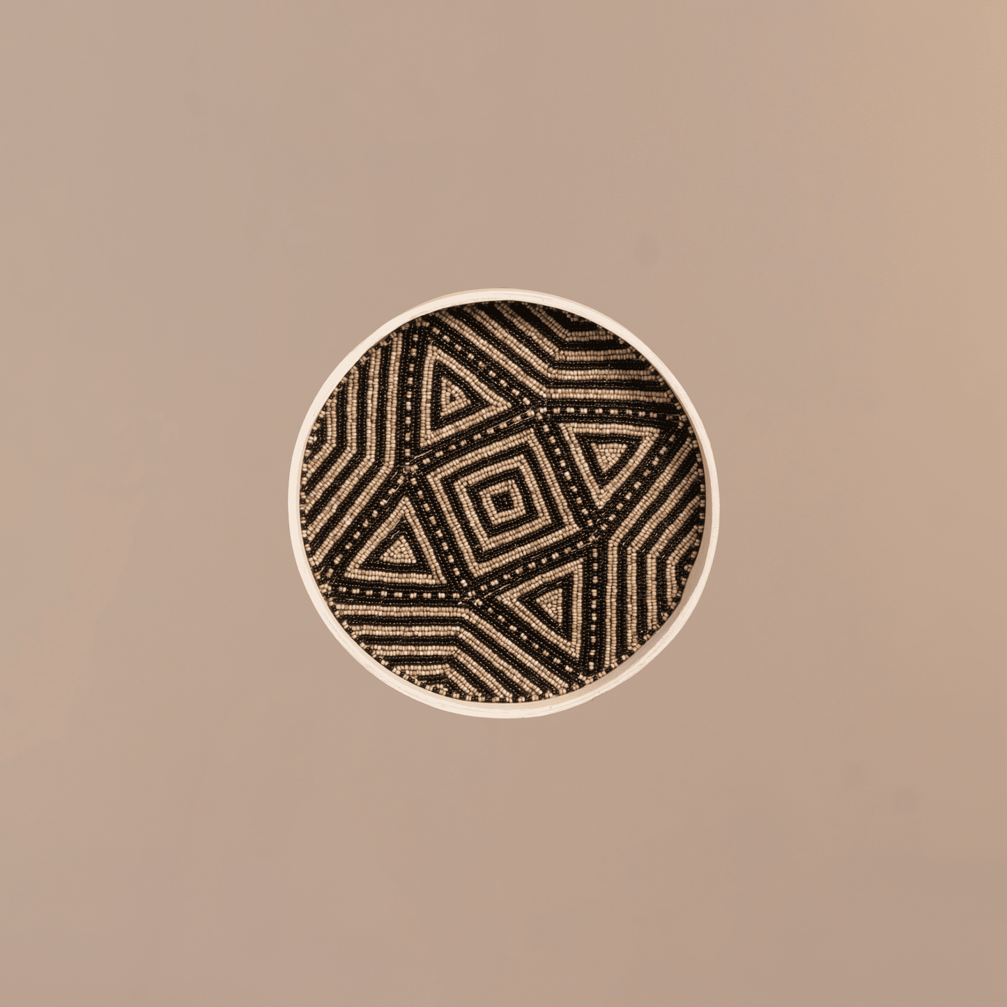 Regular price Rs. 1,200A decorative bamboo tray with black and beige beadwork in a geometric pattern. Stylish and functional for serving or tabletop display