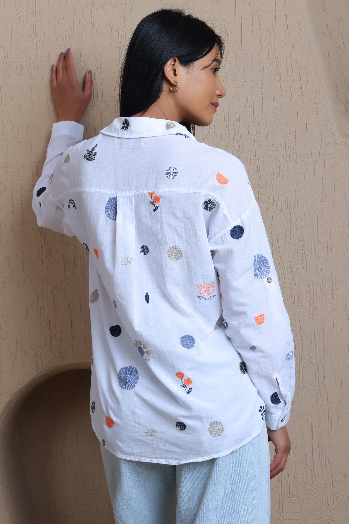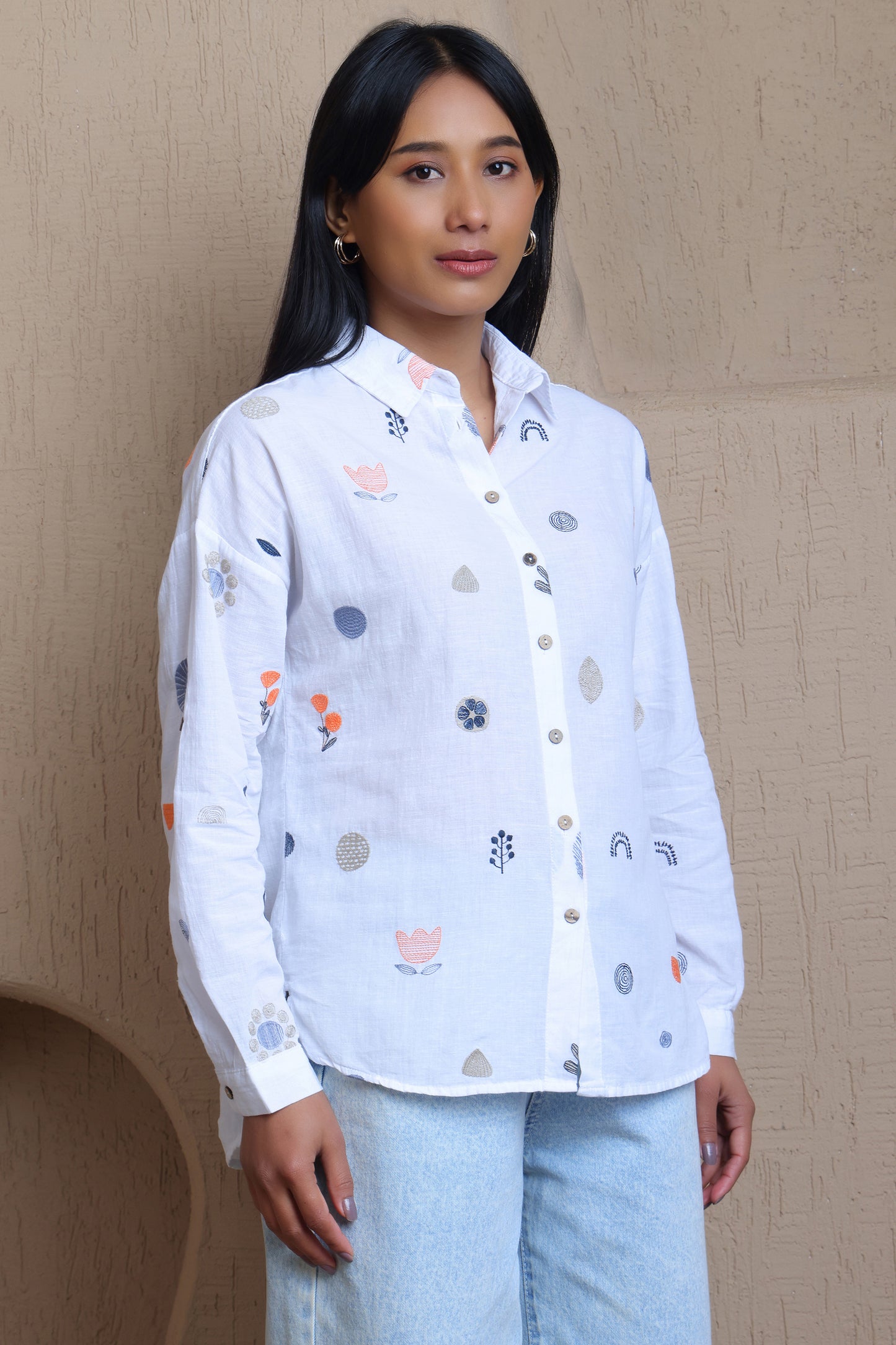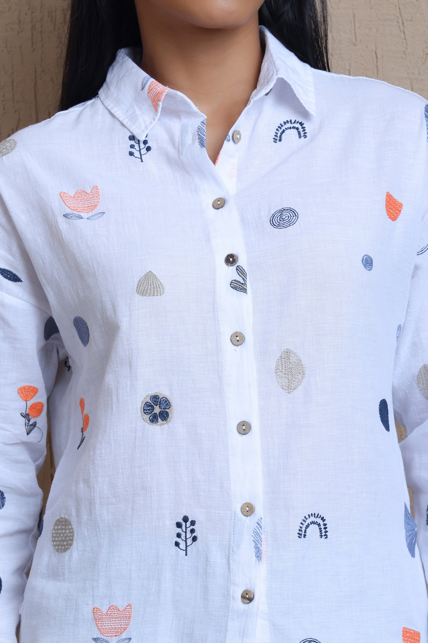 Full Sleeves Floral Embroidery Shirt