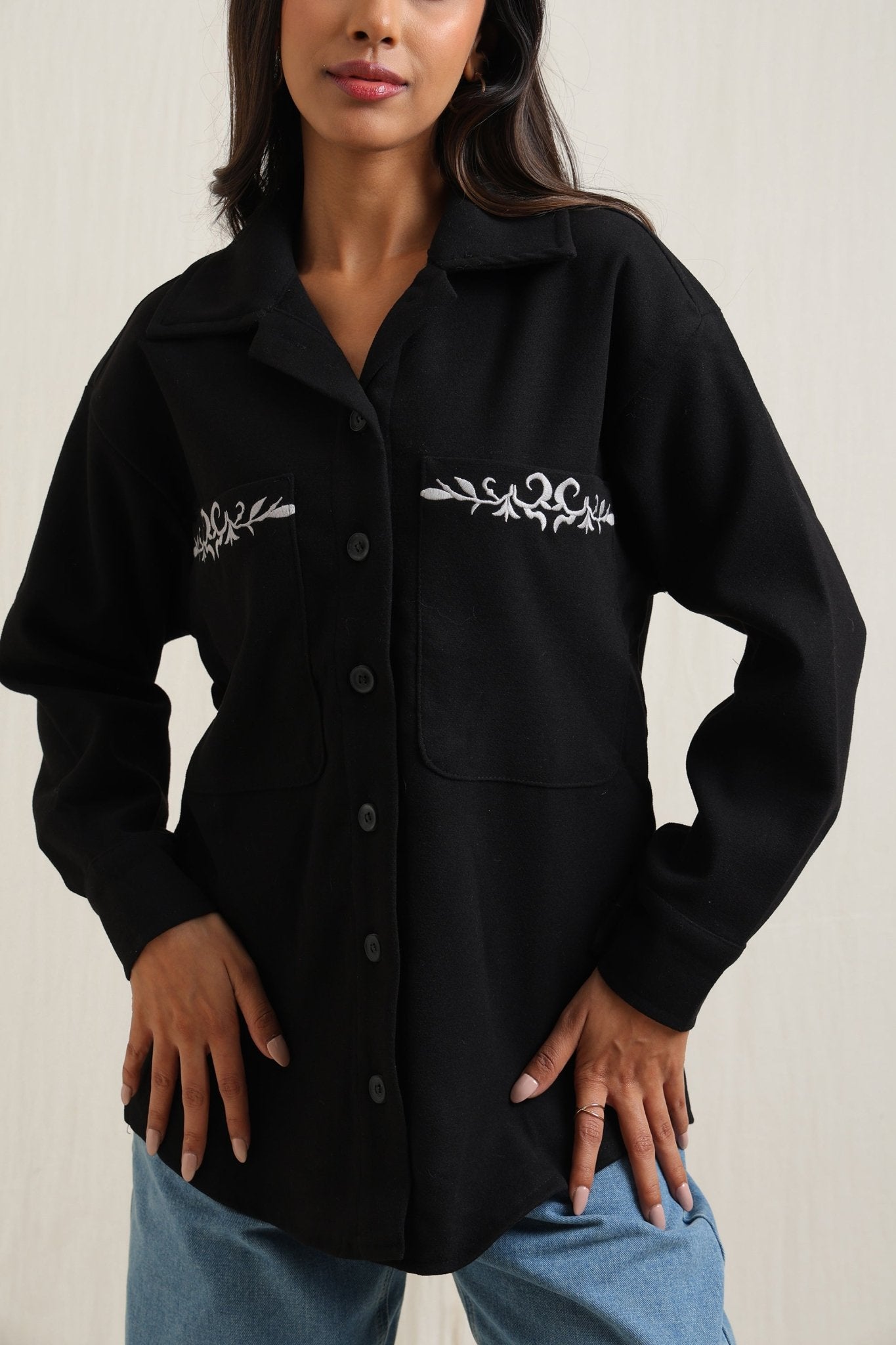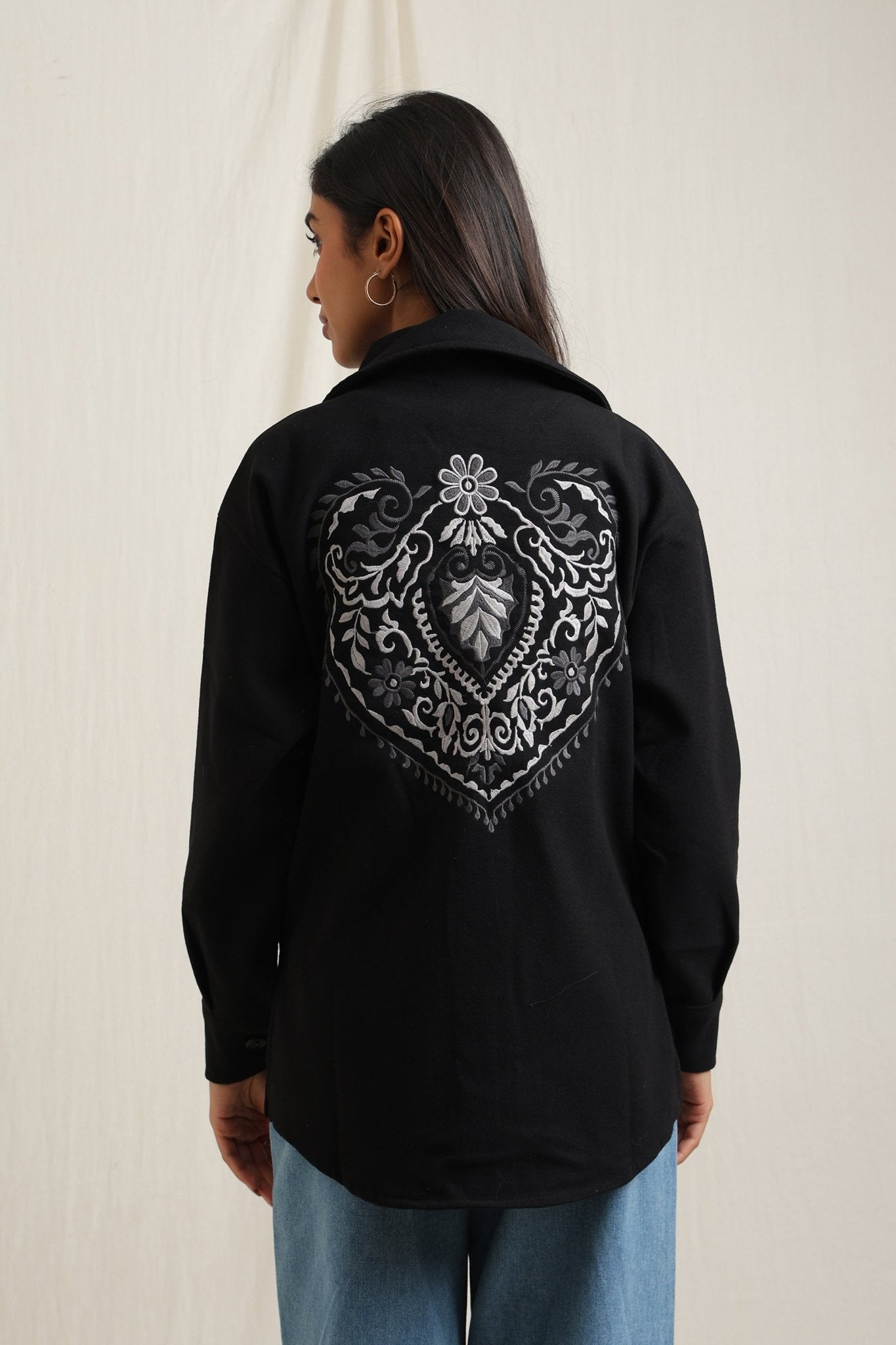 Regular price Rs. 3,850Heart-embroidered shacket featuring charming stitched heart motifs for a playful, stylish vibe.